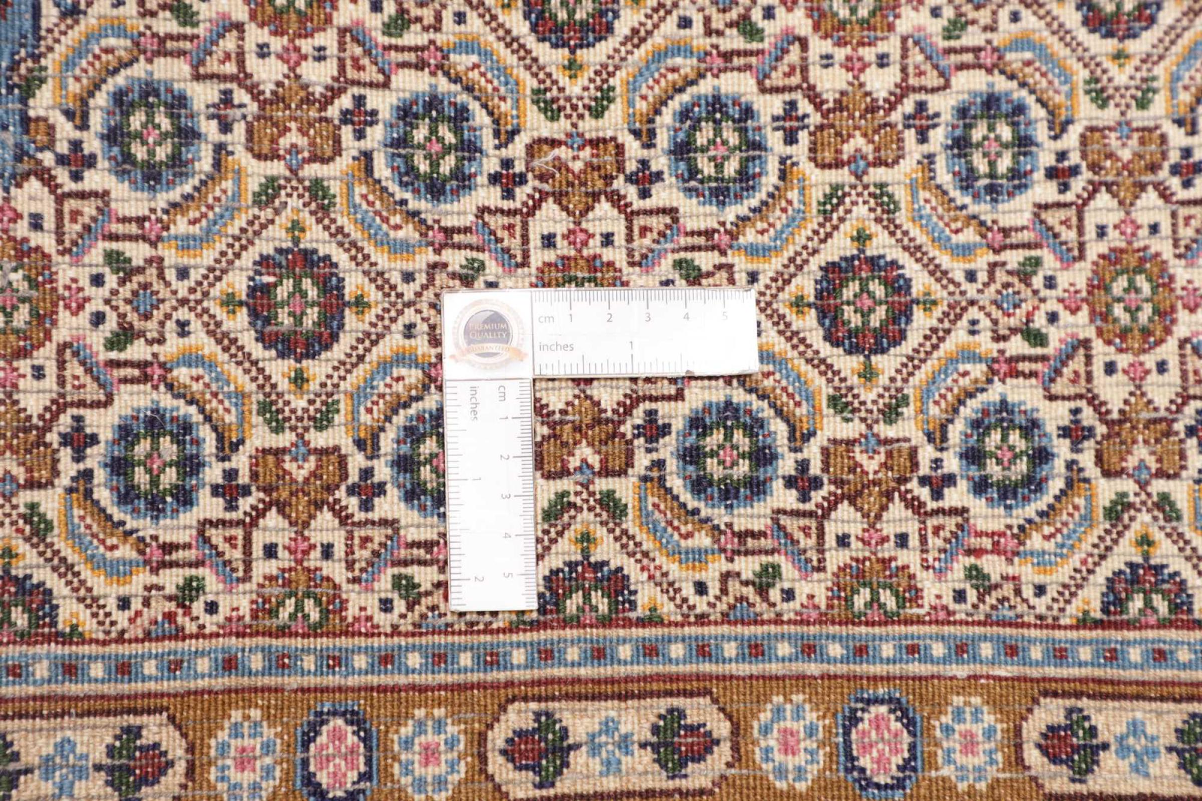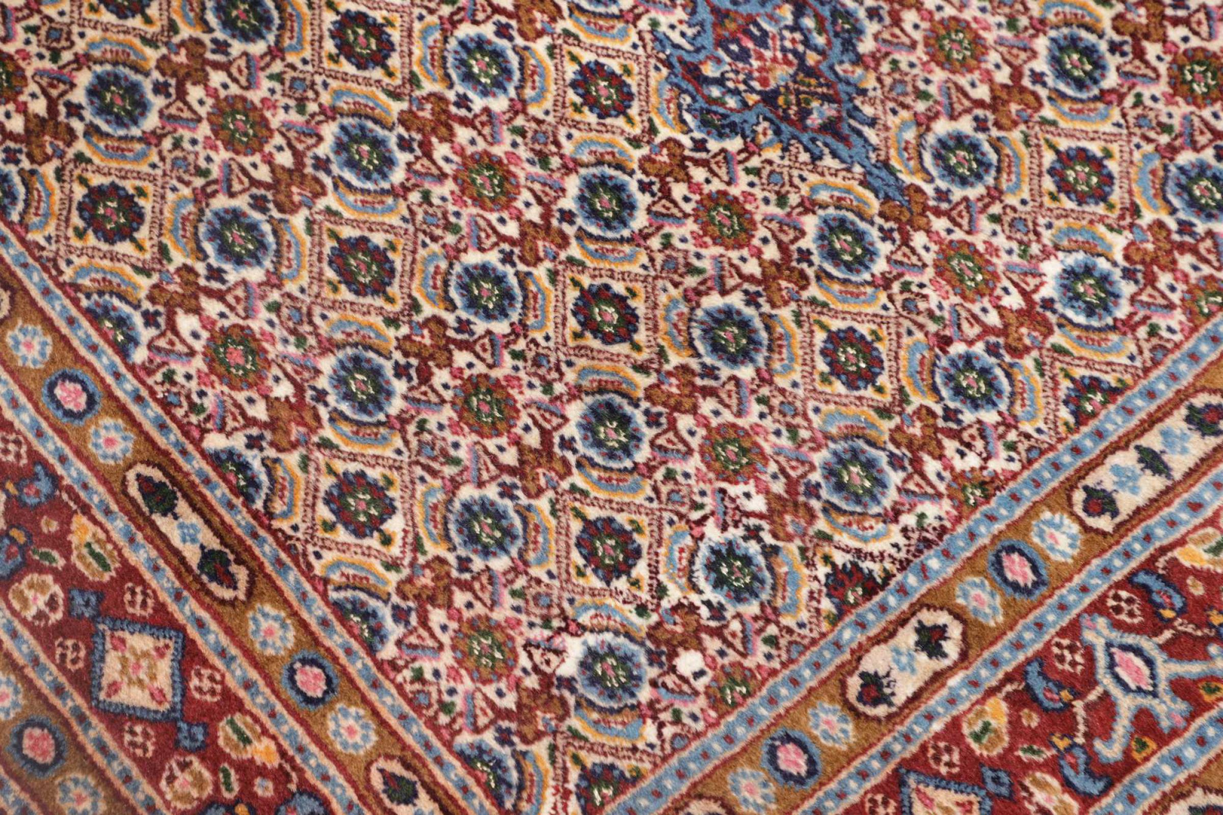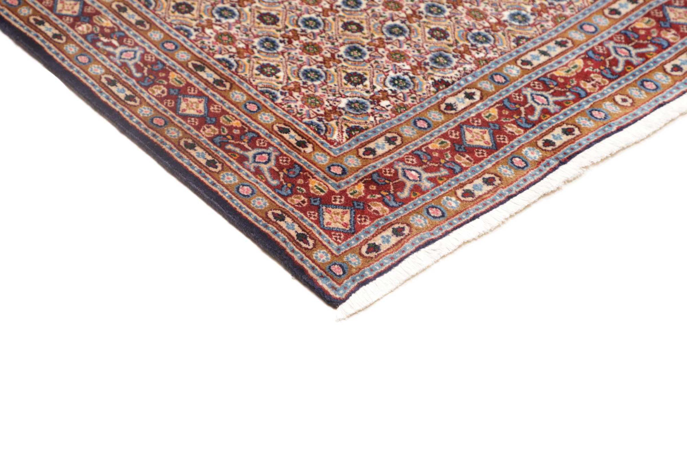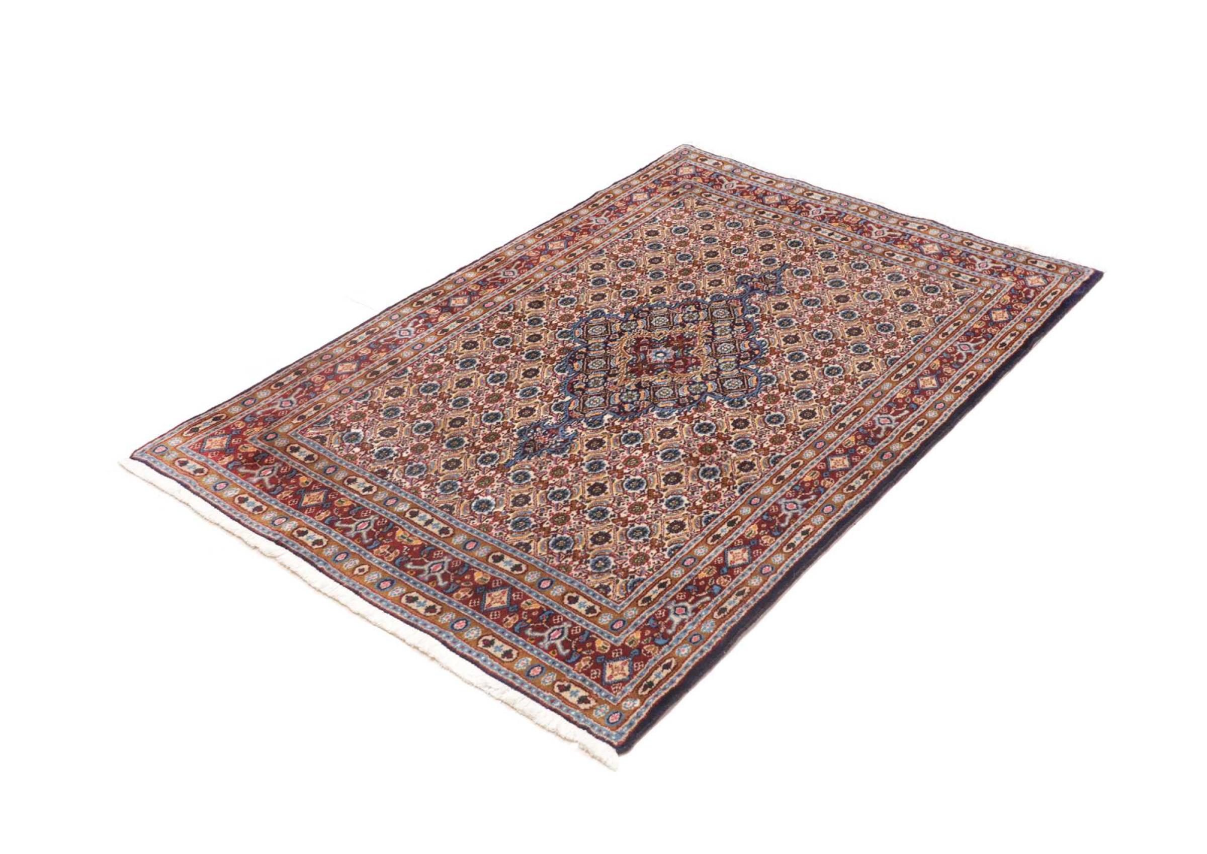 Dette tæppe fra Moud, en by 300 km syd for Mashhad, er imponerende ved første øjekast. Det typiske Herati-mønster eller havedesign værdsættes af kendere og elskere af ægte persiske tæpper. Hvis du leder efter et håndlavet tæppe af fin kvalitet med et meget unikt og karakteristisk design, er denne type tæppe det helt rigtige for dig.