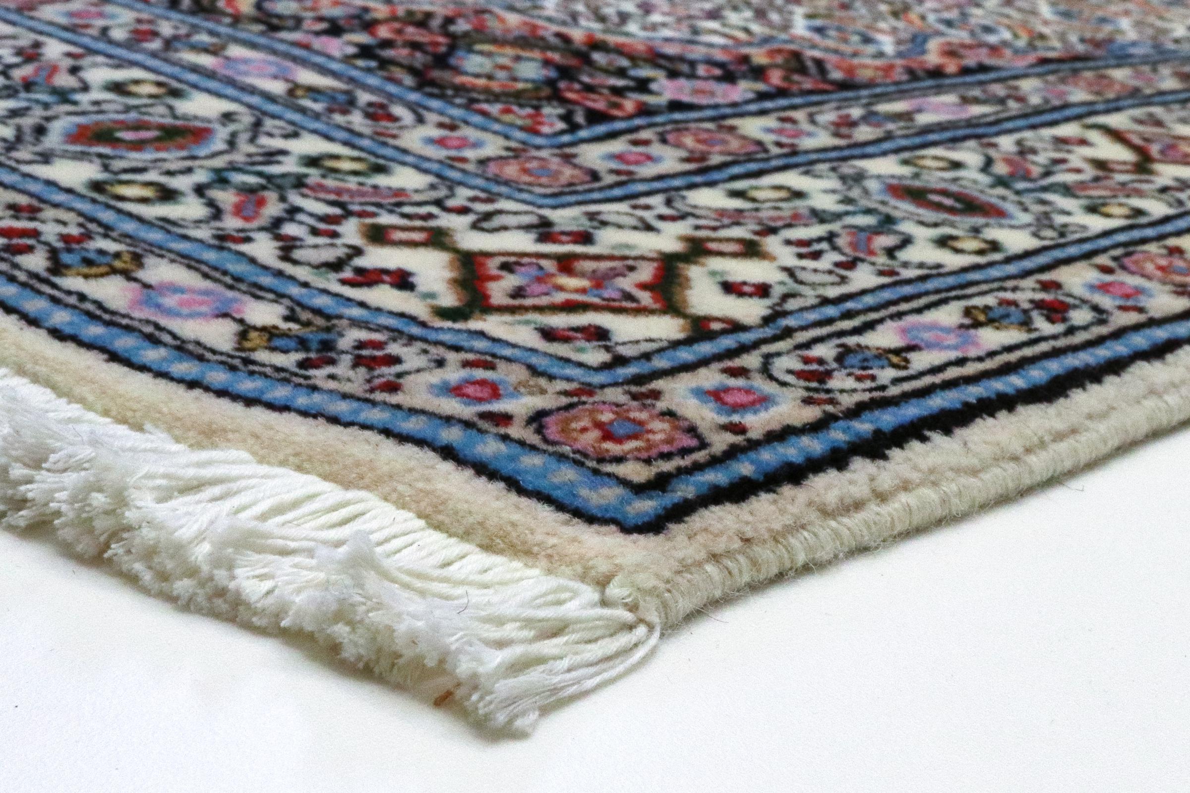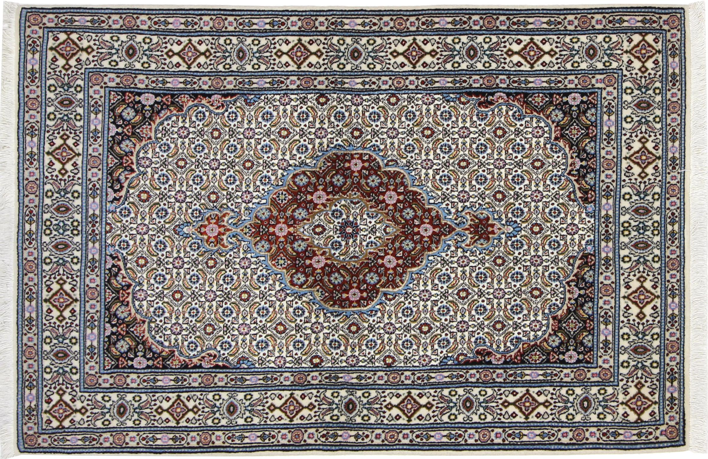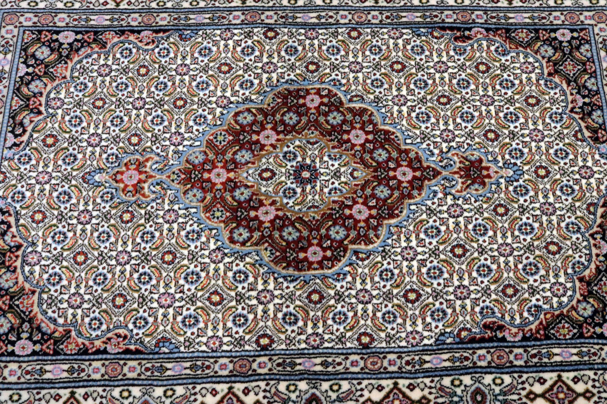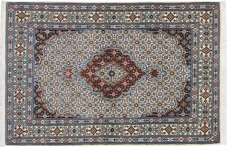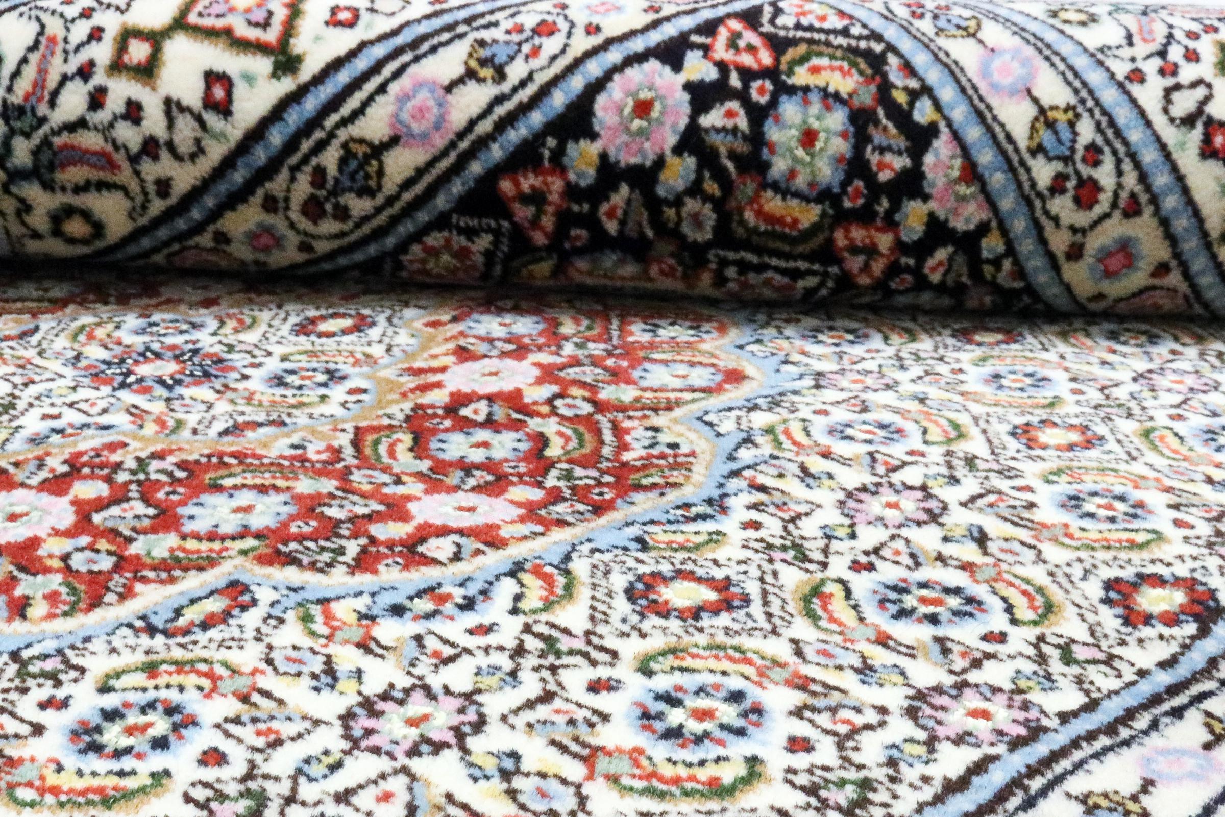 Dette tæppe fra Moud, en by 300 km syd for Mashhad, er imponerende ved første øjekast. Det typiske Herati-mønster eller havedesign værdsættes af kendere og elskere af ægte persiske tæpper. Hvis du leder efter et håndlavet tæppe af fin kvalitet med et meget unikt og karakteristisk design, er denne type tæppe det helt rigtige for dig.