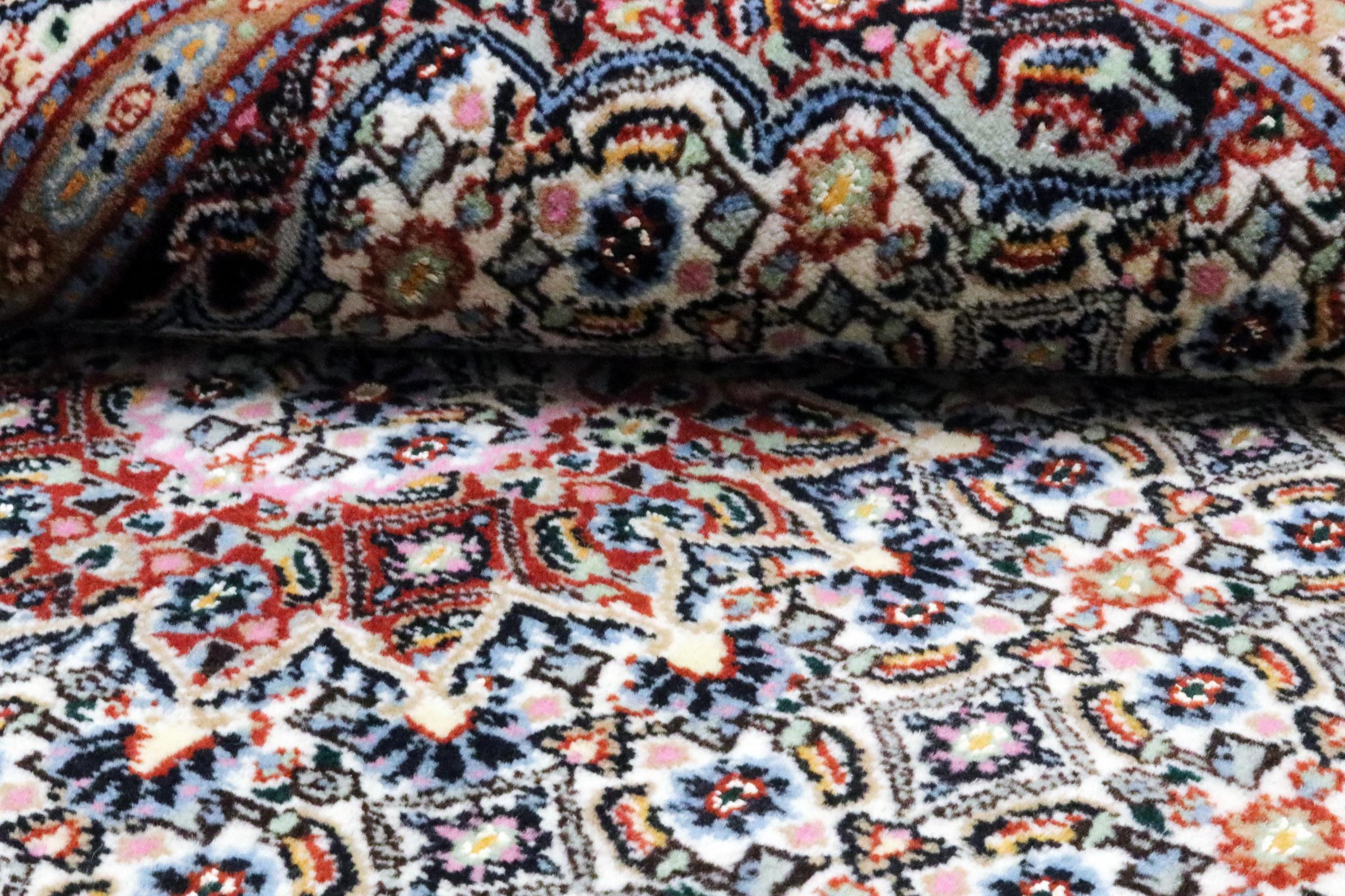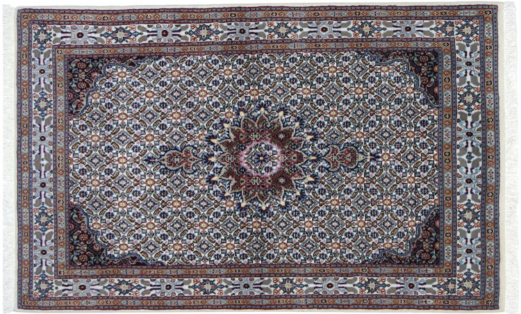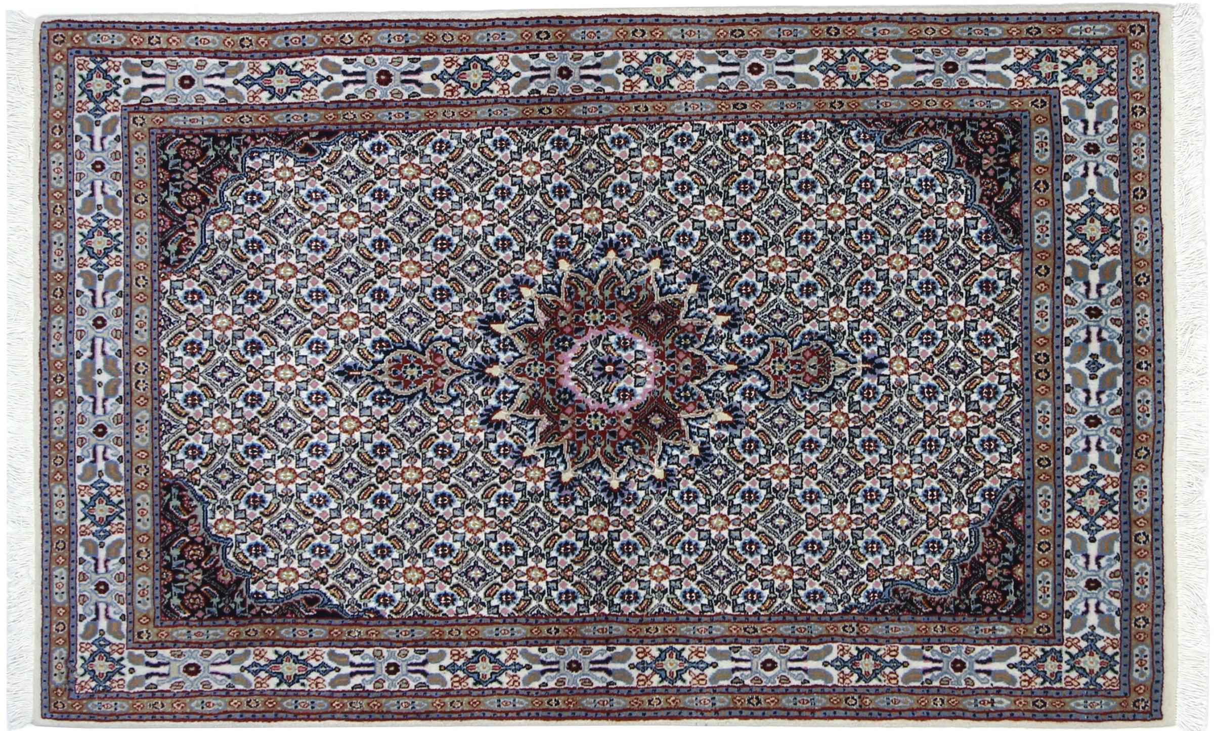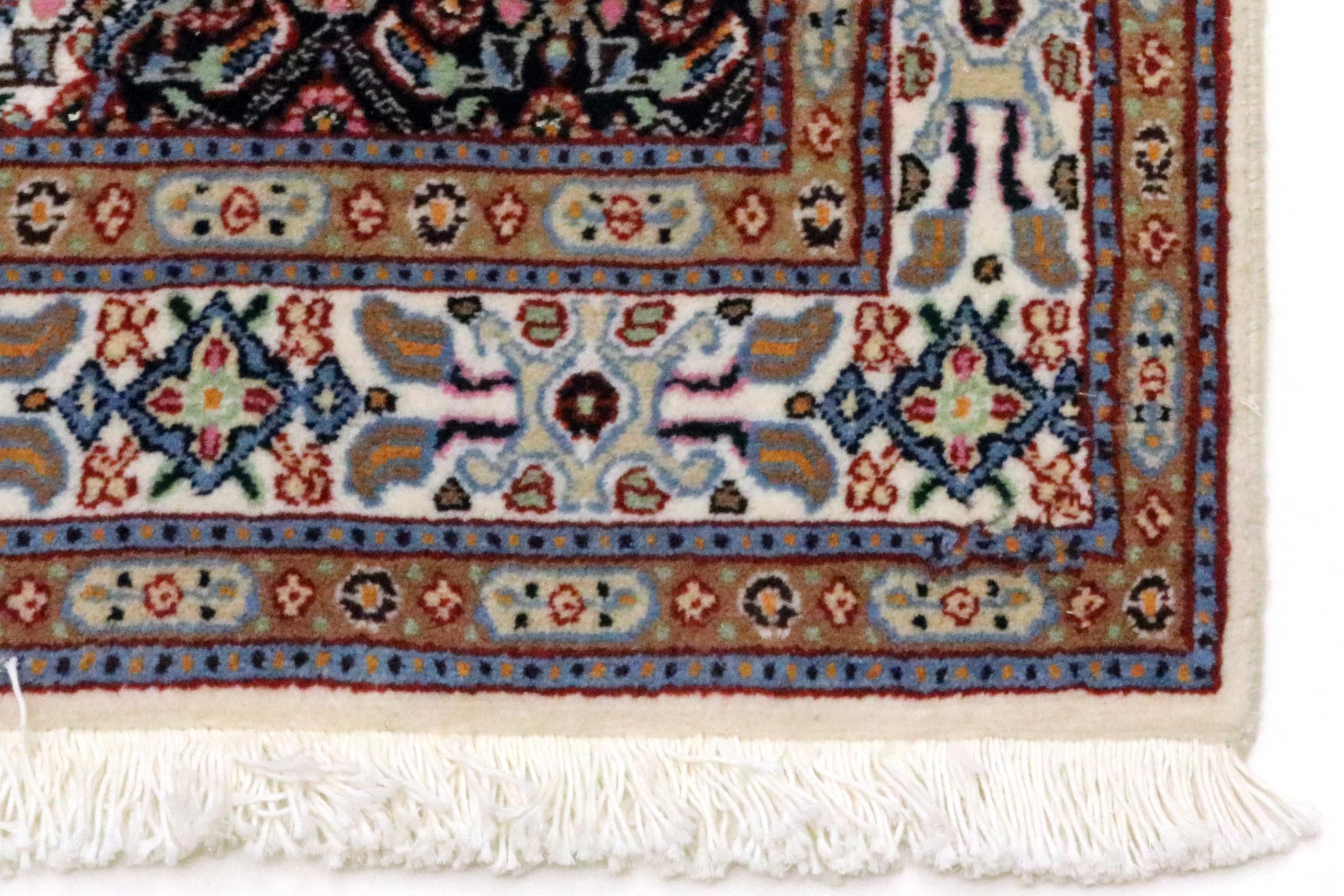 Dette tæppe fra Moud, en by 300 km syd for Mashhad, er imponerende ved første øjekast. Det typiske Herati-mønster eller havedesign værdsættes af kendere og elskere af ægte persiske tæpper. Hvis du leder efter et håndlavet tæppe af fin kvalitet med et meget unikt og karakteristisk design, er denne type tæppe det helt rigtige for dig.