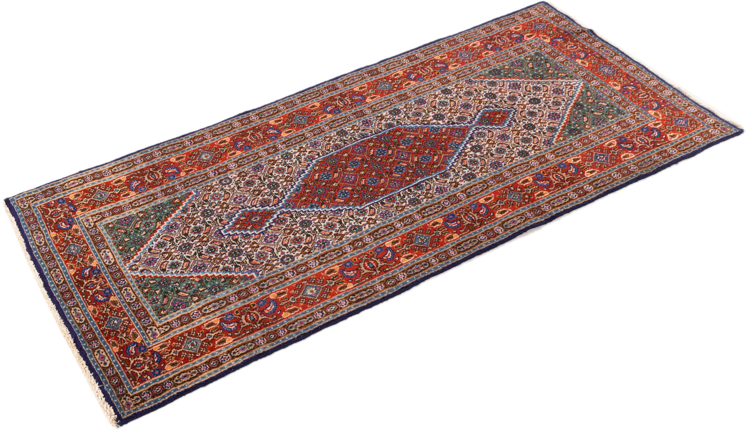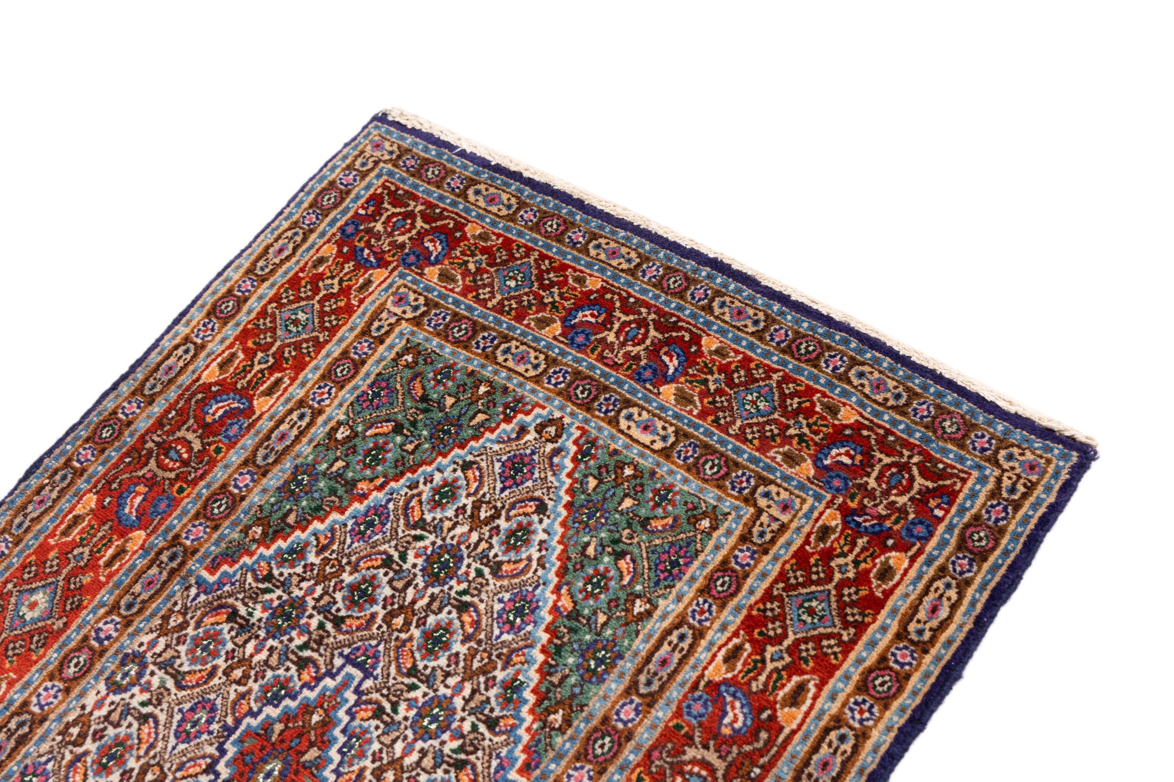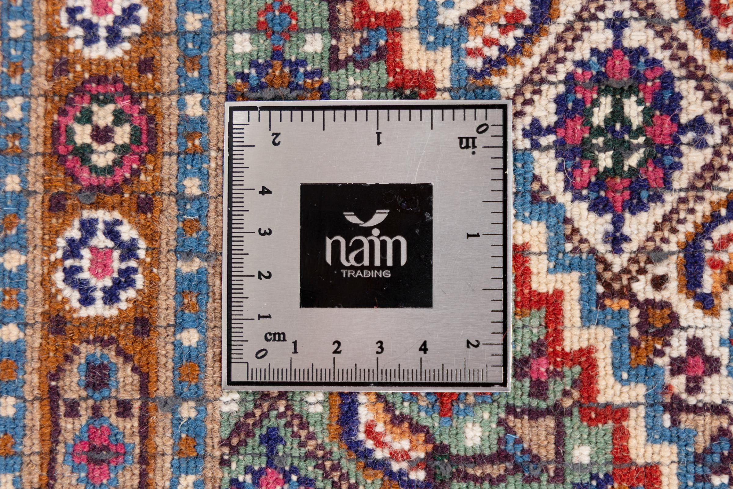 Dette tæppe fra Moud, en by 300 km syd for Mashhad, er imponerende ved første øjekast. Det typiske Herati-mønster eller havedesign værdsættes af kendere og elskere af ægte persiske tæpper. Hvis du leder efter et håndlavet tæppe af fin kvalitet med et meget unikt og karakteristisk design, er denne type tæppe det helt rigtige for dig.
