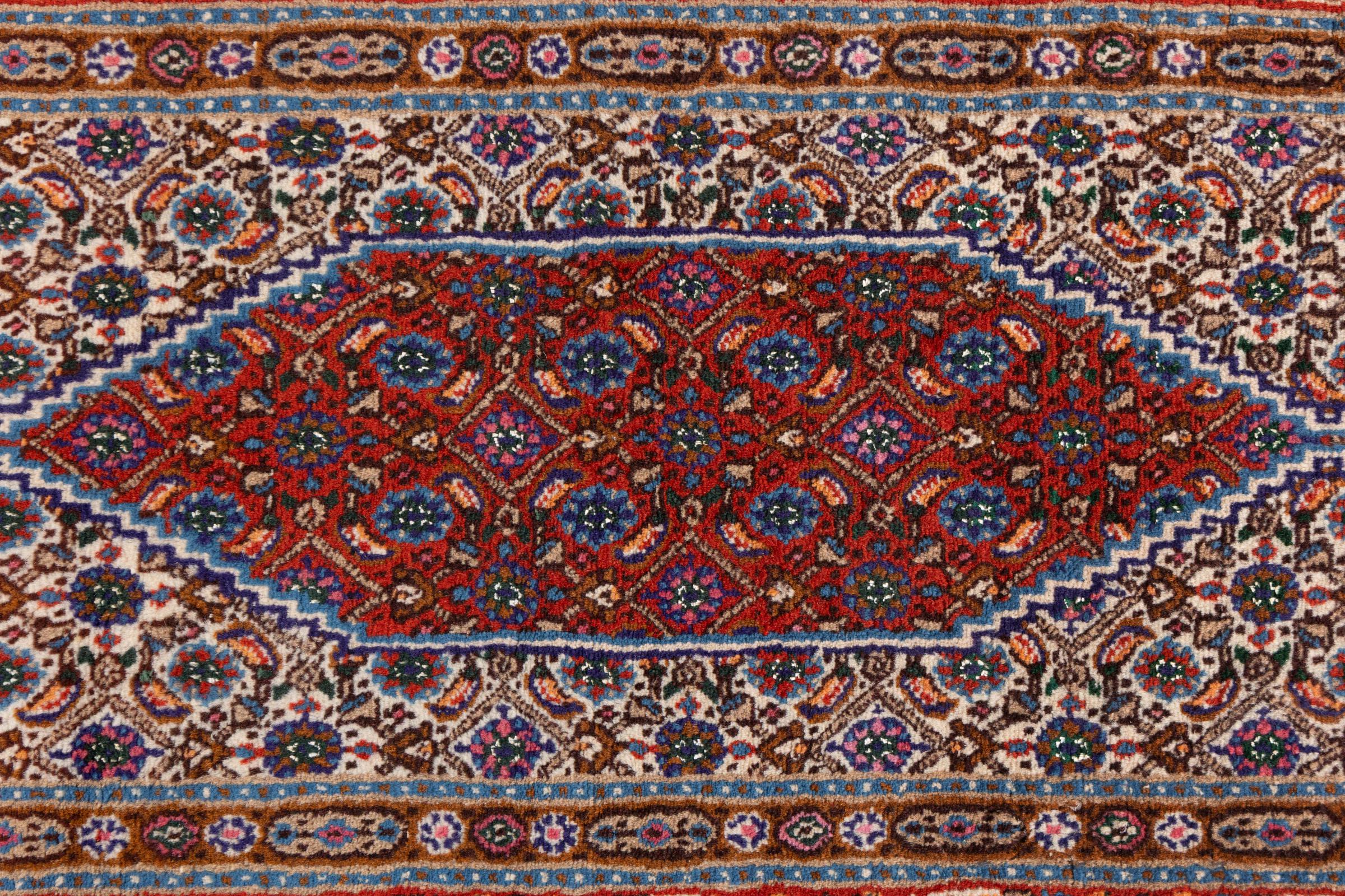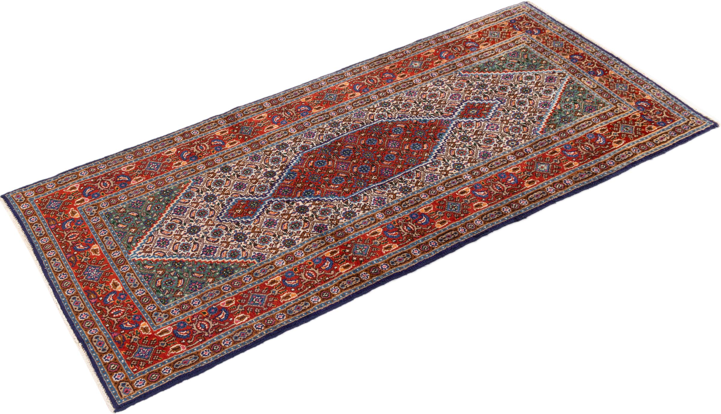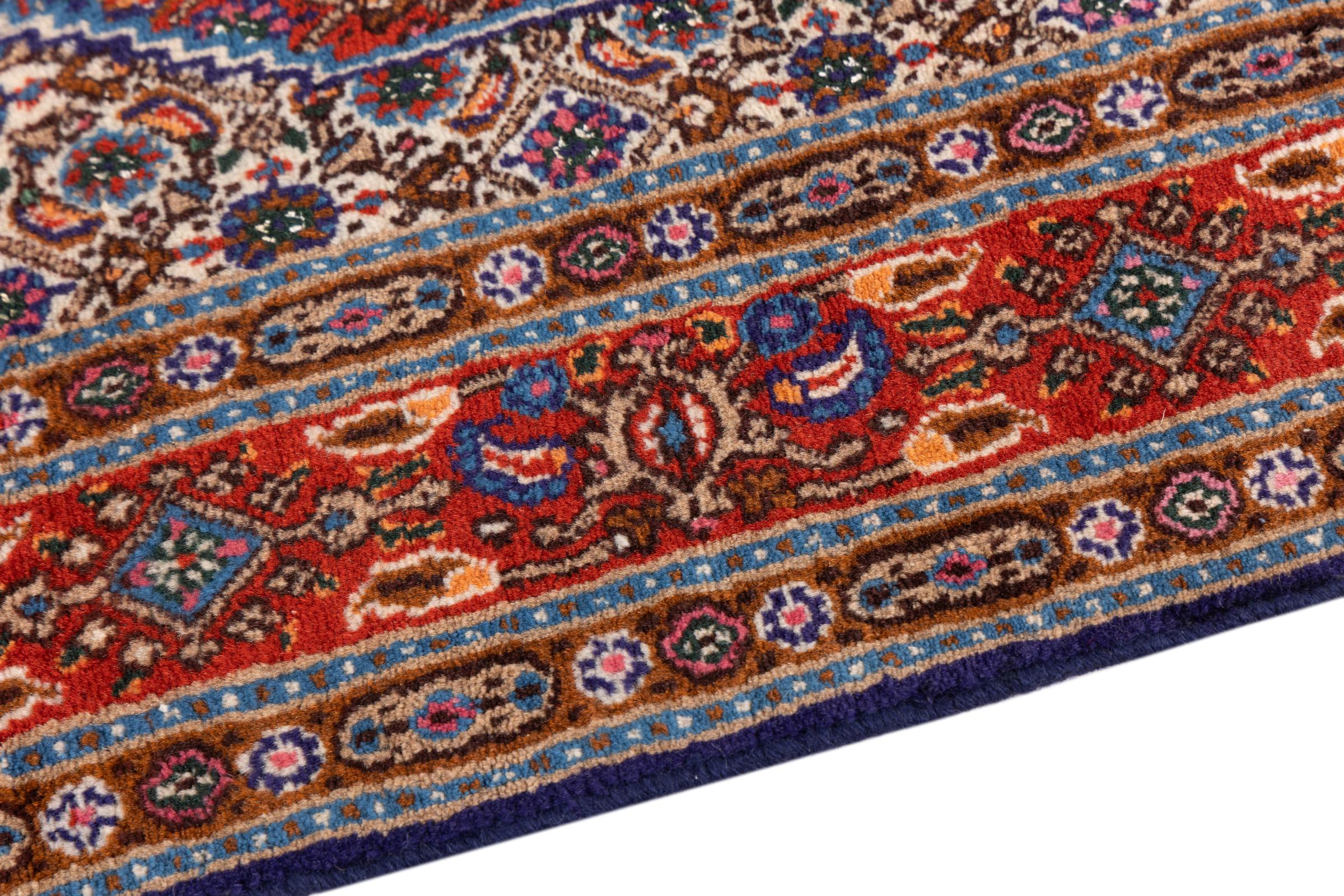 Dette tæppe fra Moud, en by 300 km syd for Mashhad, er imponerende ved første øjekast. Det typiske Herati-mønster eller havedesign værdsættes af kendere og elskere af ægte persiske tæpper. Hvis du leder efter et håndlavet tæppe af fin kvalitet med et meget unikt og karakteristisk design, er denne type tæppe det helt rigtige for dig.