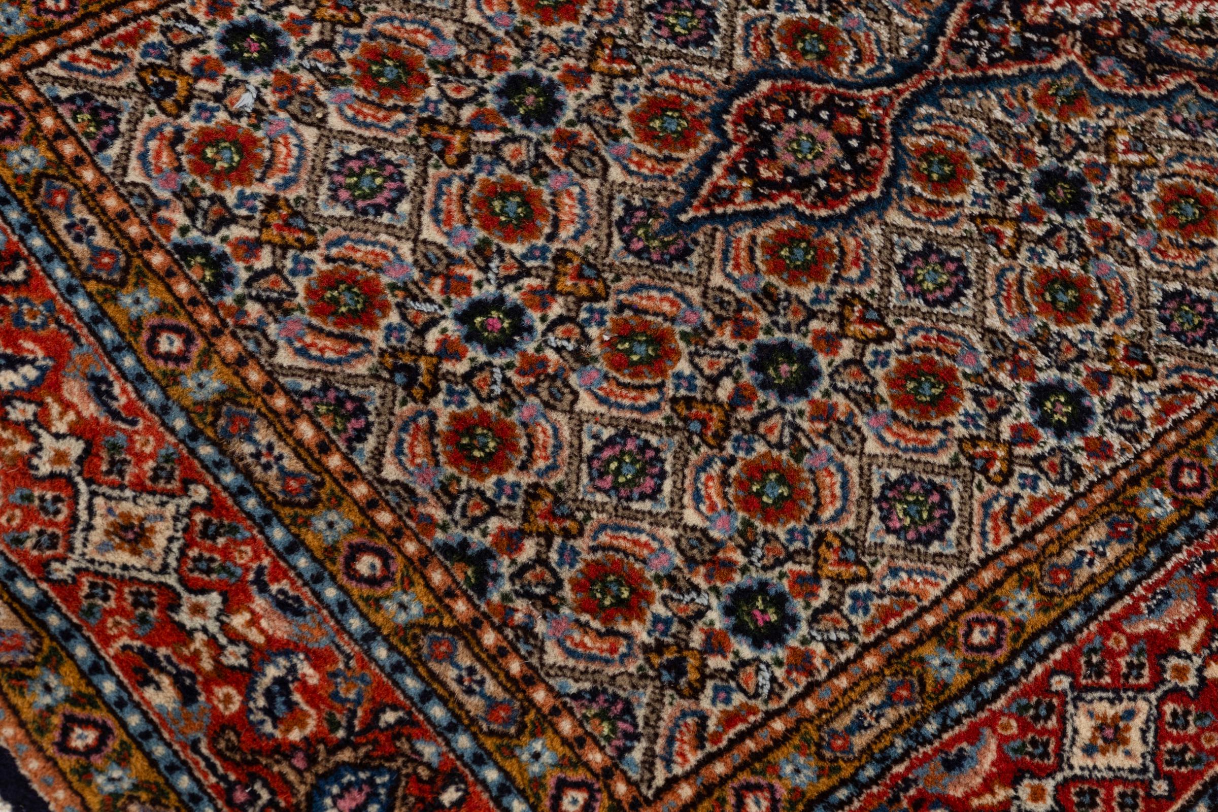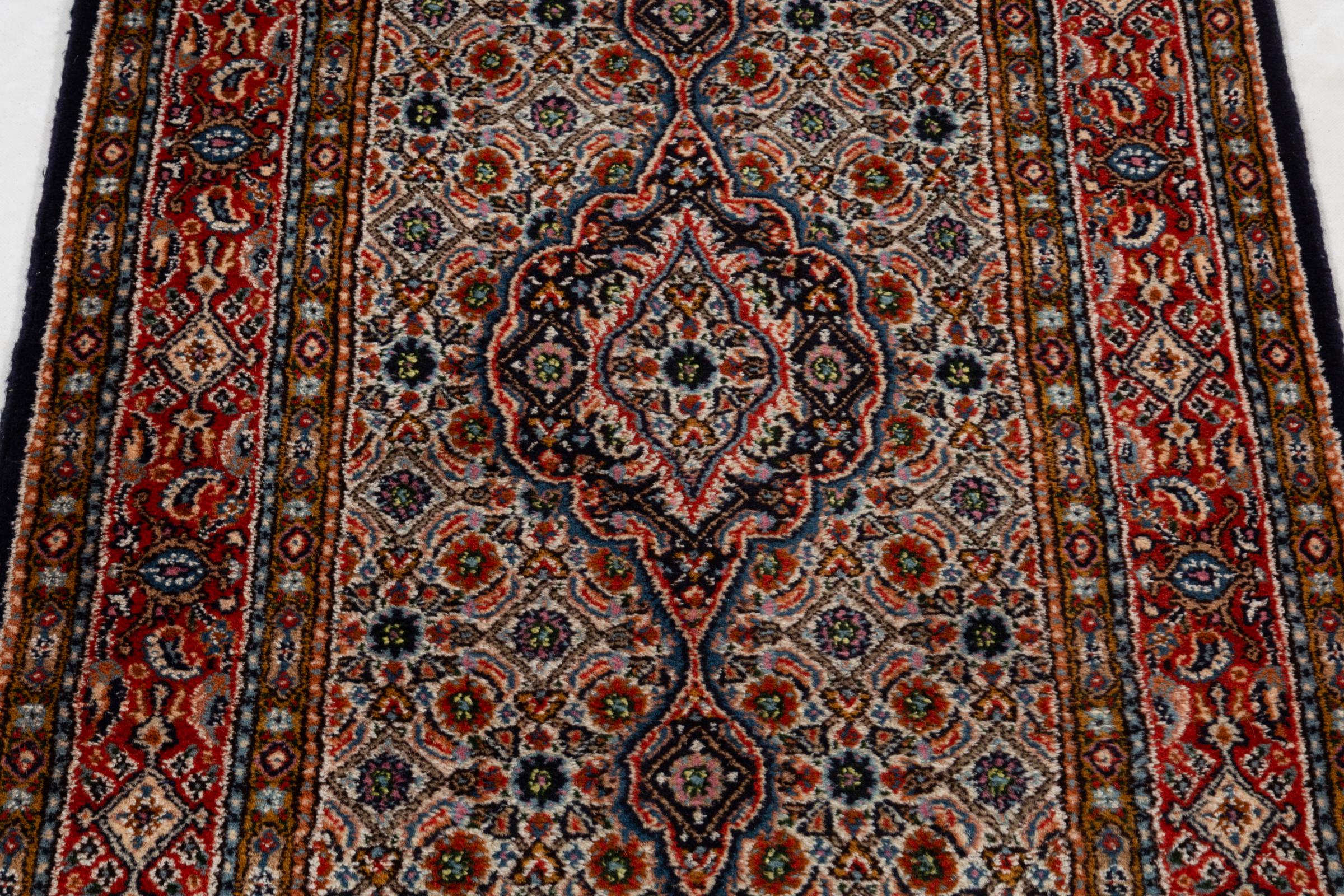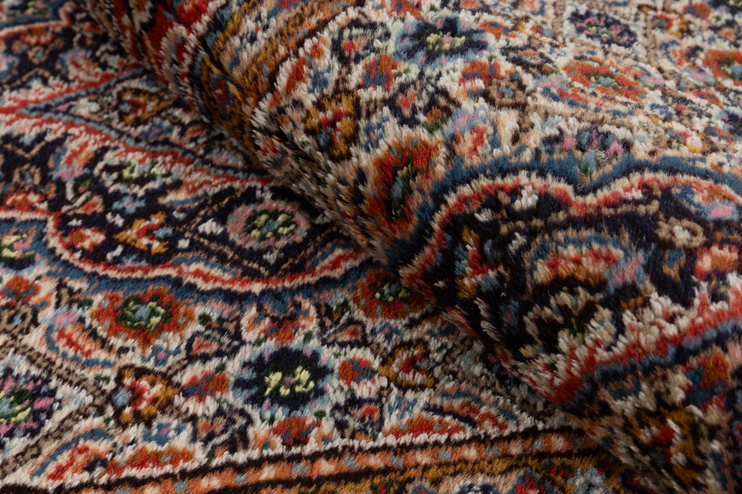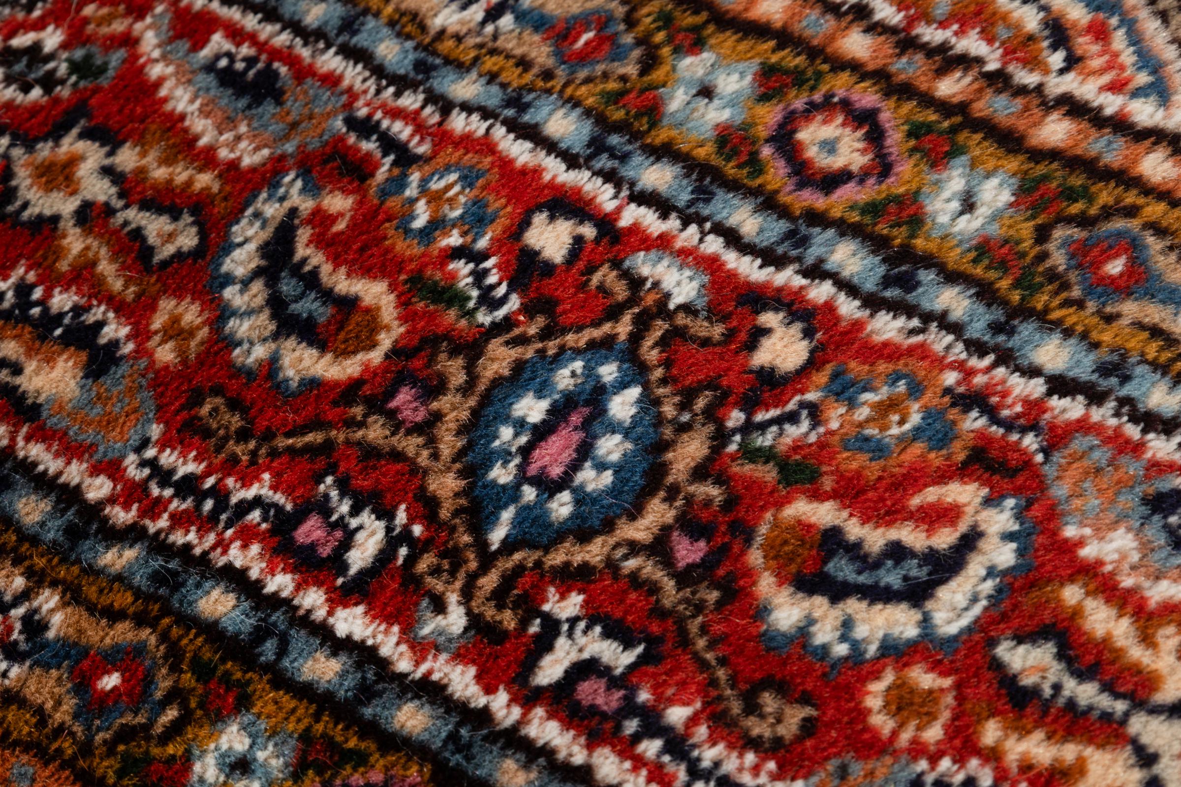 Dette tæppe fra Moud, en by 300 km syd for Mashhad, er imponerende ved første øjekast. Det typiske Herati-mønster eller havedesign værdsættes af kendere og elskere af ægte persiske tæpper. Hvis du leder efter et håndlavet tæppe af fin kvalitet med et meget unikt og karakteristisk design, er denne type tæppe det helt rigtige for dig.