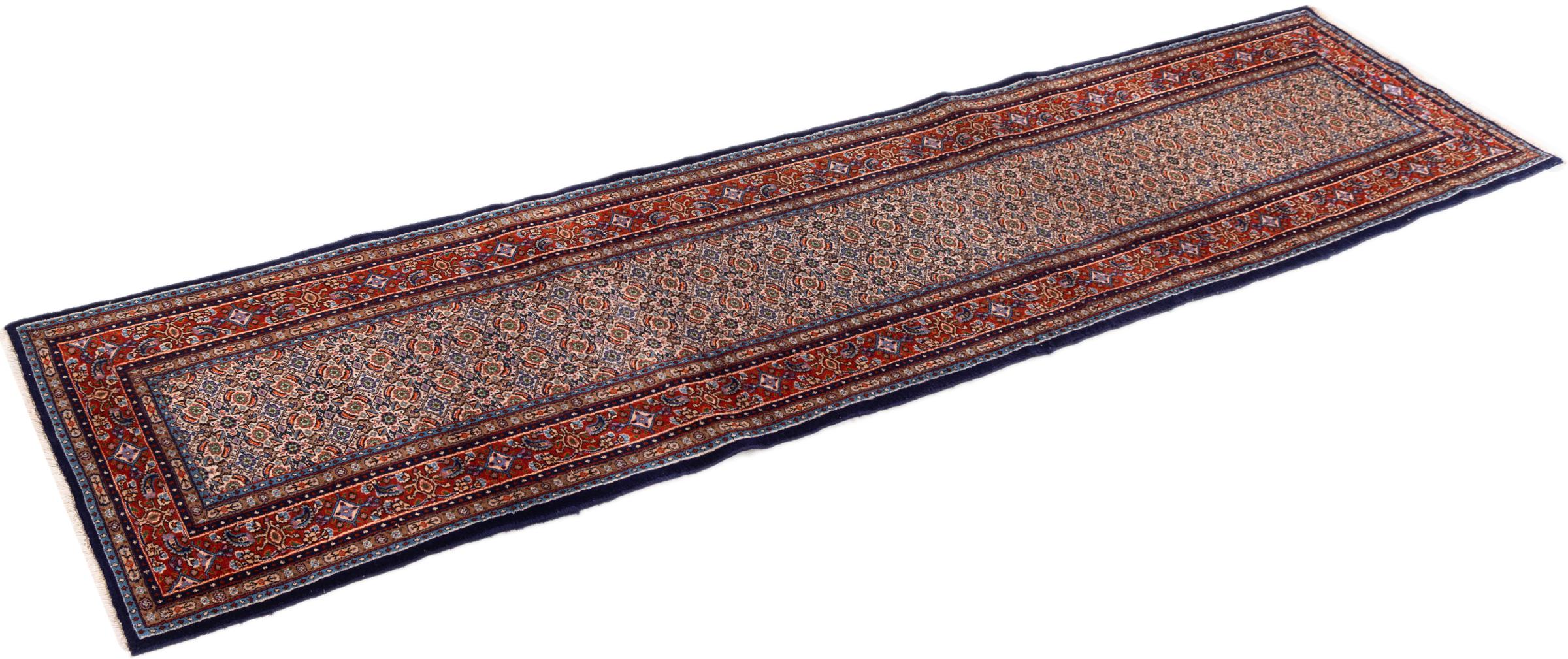 Tæppe-nr.: 29740300105476 Størrelse: 398x79 cm Tykkelse: ca. 12 mm Knuder: 320 000 - 360 000 / m² Forarbejdelse: Knyttet i hånden Luv: Uld med silke Kæde: Bomuld Oprindelse: Persien / Iran Alder: Ny Vægt: ca. 11 kg Antal på lager: Unik - Kun 1 tilbage på lager