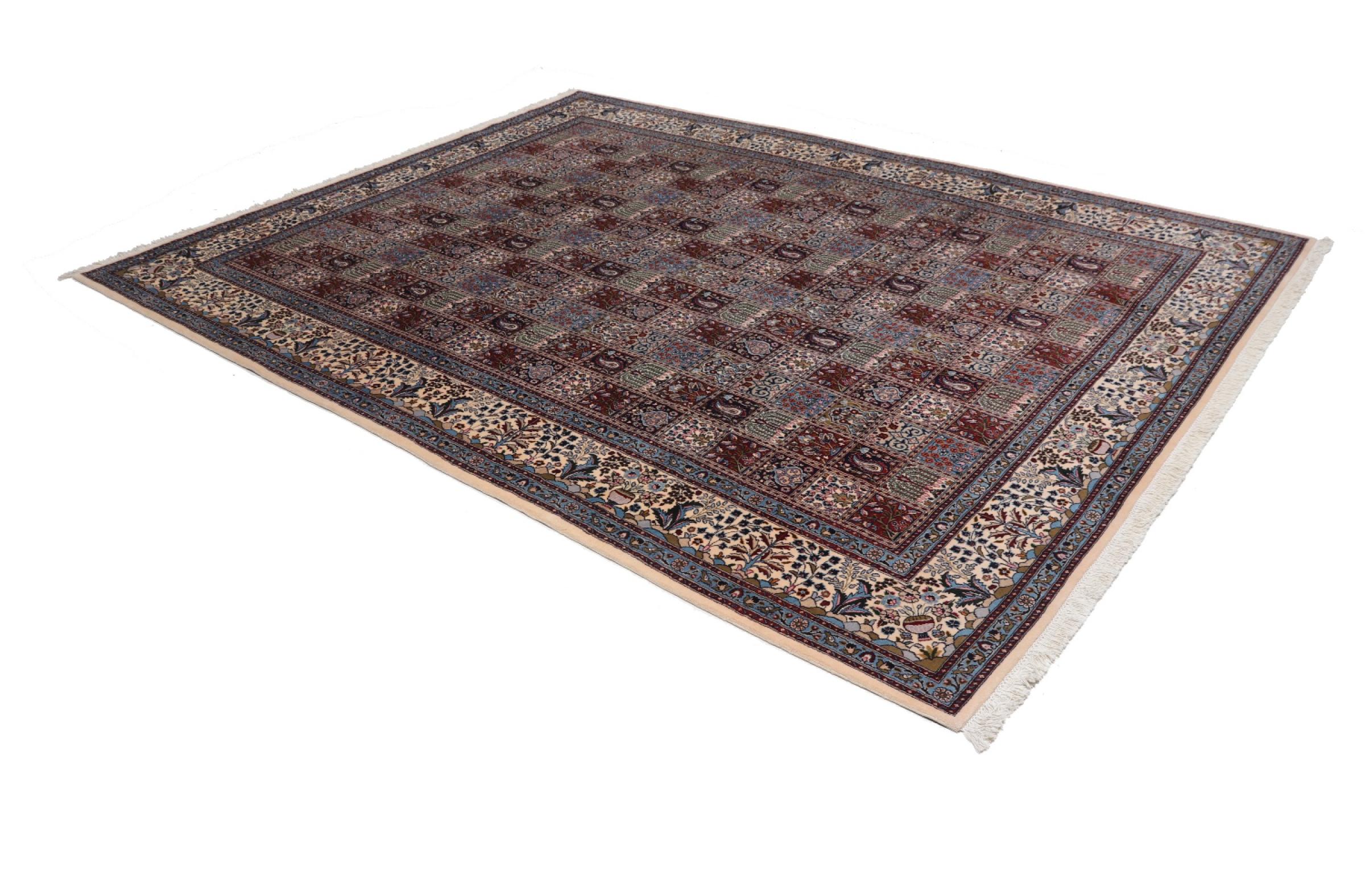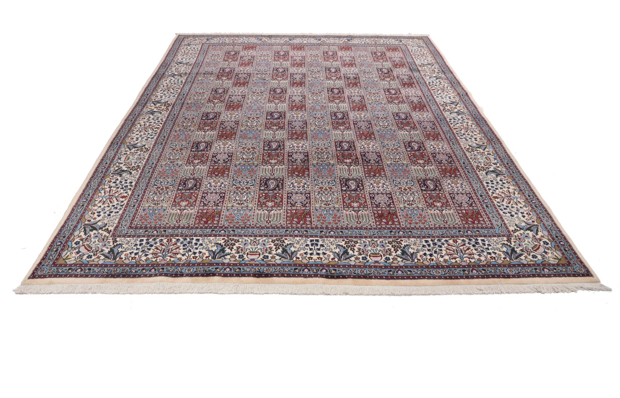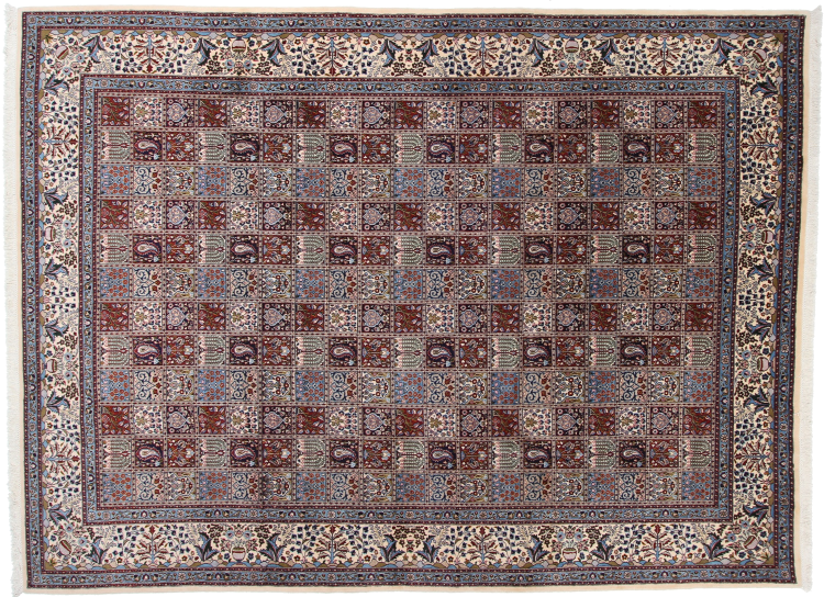 Dette tæppe fra Moud, en by 300 km syd for Mashhad, er imponerende ved første øjekast. Det typiske Herati-mønster eller havedesign værdsættes af kendere og elskere af ægte persiske tæpper. Hvis du leder efter et håndlavet tæppe af fin kvalitet med et meget unikt og karakteristisk design, er denne type tæppe det helt rigtige for dig.
