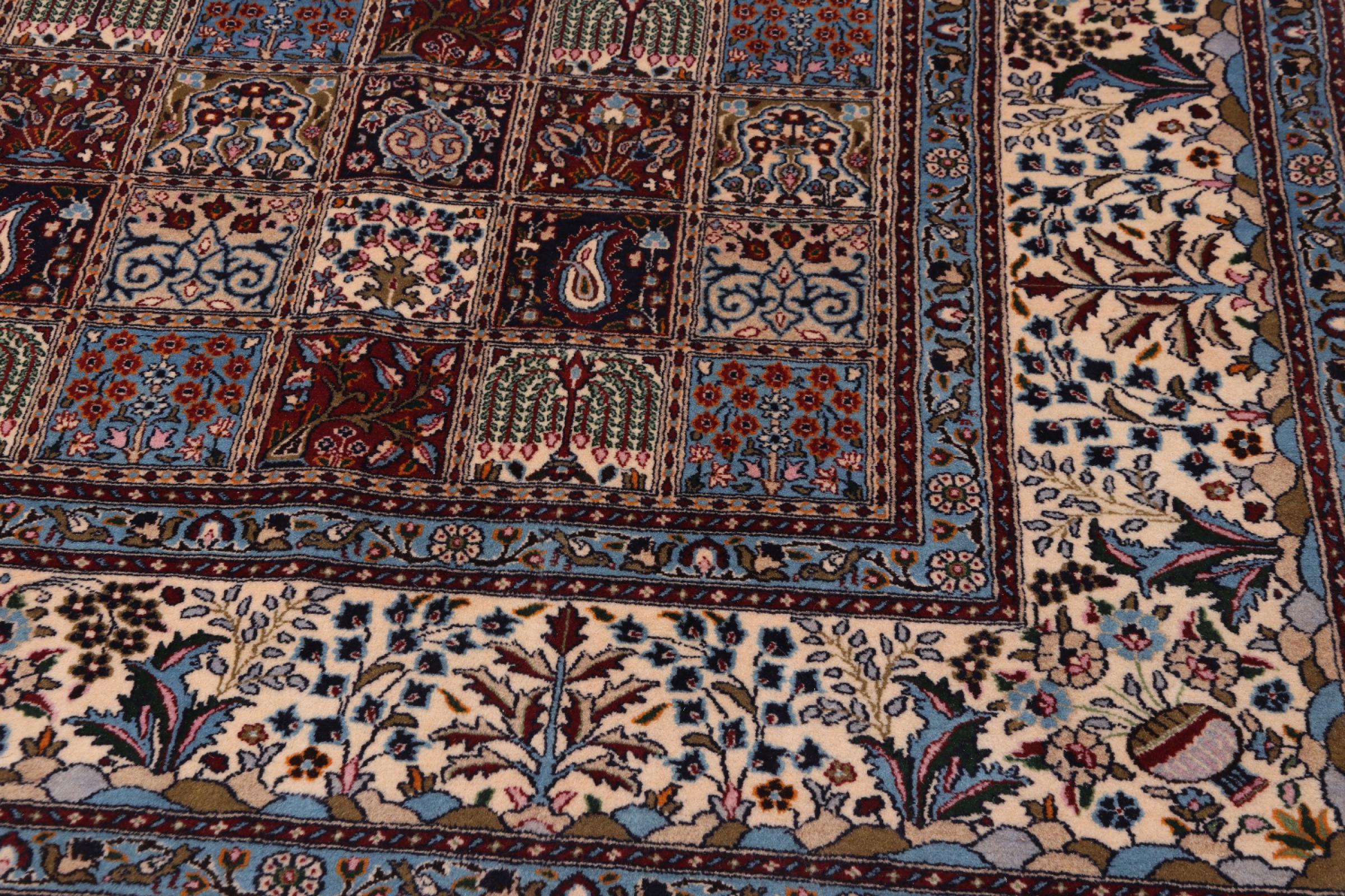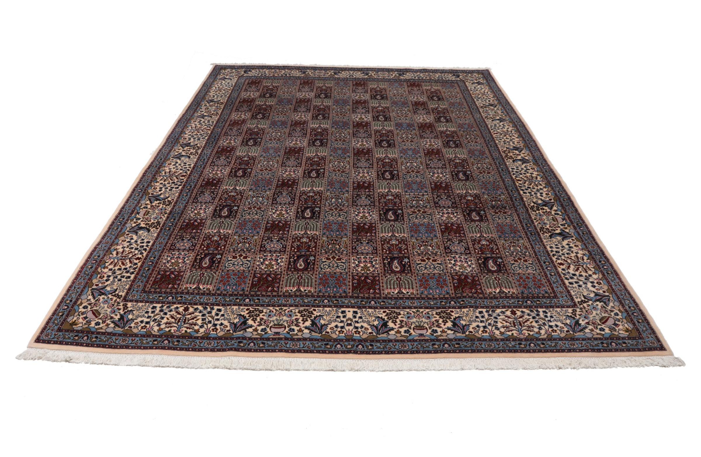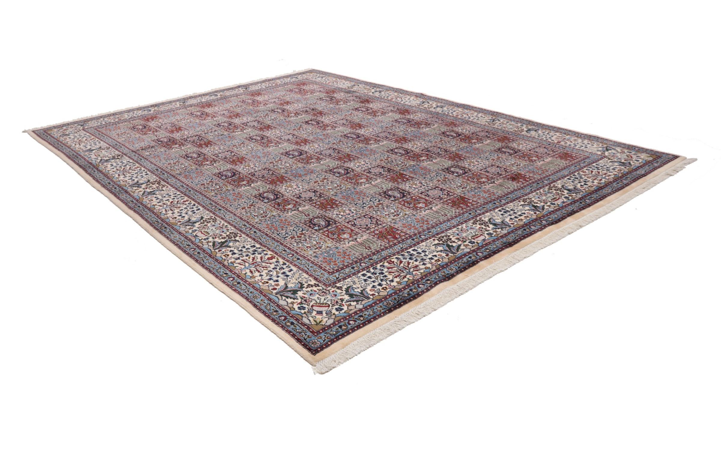 Dette tæppe fra Moud, en by 300 km syd for Mashhad, er imponerende ved første øjekast. Det typiske Herati-mønster eller havedesign værdsættes af kendere og elskere af ægte persiske tæpper. Hvis du leder efter et håndlavet tæppe af fin kvalitet med et meget unikt og karakteristisk design, er denne type tæppe det helt rigtige for dig.