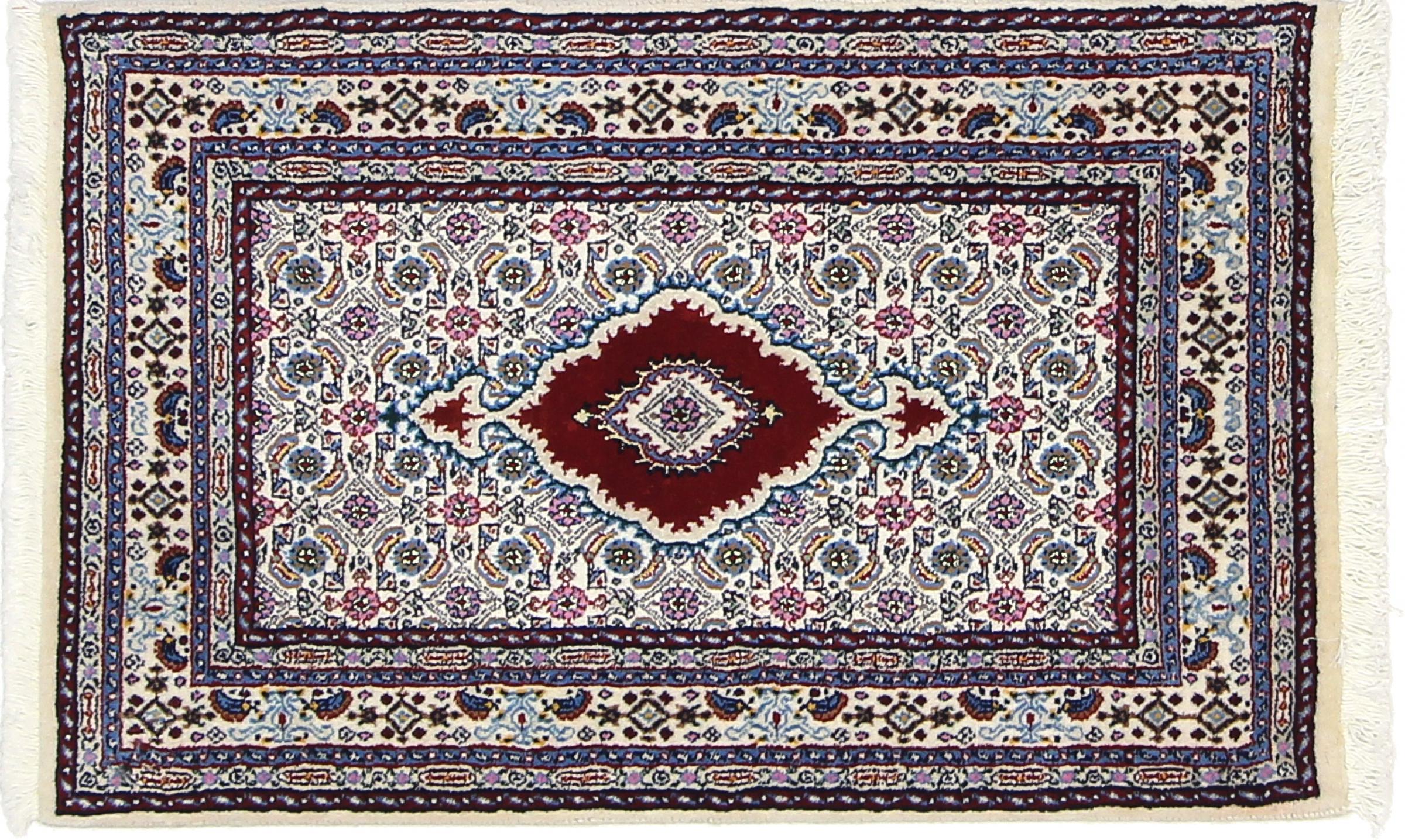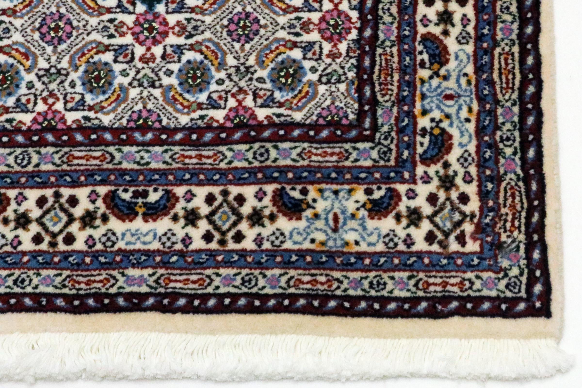 Dette tæppe fra Moud, en by 300 km syd for Mashhad, er imponerende ved første øjekast. Det typiske Herati-mønster eller havedesign værdsættes af kendere og elskere af ægte persiske tæpper. Hvis du leder efter et håndlavet tæppe af fin kvalitet med et meget unikt og karakteristisk design, er denne type tæppe det helt rigtige for dig.