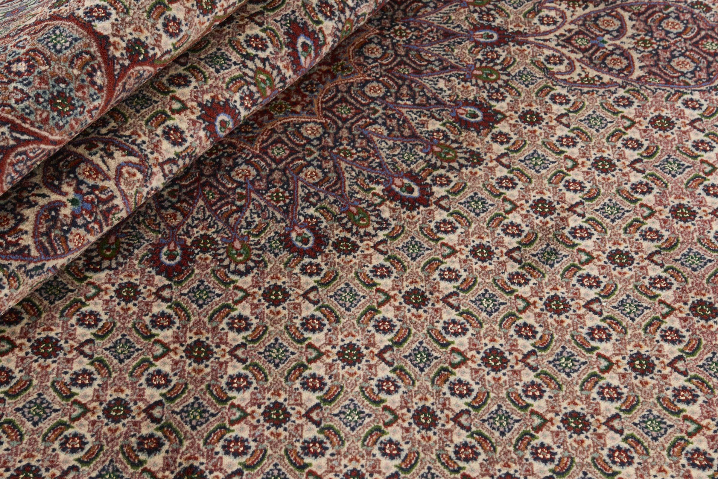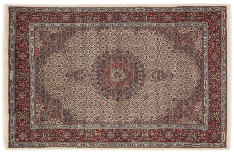 Dette tæppe fra Moud, en by 300 km syd for Mashhad, er imponerende ved første øjekast. Det typiske Herati-mønster eller havedesign værdsættes af kendere og elskere af ægte persiske tæpper. Hvis du leder efter et håndlavet tæppe af fin kvalitet med et meget unikt og karakteristisk design, er denne type tæppe det helt rigtige for dig.
