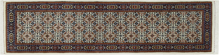Tæppe-nr.: 303991007613685 Størrelse: 193x83 cm Tykkelse: ca. 5 mm Knuder: 440 000 - 490 000 / m² Forarbejdelse: Knyttet i hånden Luv: Uld med silke Kæde: Bomuld Oprindelse: Persien / Iran Alder: Ny Vægt: ca. 6 kg Antal på lager: Unik - Kun 1 tilbage på lager