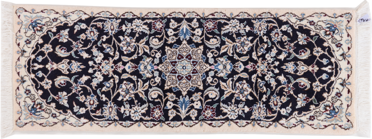 Tæppe-nr.: 2940240021614 Størrelse: 118x41 cm Tykkelse: ca. 8 mm Knuder: 440 000 - 490 000 / m² Forarbejdelse: Knyttet i hånden Luv: Uld med silke Kæde: Bomuld Oprindelse: Persien / Iran Alder: Ny Vægt: ca. 2 kg Antal på lager: Unik - Kun 1 tilbage på lager
