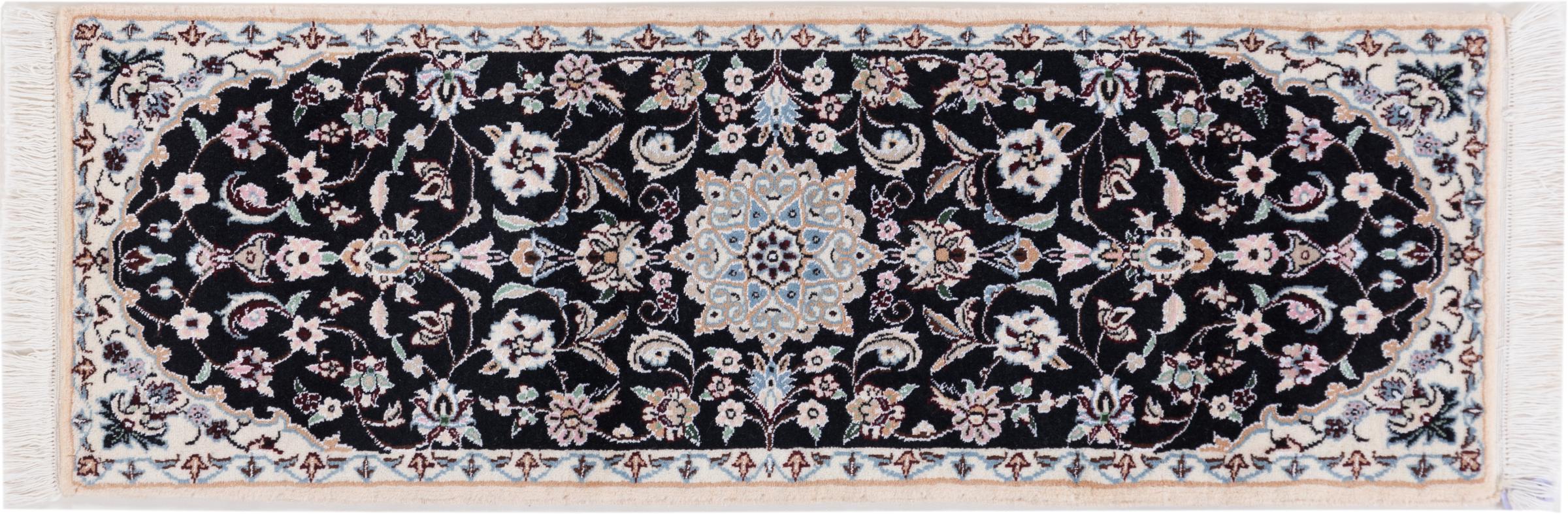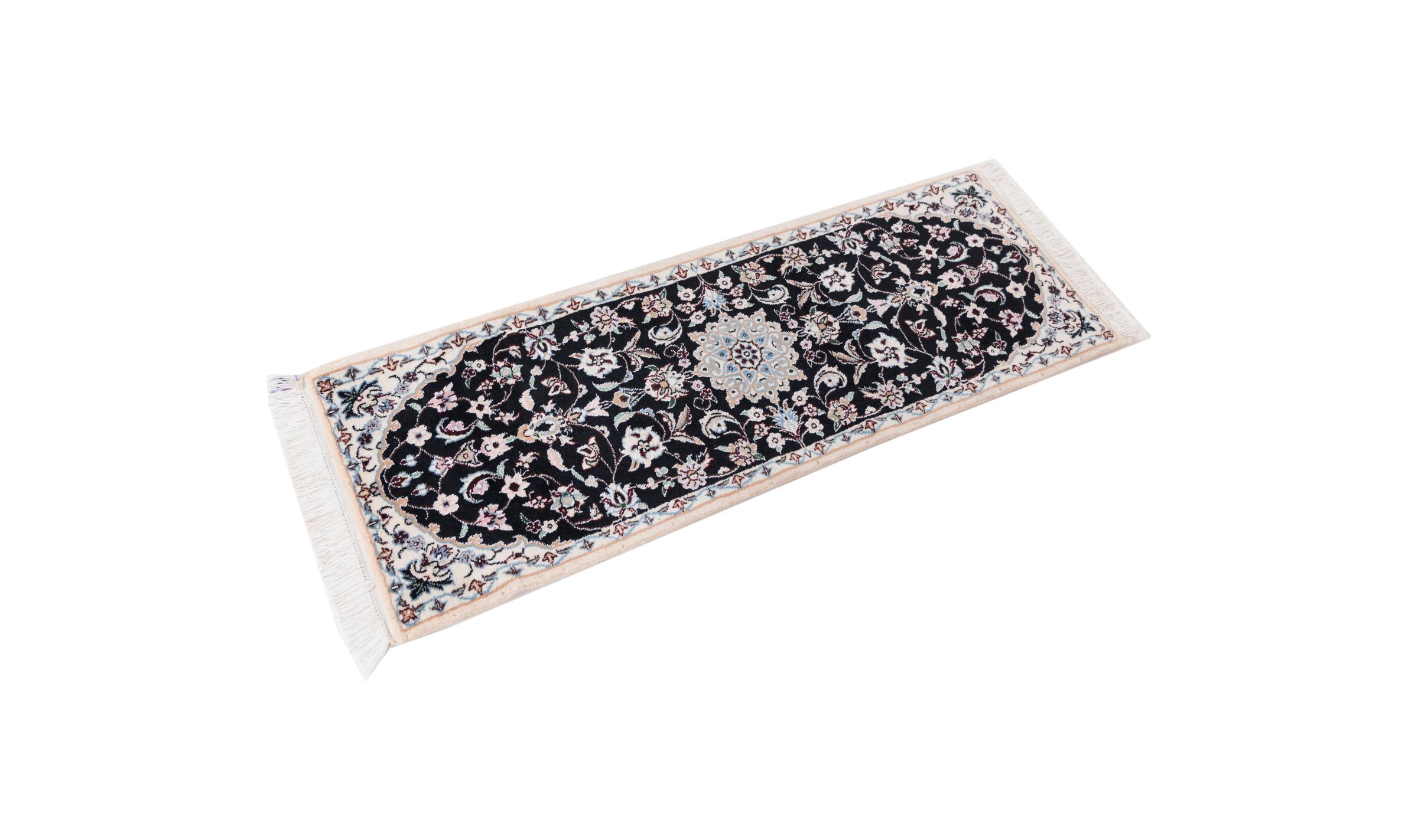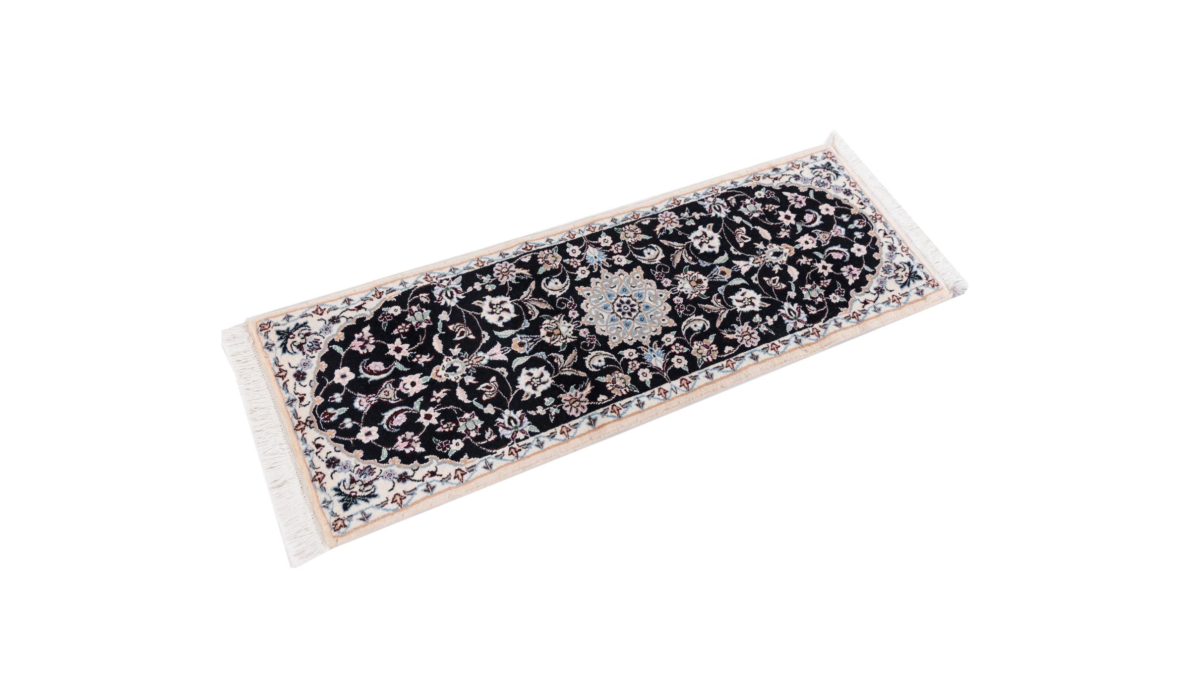 Tæppe-nr.: 2940220021612 Størrelse: 122x42 cm Tykkelse: ca. 8 mm Knuder: 440 000 - 490 000 / m² Forarbejdelse: Knyttet i hånden Luv: Uld med silke Kæde: Bomuld Oprindelse: Persien / Iran Alder: Ny Vægt: ca. 2 kg Antal på lager: Unik - Kun 1 tilbage på lager