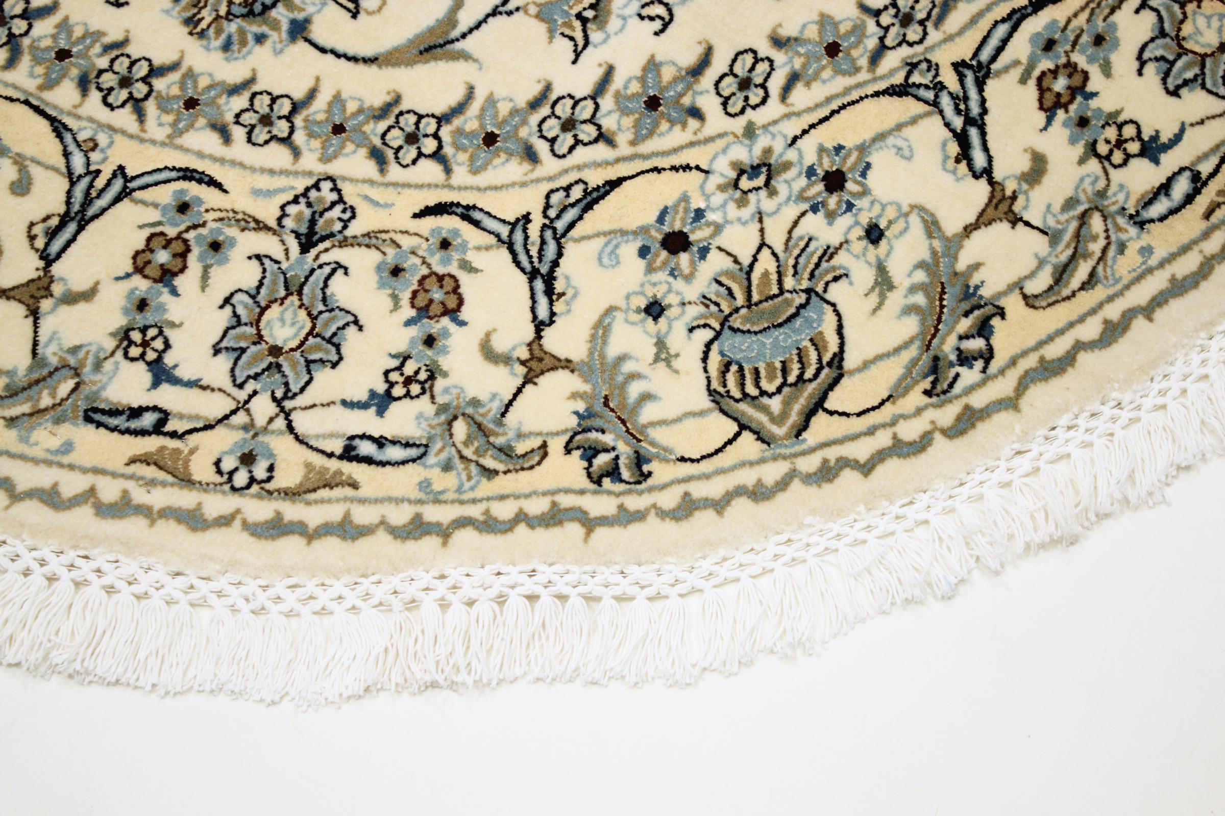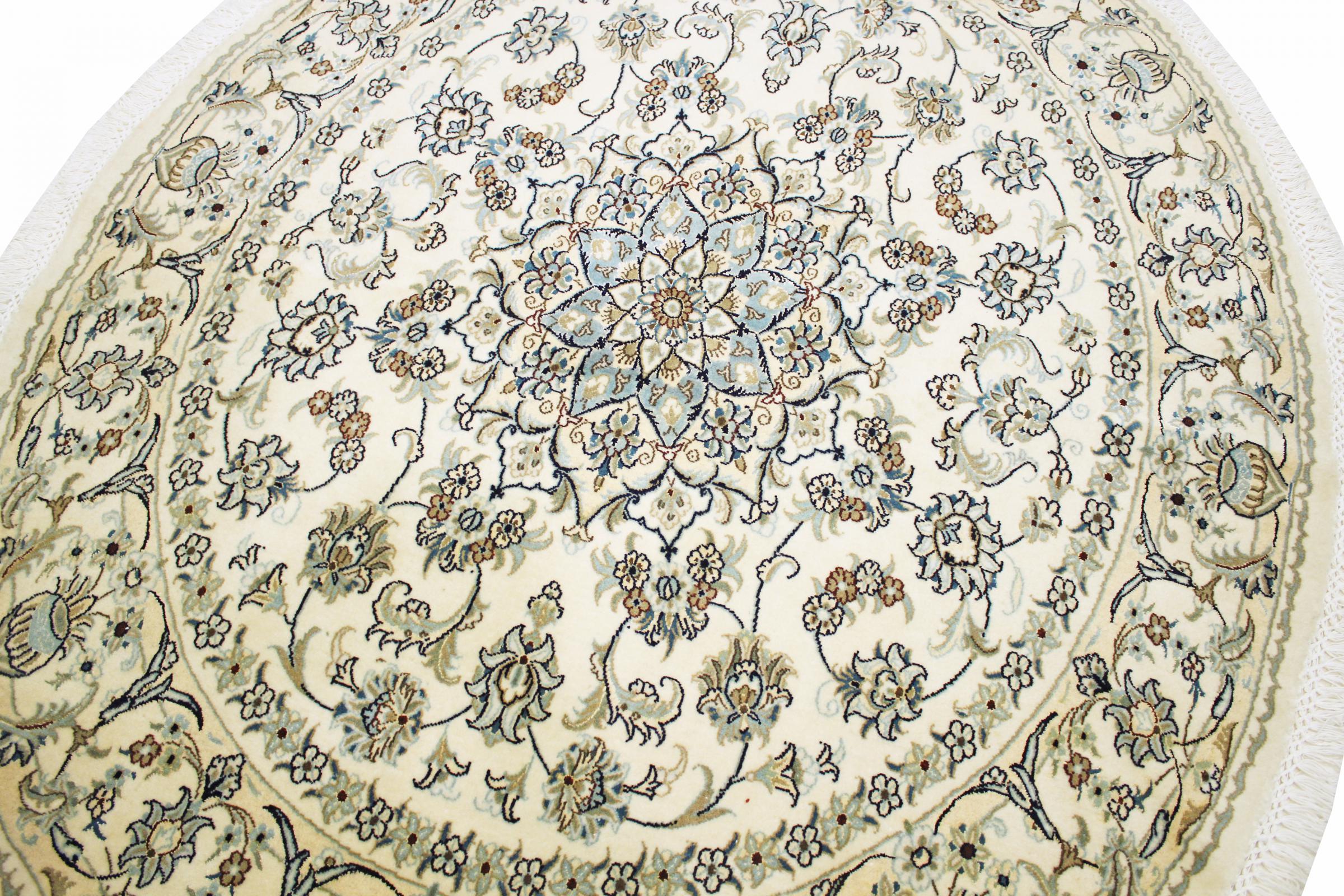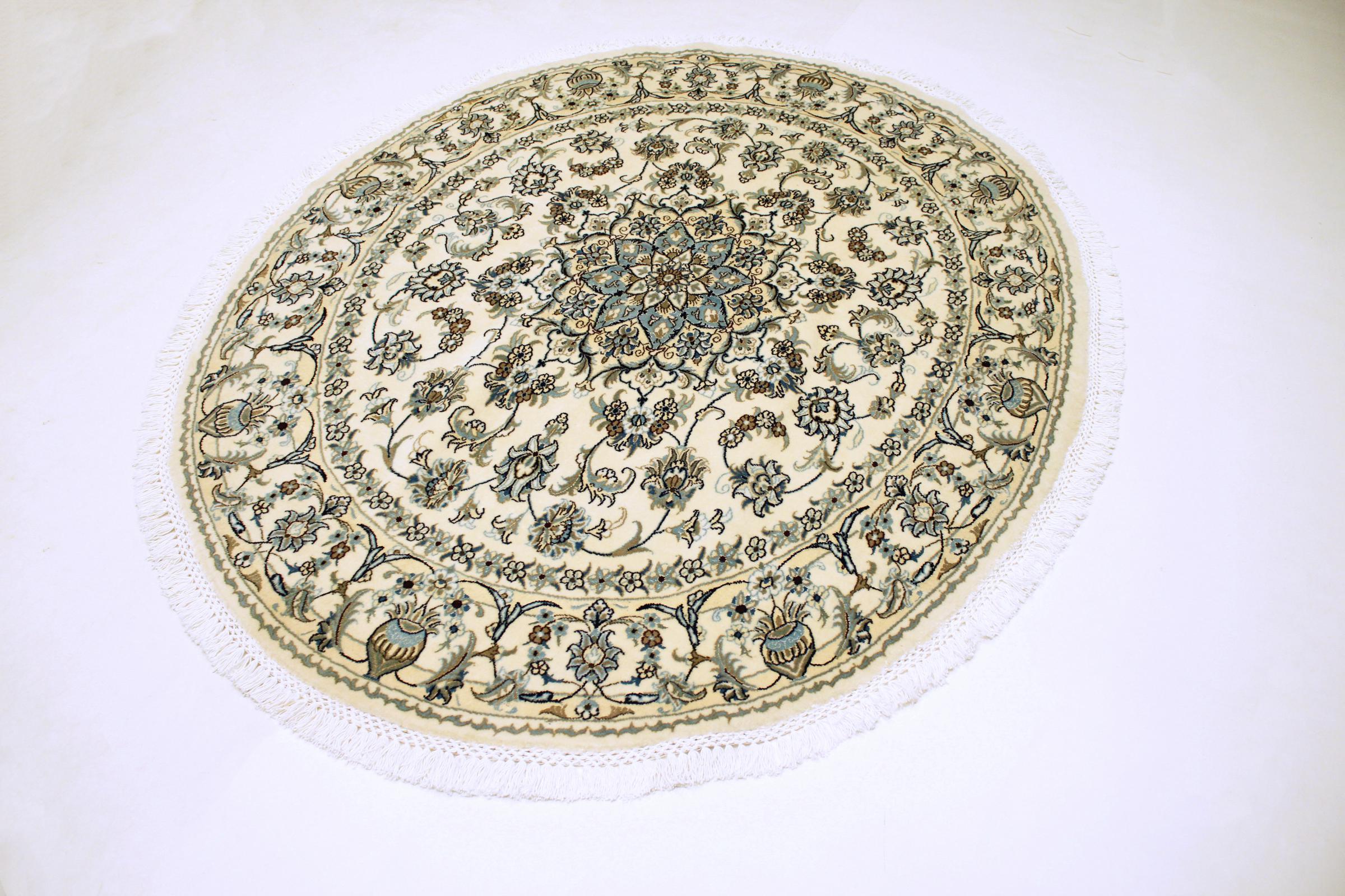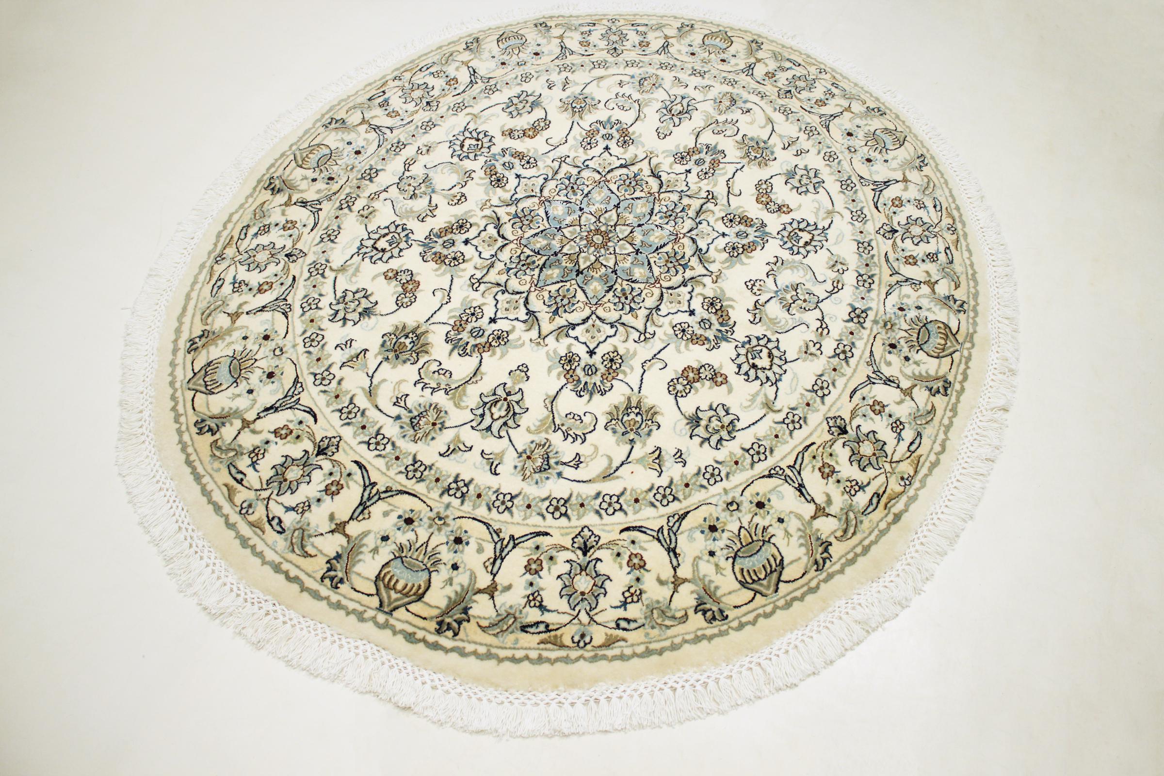 Dette Nain-tæppe er klassificeret 9La. Den fremragende kvalitet, det smukke orientalske design med sine buede mønstre glæder enhver køber. Dette persiske tæppe blev håndknyttet af højkvalitets uld og natursilke i byen Nain, som ligger i den vestlige udkant af Dasht-e-Kavir-ørkenen. 9La Nain er væsentligt finere end en 12La og viser allerede smukke detaljer.
