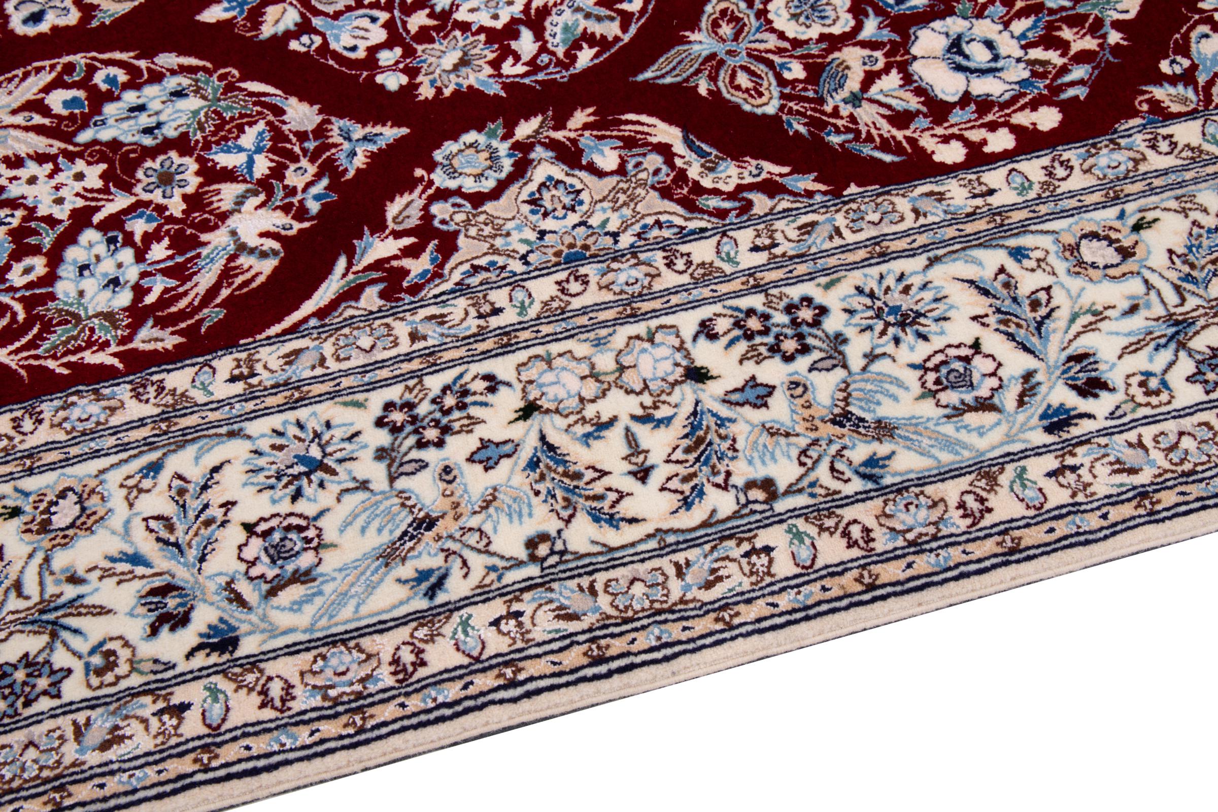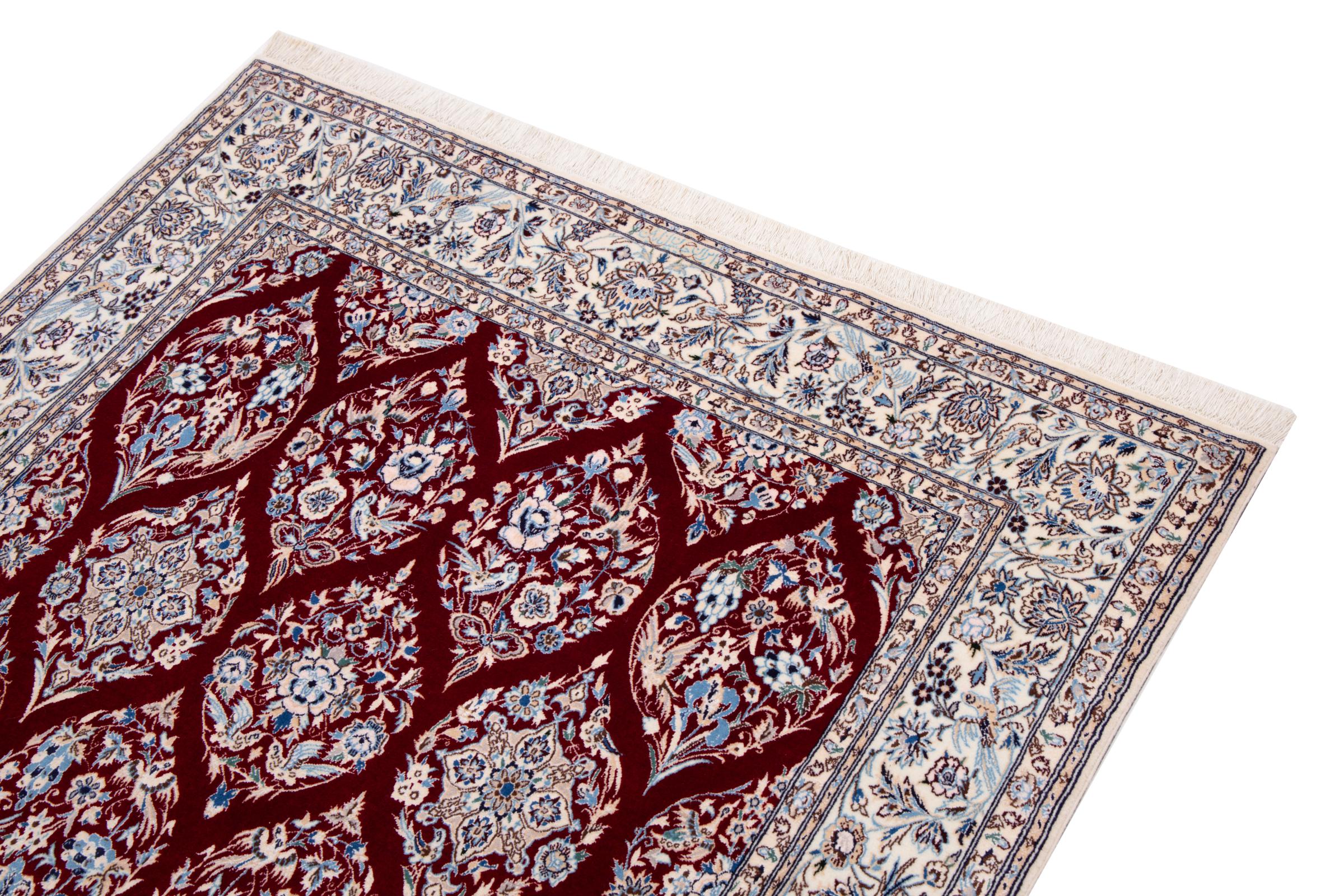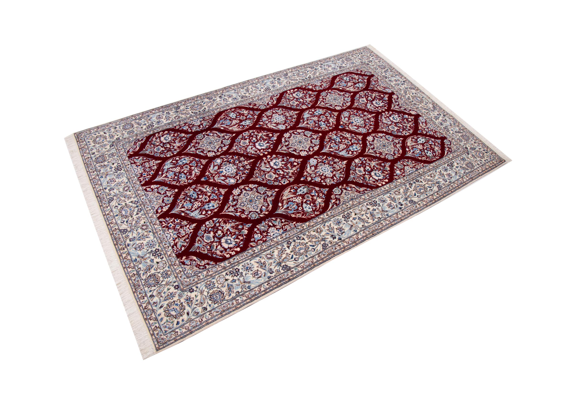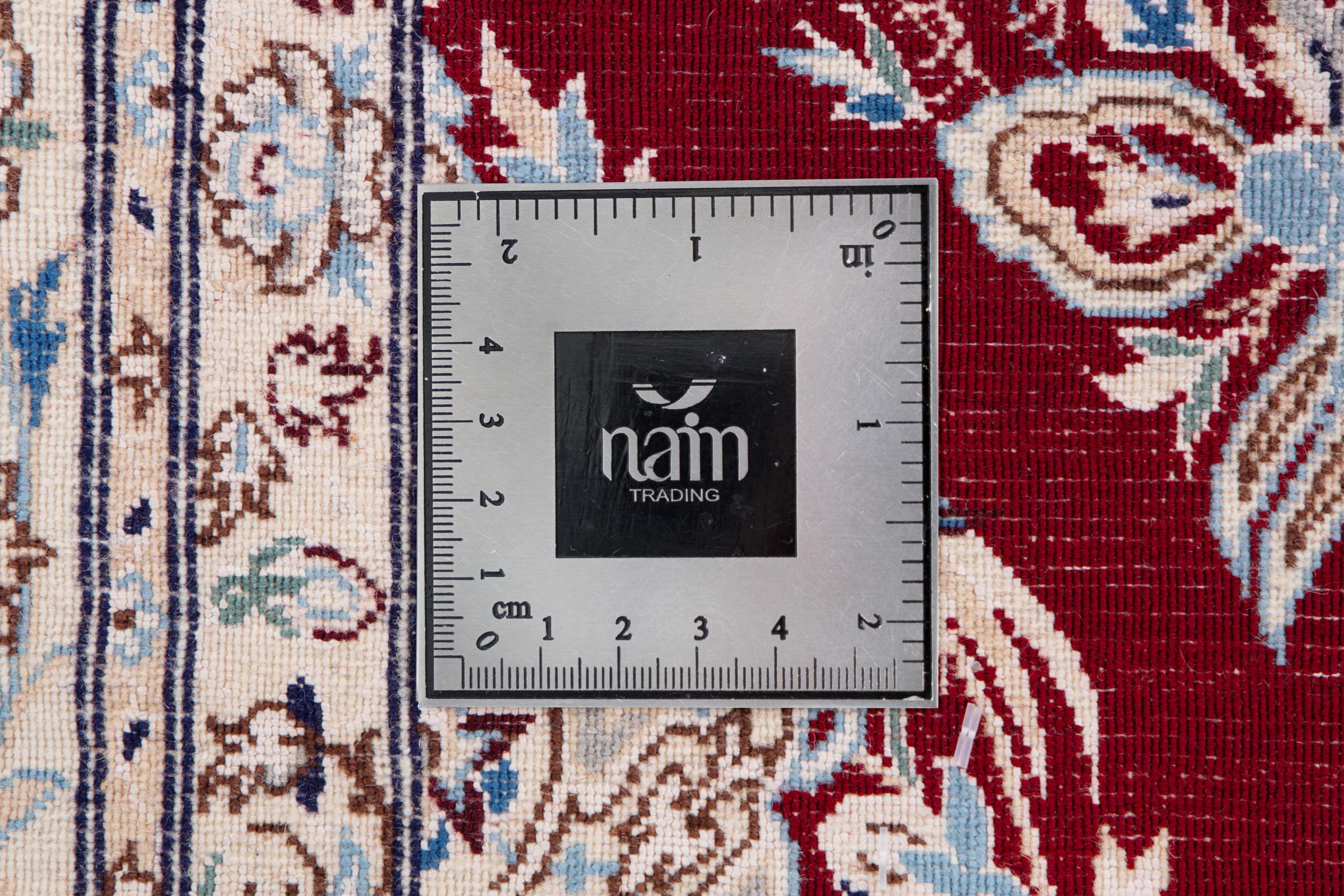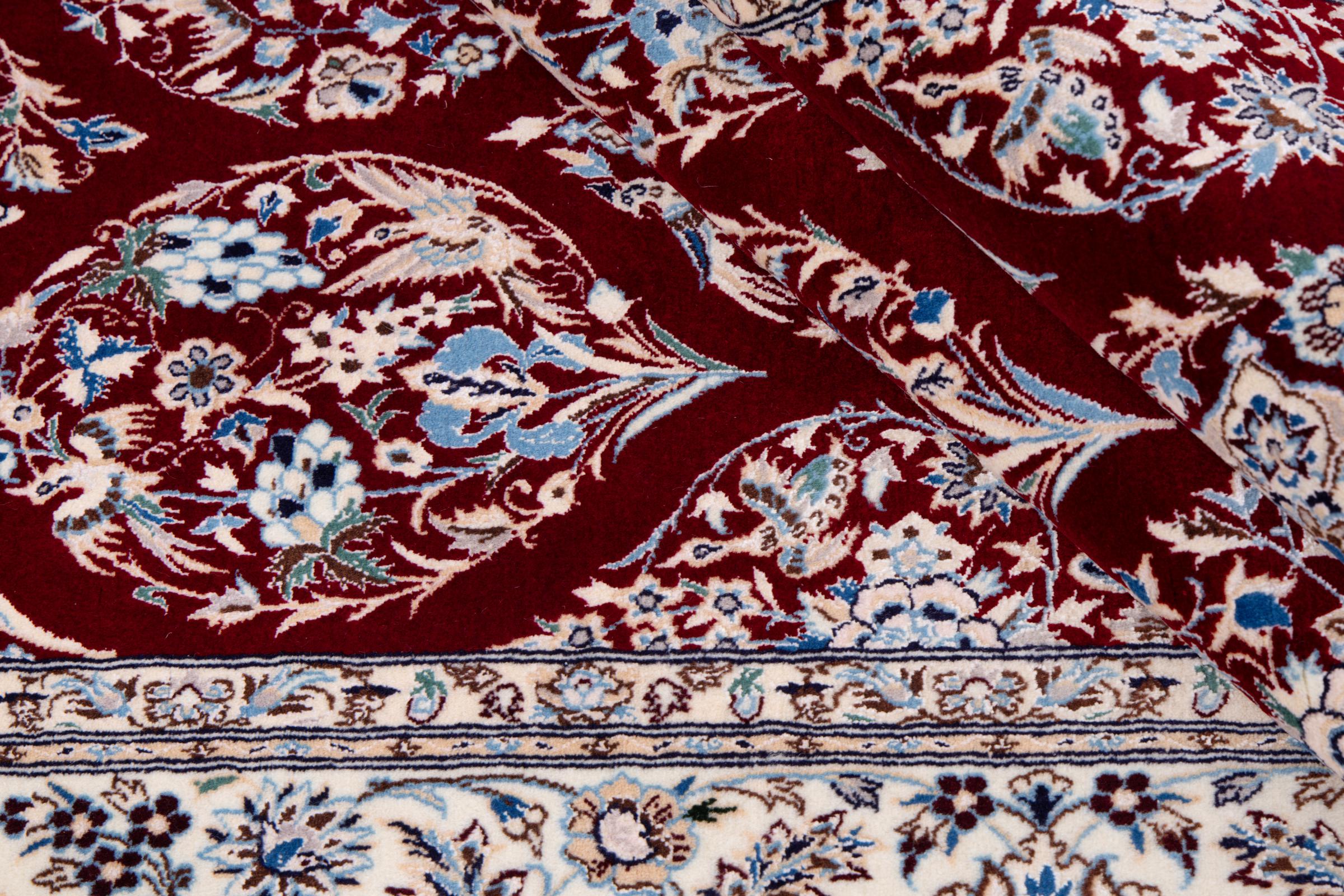 Dette Nain-tæppe kombinerer kvalitet, tradition og et umiskendeligt design. Den blev håndknyttet i ørkenbyen af ​​samme navn, Nain, af højkvalitets korkuld og natursilke. Elskere af værdifulde tæpper fra Iran vil kunne lide dette persiske tæppe. Med Nain-tæpper i 6La og 4La-klassificeringen har du et rigtigt kunstværk med et utroligt detaljeringsniveau, som du bogstaveligt talt kan fare vild. Nain 4La-tæpper er svære at finde i dag, fordi de er ekstremt komplekse at producere.