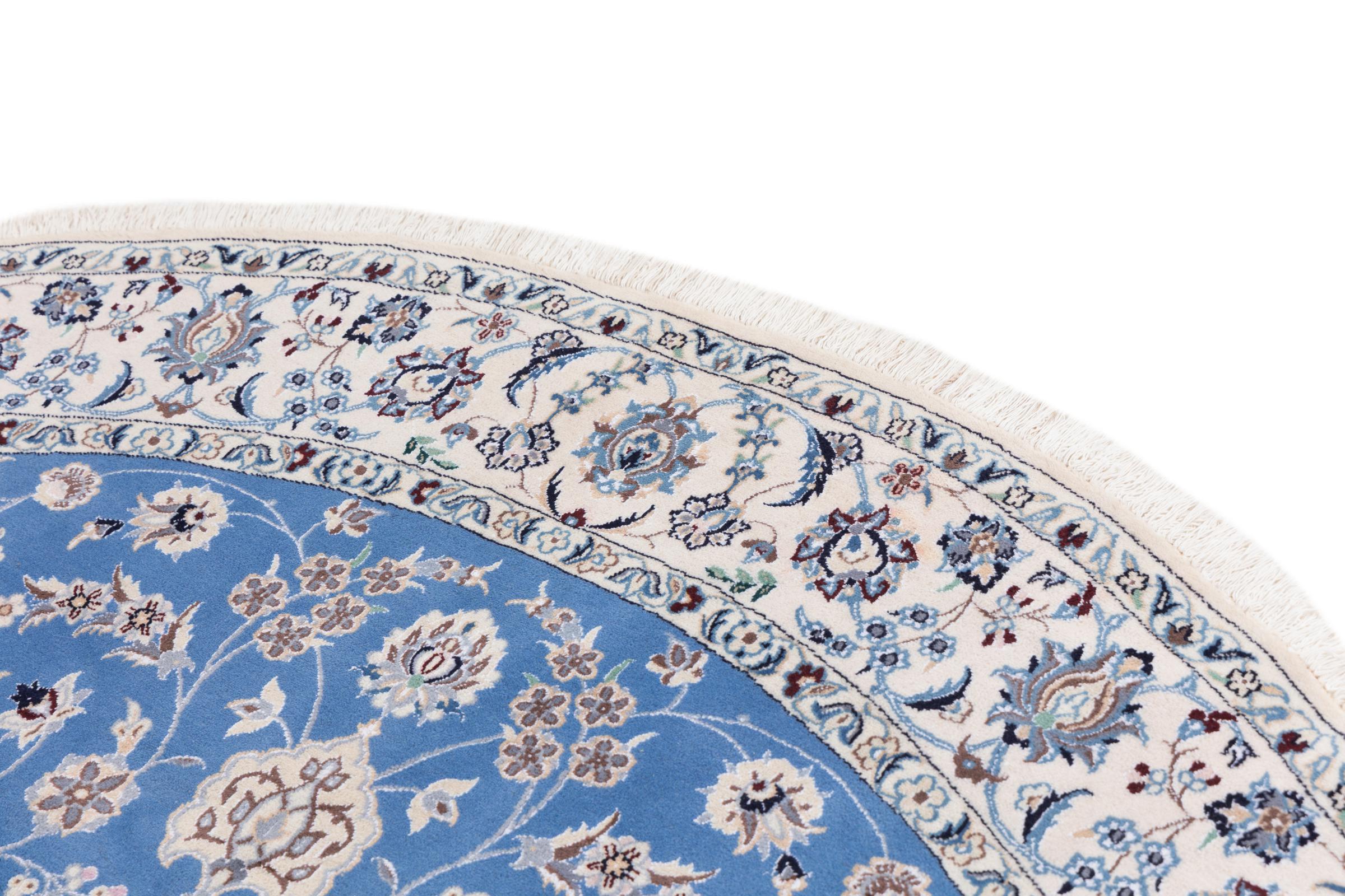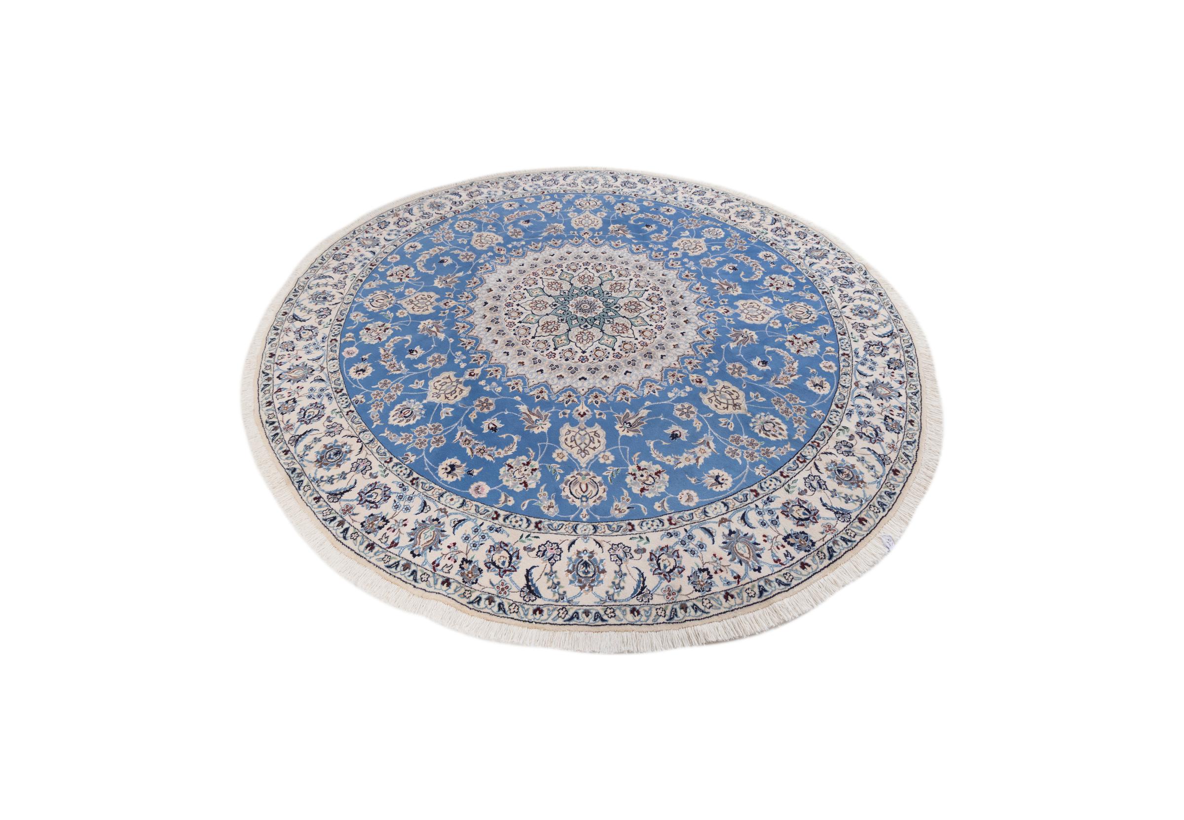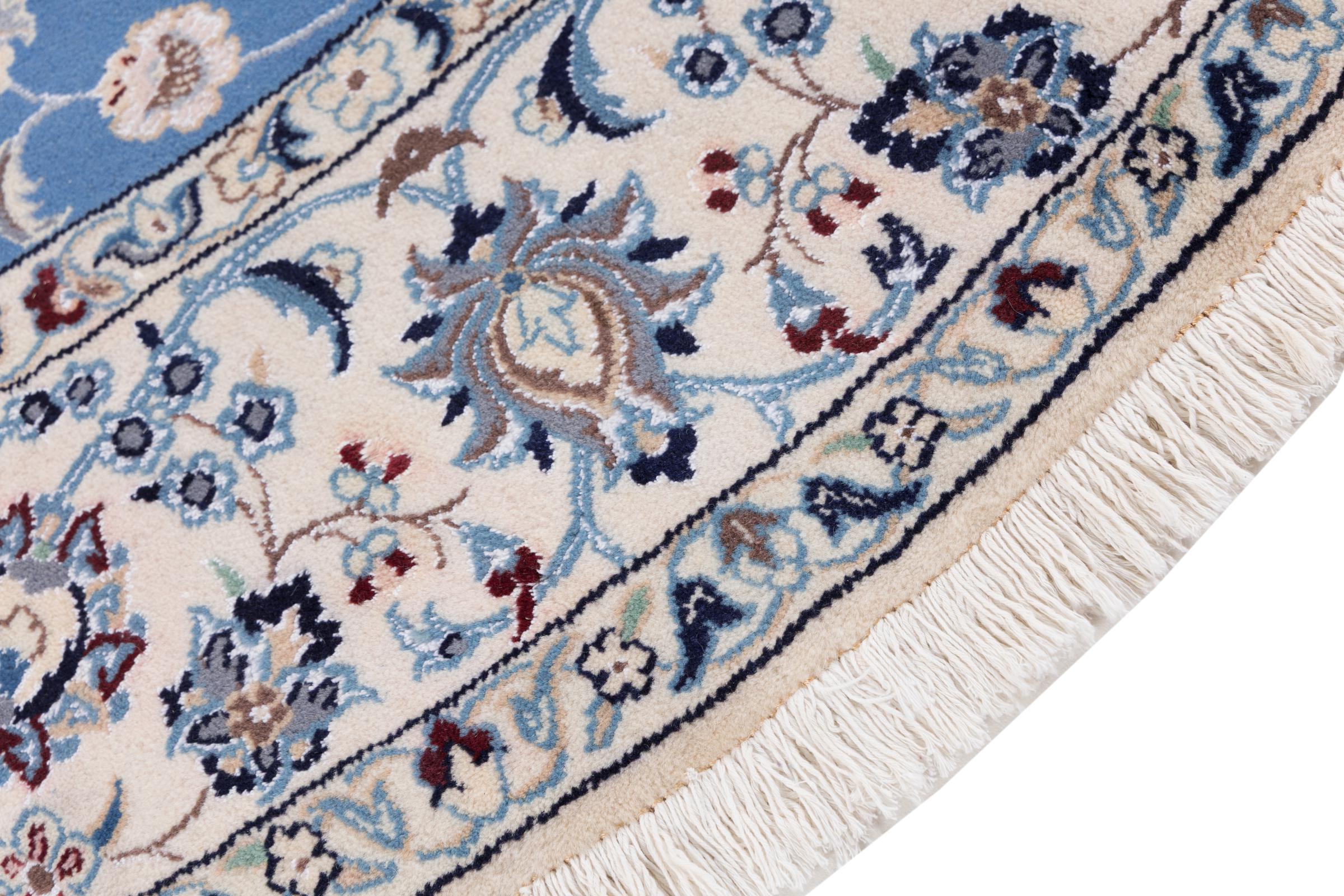 Dette Nain-tæppe er klassificeret 9La. Den fremragende kvalitet, det smukke orientalske design med sine buede mønstre glæder enhver køber. Dette persiske tæppe blev håndknyttet af højkvalitets uld og natursilke i byen Nain, som ligger i den vestlige udkant af Dasht-e-Kavir-ørkenen. 9La Nain er væsentligt finere end en 12La og viser allerede smukke detaljer.
