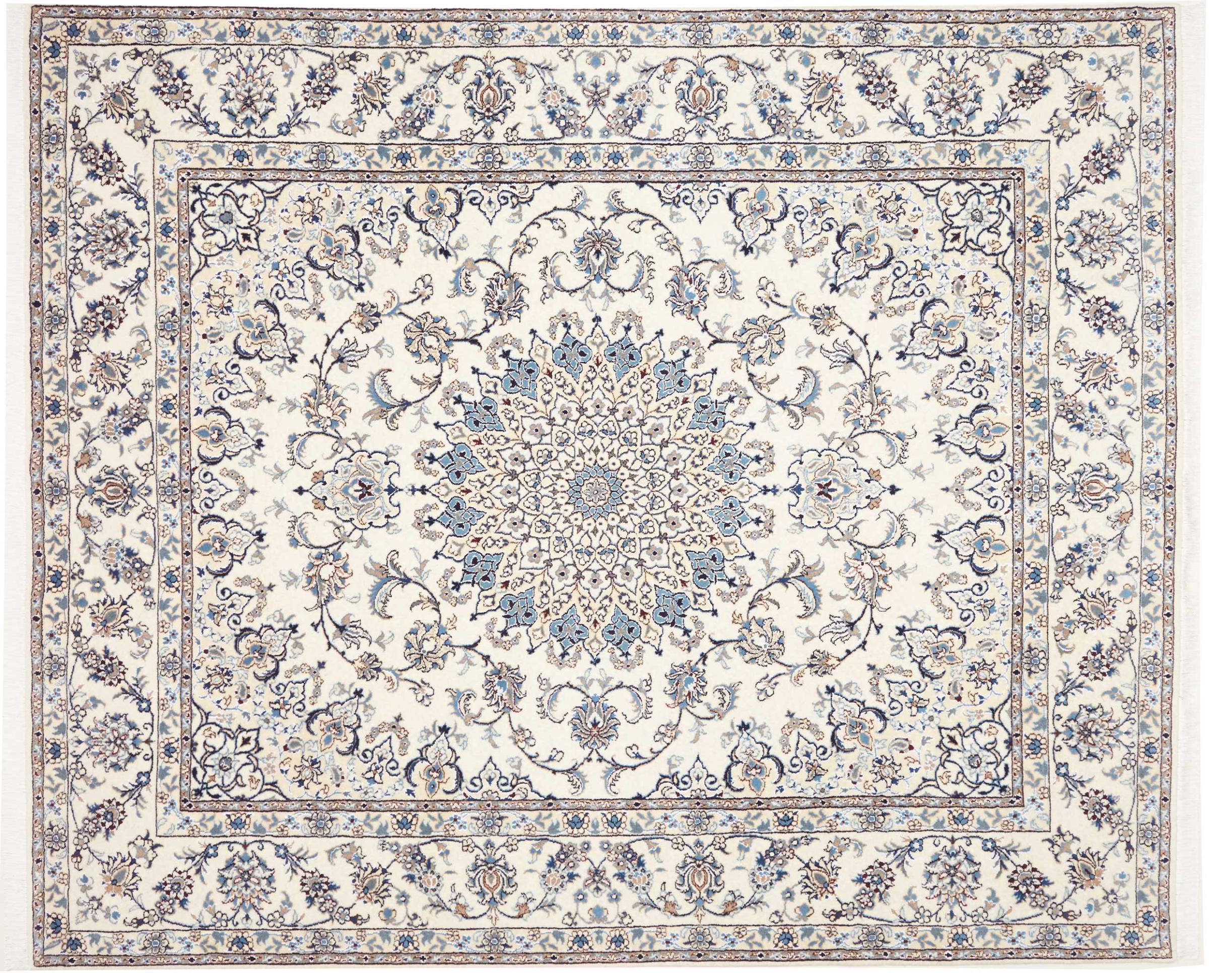 Tæppe-nr.: 313057002594419 Størrelse: 297x247 cm Tykkelse: ca. 12 mm Knuder: 128 000 - 160 000 / m² Forarbejdelse: Knyttet i hånden Luv: Uld med silke Kæde: Bomuld Oprindelse: Persien / Iran Alder: Ny Vægt: ca. 29 kg Antal på lager: Unik - Kun 1 tilbage på lager
