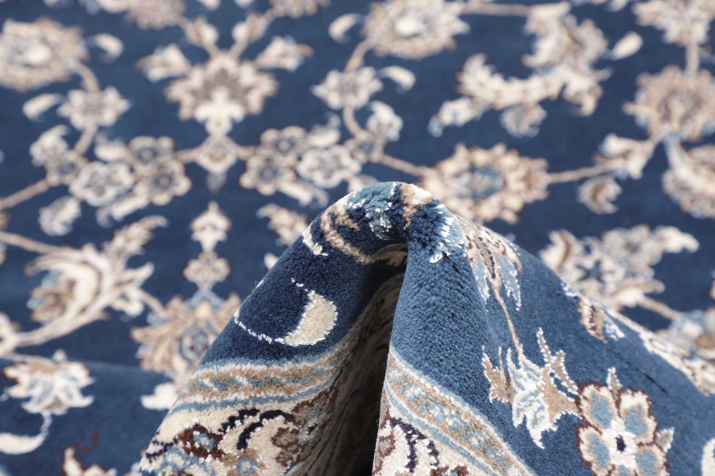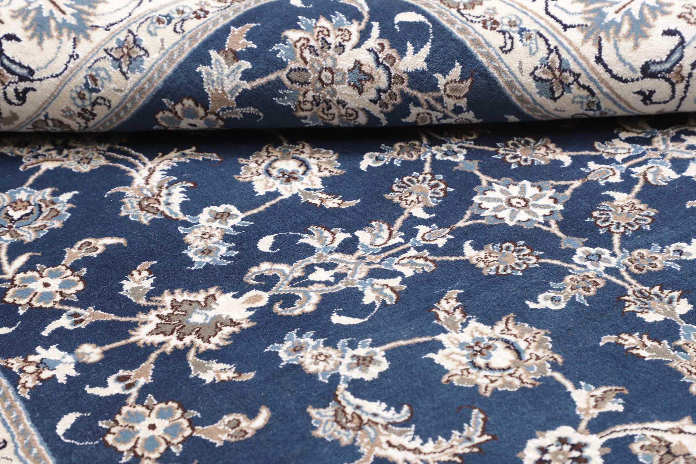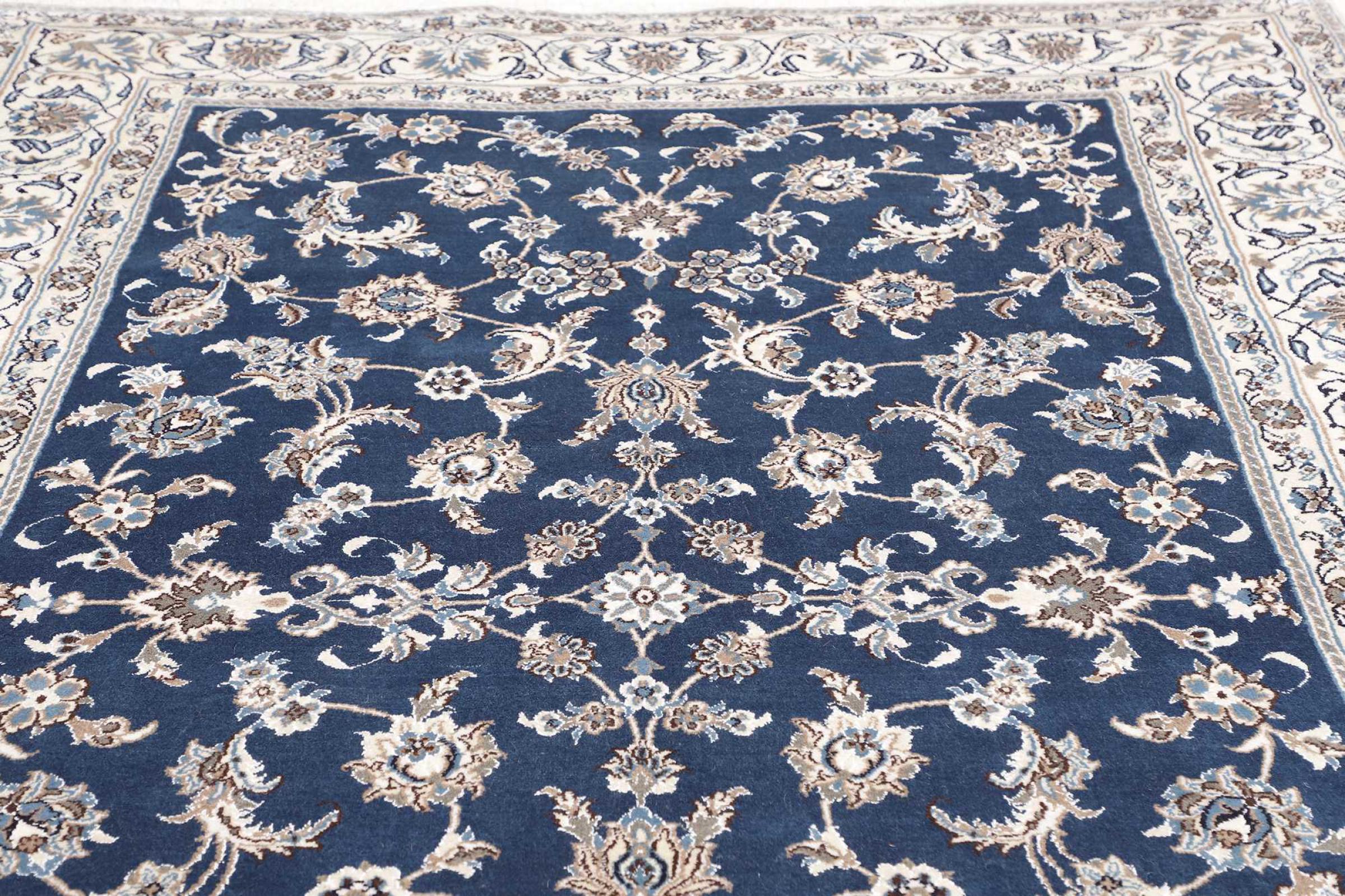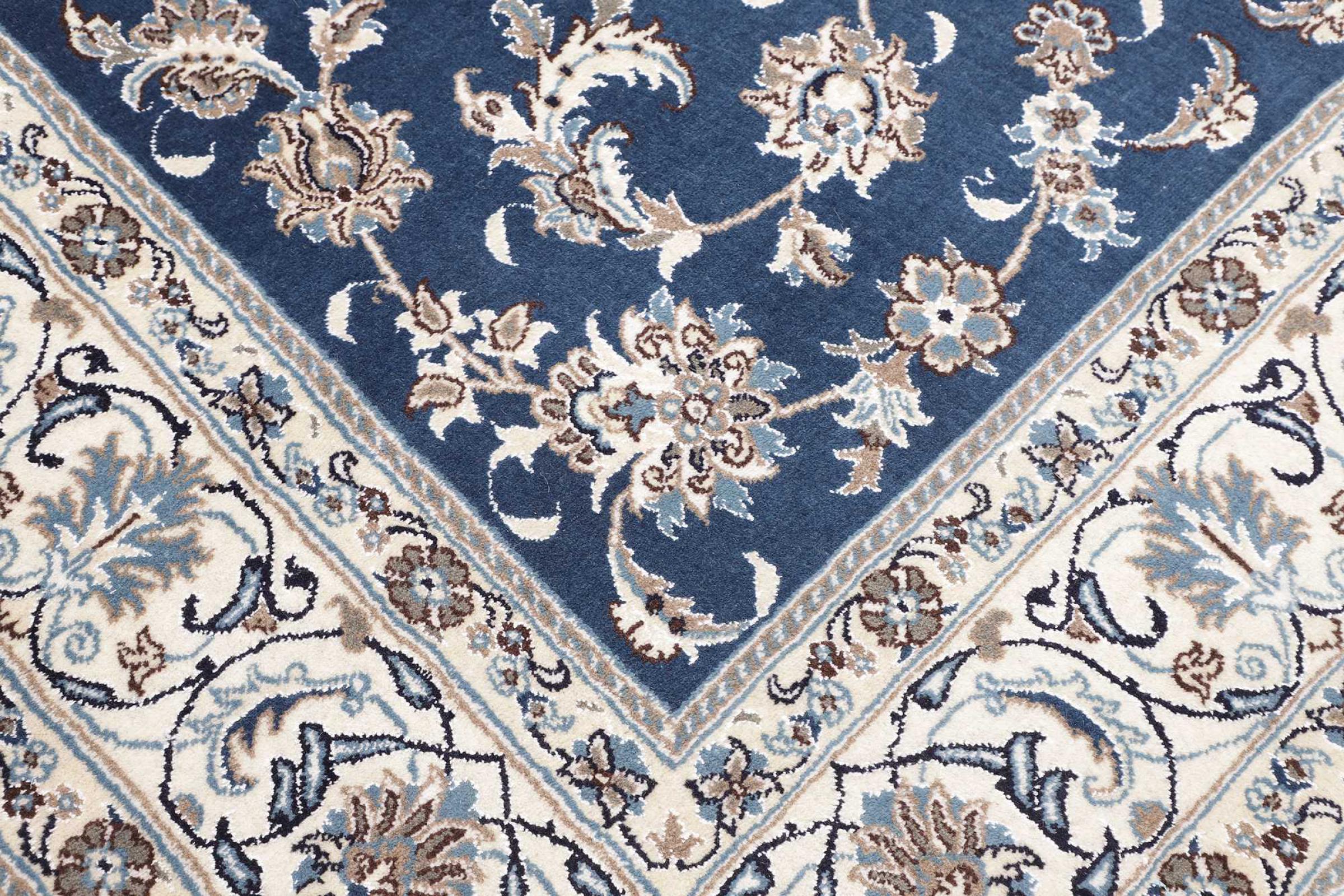 Dette Nain tæppe er vurderet til 12La. Det ser elegant og ædelt ud i sit typiske Nain-farveskema. Dette persiske tæppe blev håndknyttet af højkvalitets uld og natursilke i byen Nain, som ligger i den vestlige udkant af Dasht-e-Kavir-ørkenen. Med 12La er den ikke så fint og detaljeret udsmykket som en Nain 9La eller 6La.