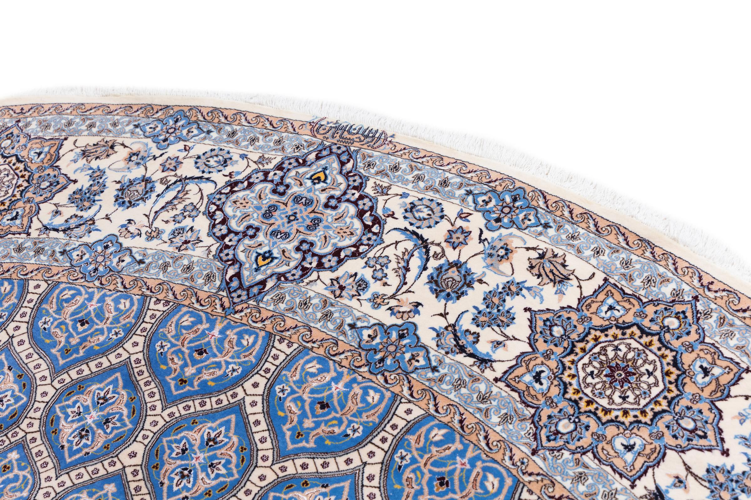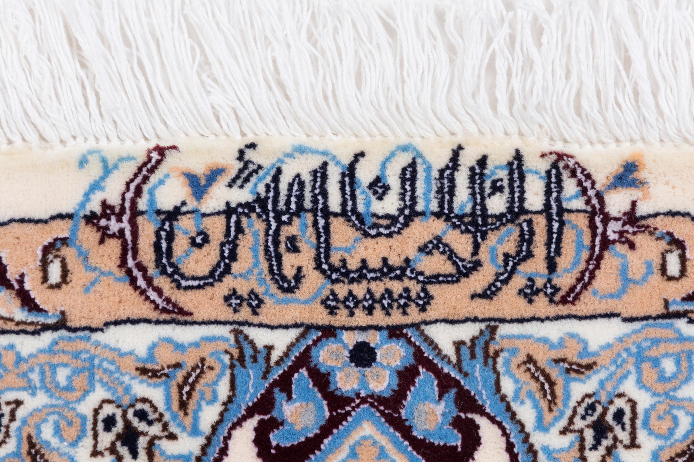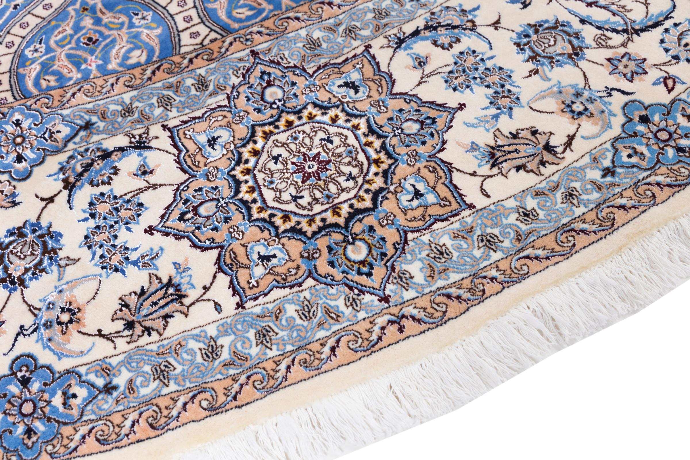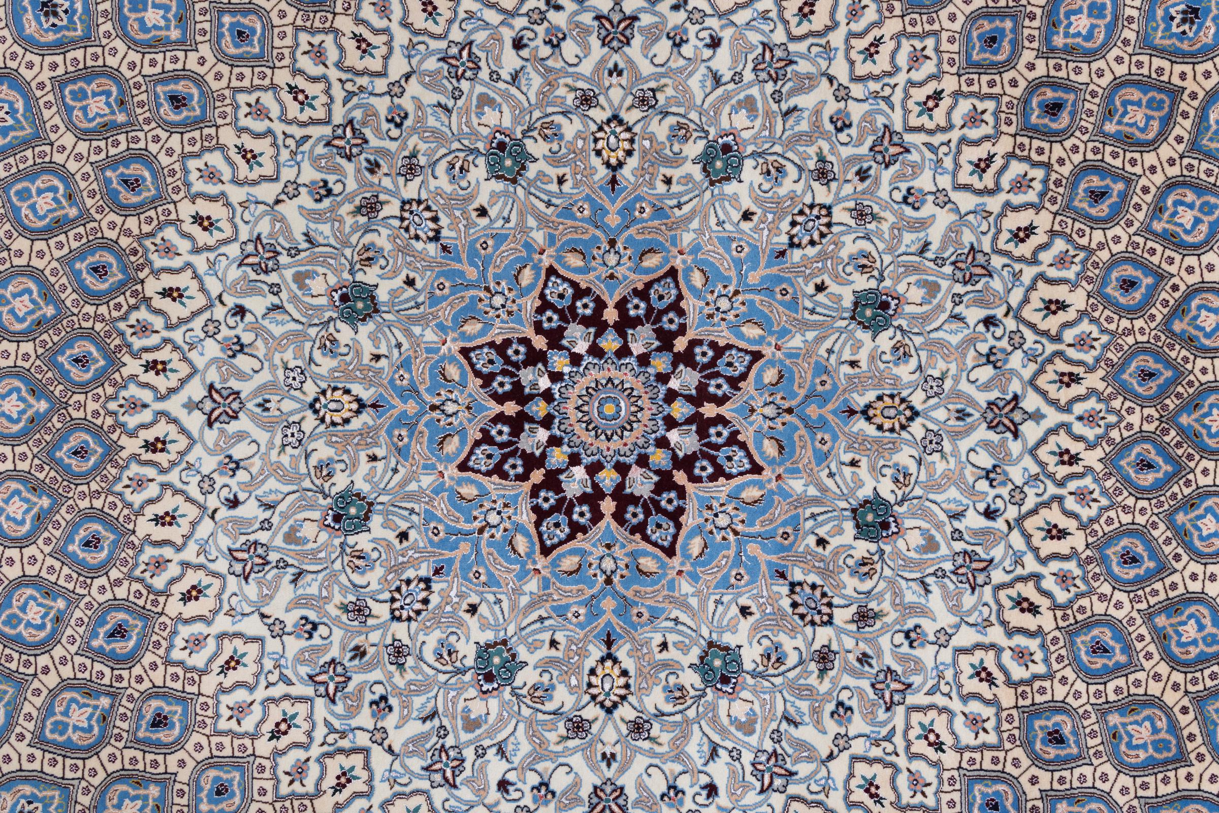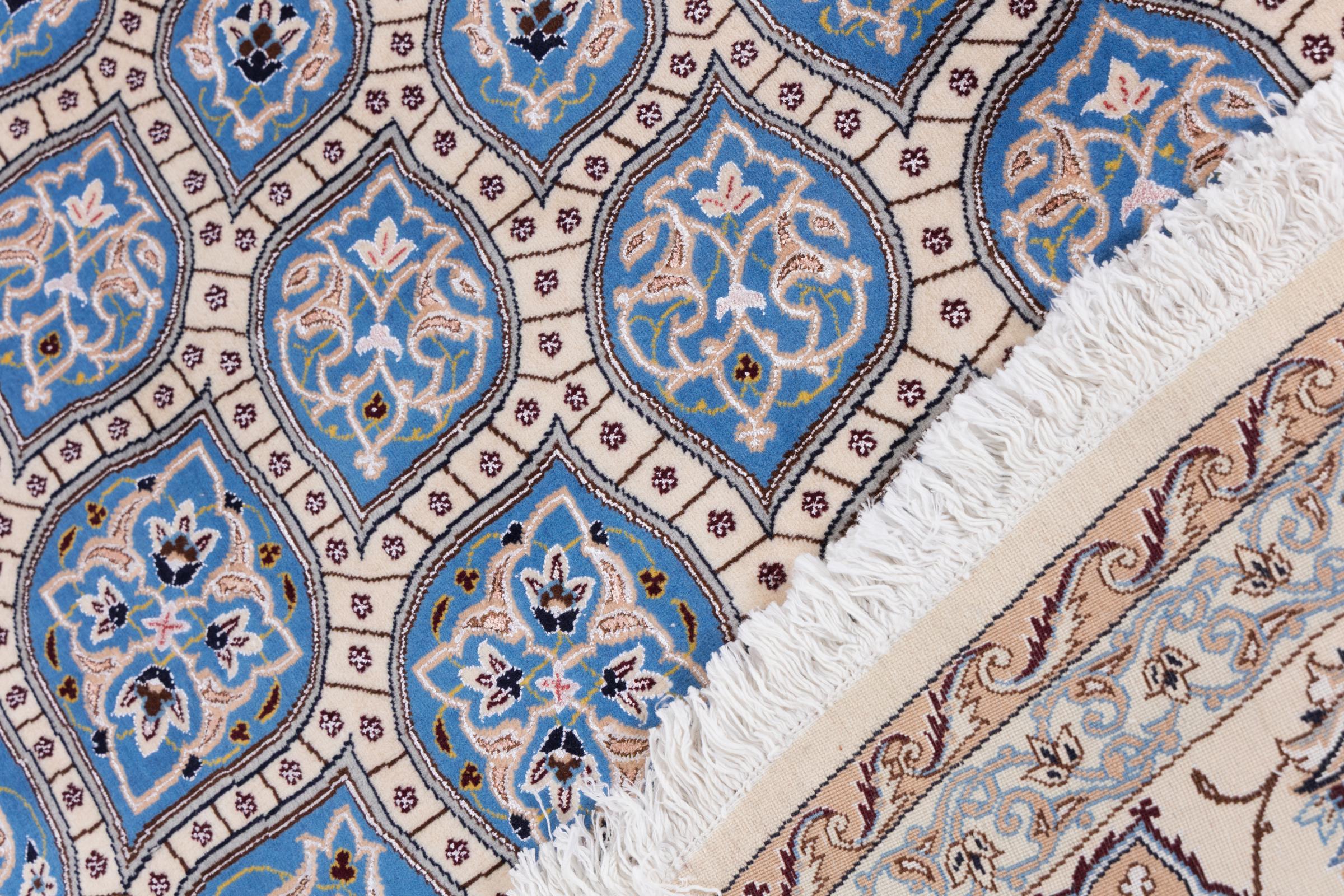 Dette Nain-tæppe kombinerer kvalitet, tradition og et umiskendeligt design. Den blev håndknyttet i ørkenbyen af ​​samme navn, Nain, af højkvalitets korkuld og natursilke. Elskere af værdifulde tæpper fra Iran vil kunne lide dette persiske tæppe. Med Nain-tæpper i 6La og 4La-klassificeringen har du et rigtigt kunstværk med et utroligt detaljeringsniveau, som du bogstaveligt talt kan fare vild. Nain 4La-tæpper er svære at finde i dag, fordi de er ekstremt komplekse at producere.