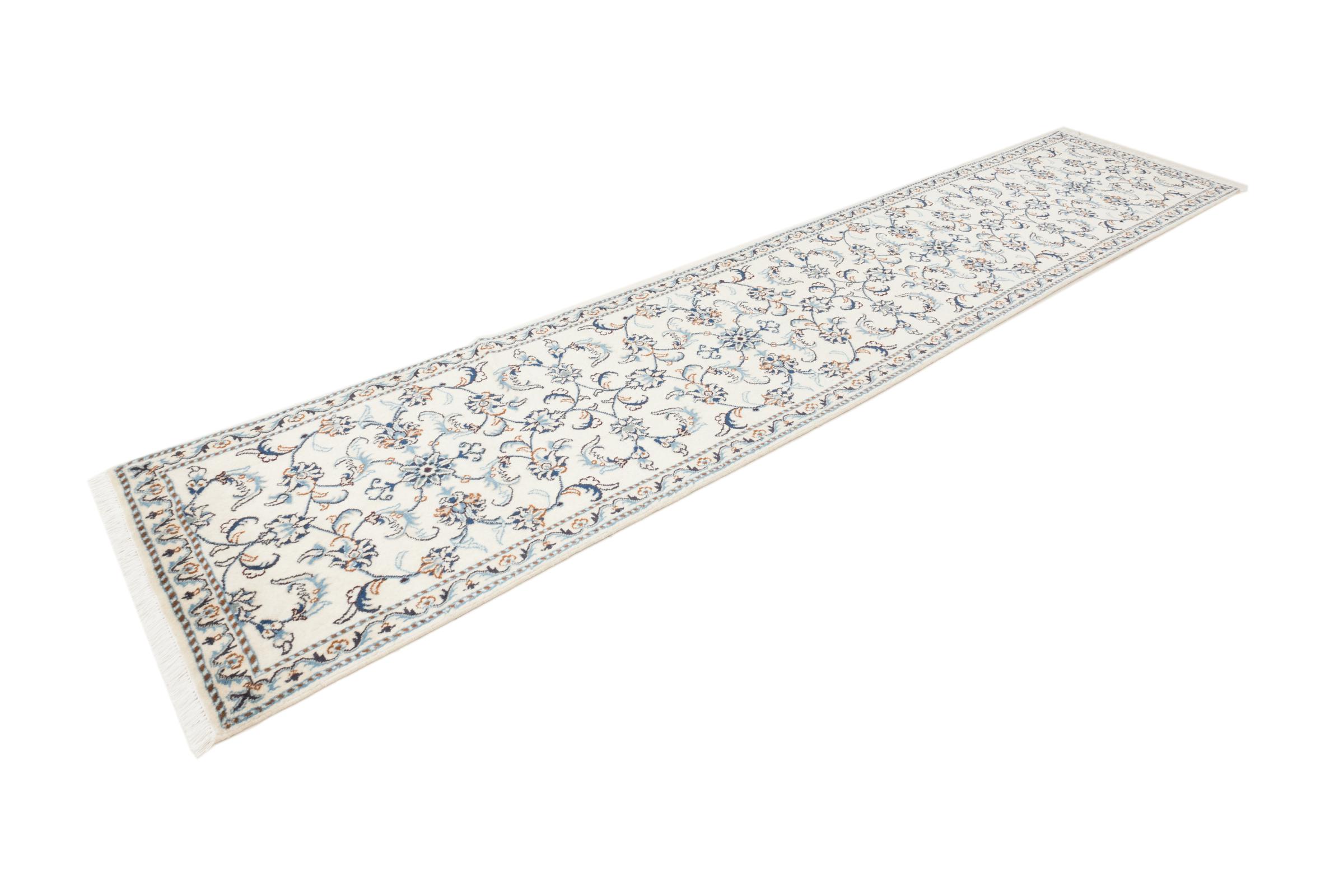 Tæppe-nr.: 2592690020516 Størrelse: 380x80 cm Tykkelse: ca. 12 mm Knuder: 320 000 - 360 000 / m² Forarbejdelse: Knyttet i hånden Luv: Uld med silke Kæde: Bomuld Oprindelse: Persien / Iran Alder: Ny Vægt: ca. 11 kg Antal på lager: Unik - Kun 1 tilbage på lager