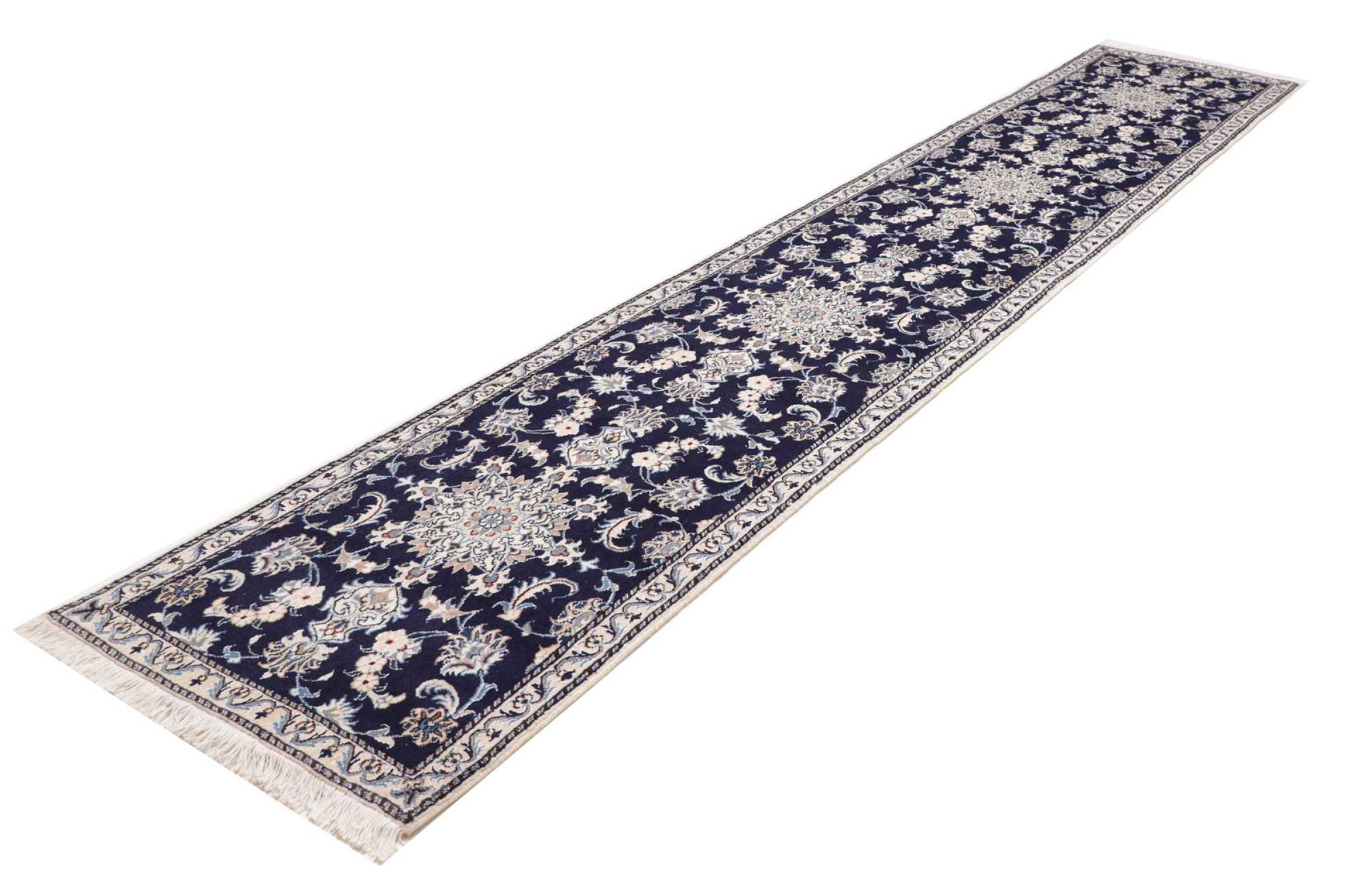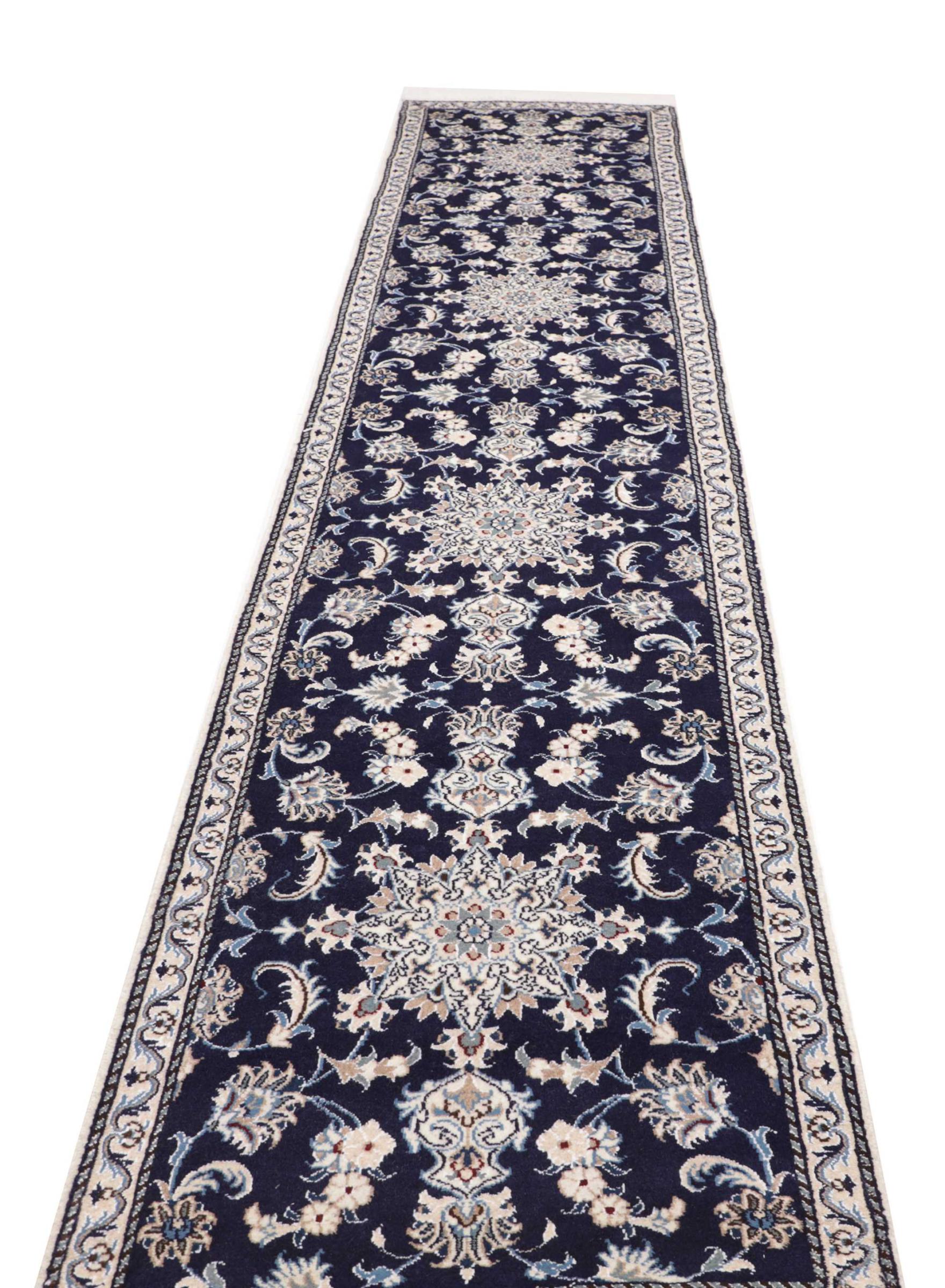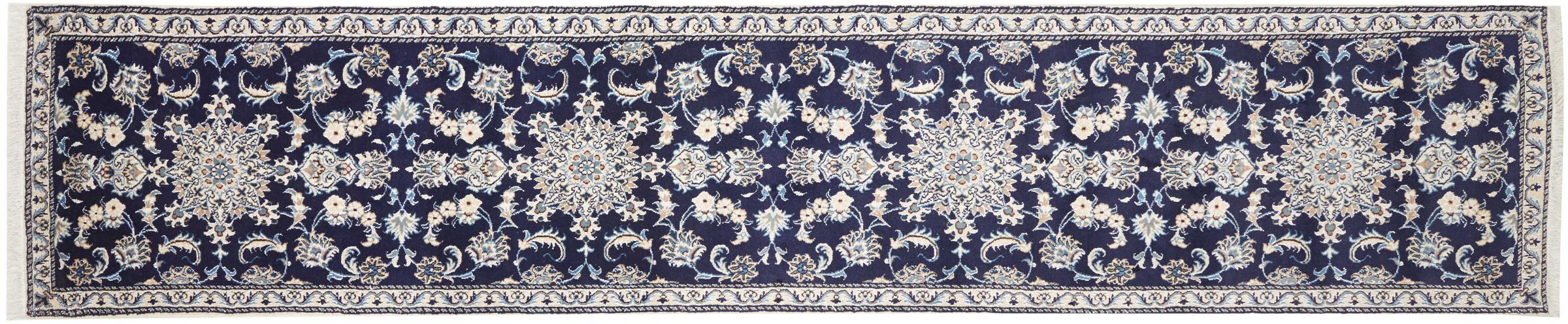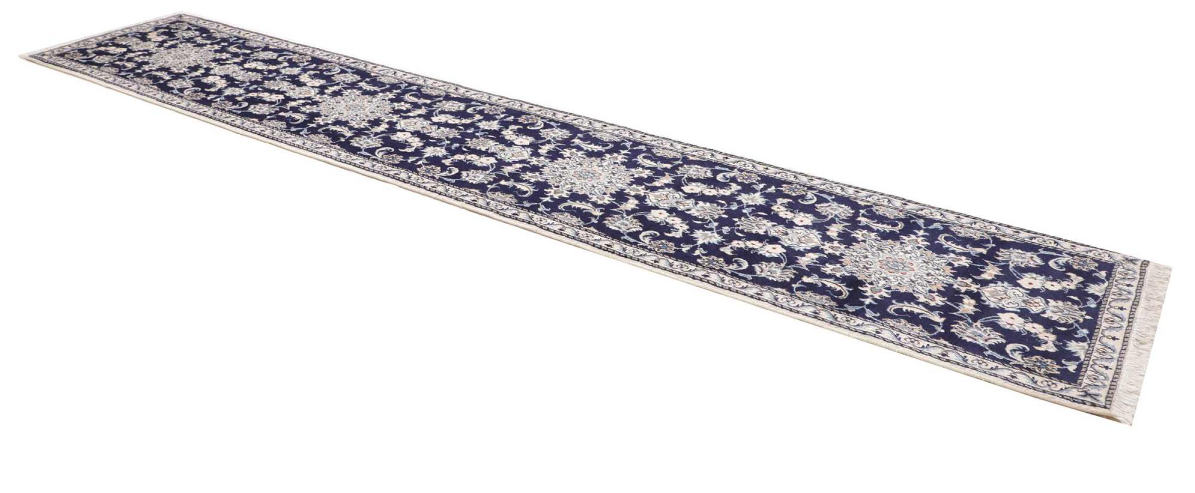 Tæppe-nr.: 284621006750351 Størrelse: 384x74 cm Tykkelse: ca. 12 mm Knuder: 200 000 - 250 000 / m² Forarbejdelse: Knyttet i hånden Luv: Håndspunden uld Kæde: Bomuld Oprindelse: Persien / Iran Alder: Ny Vægt: ca. 10 kg Antal på lager: Unik - Kun 1 tilbage på lager