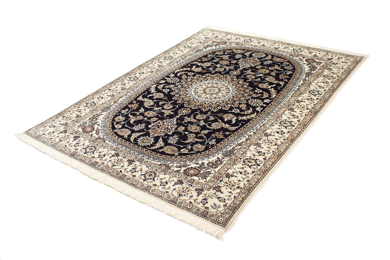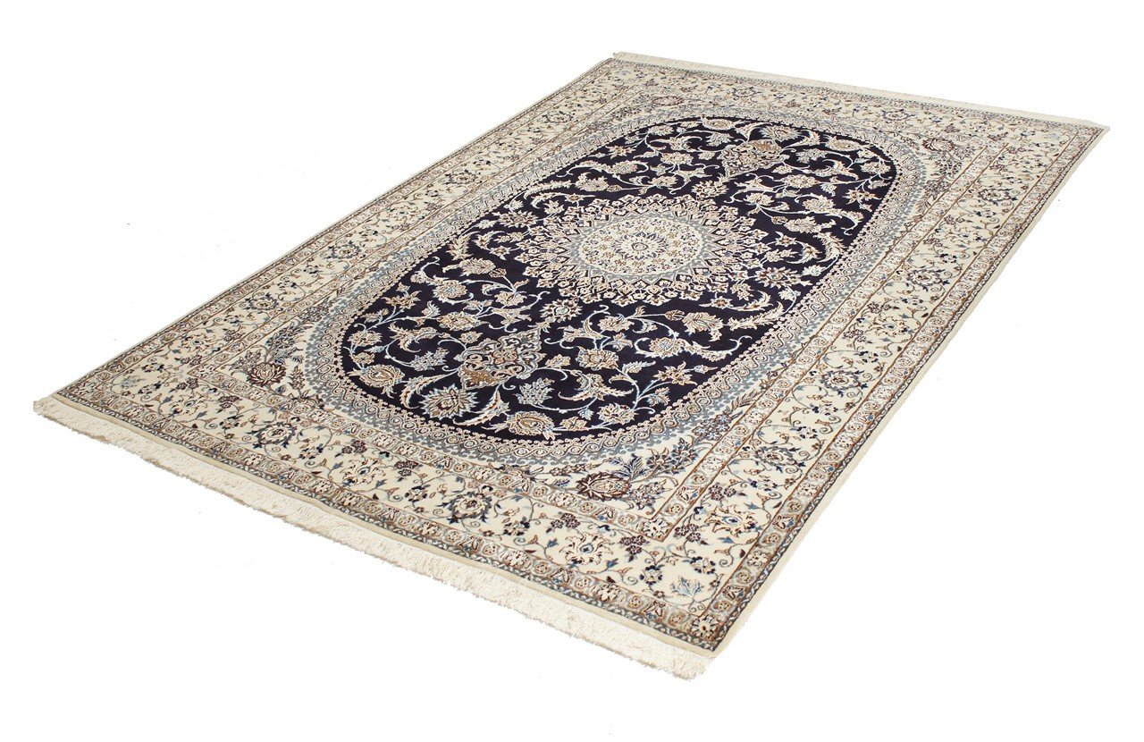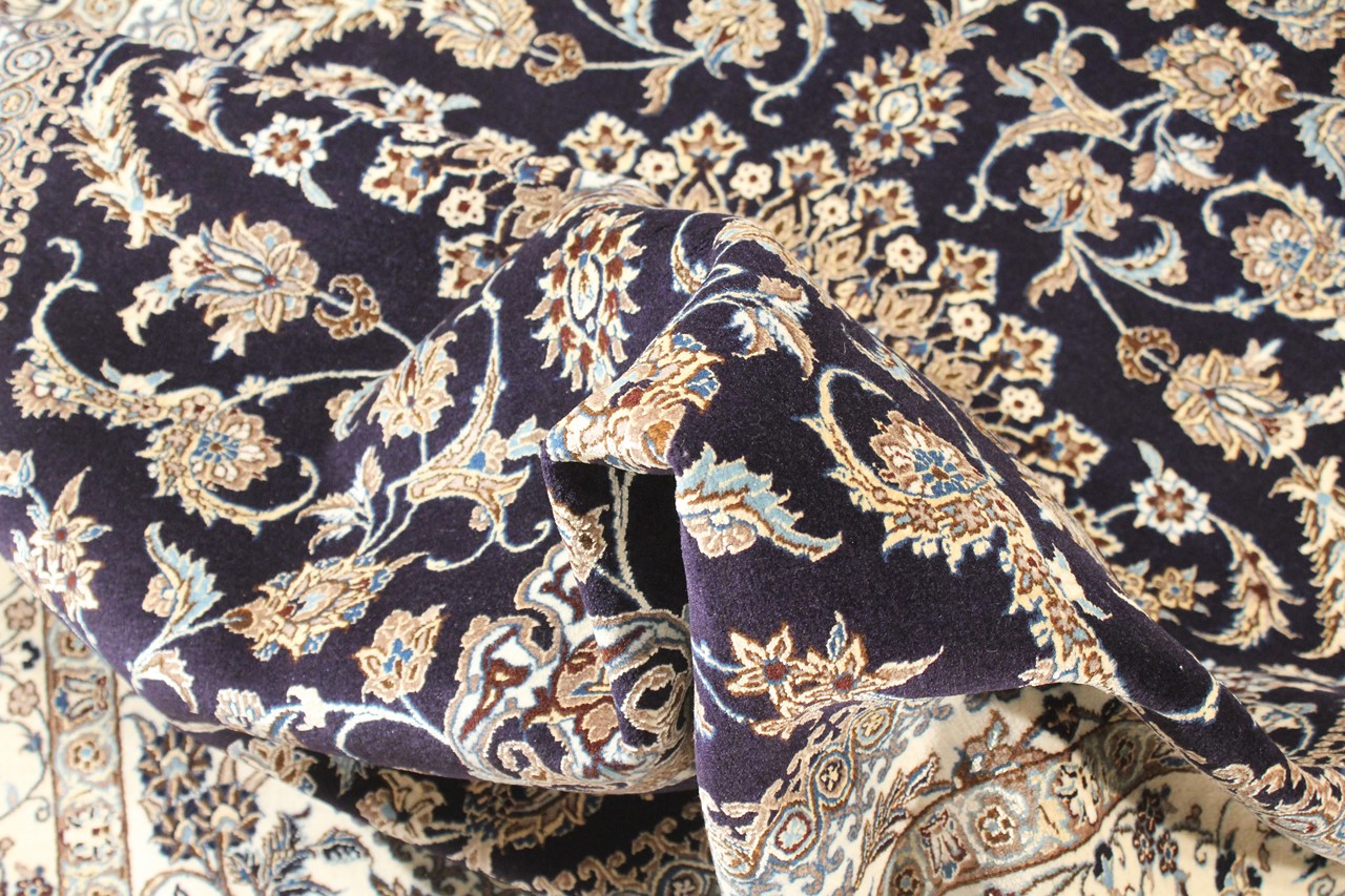 Dette Nain-tæppe kombinerer kvalitet, tradition og et umiskendeligt design. Den blev håndknyttet i ørkenbyen af ​​samme navn, Nain, af højkvalitets korkuld og natursilke. Elskere af værdifulde tæpper fra Iran vil kunne lide dette persiske tæppe. Med Nain-tæpper i 6La og 4La-klassificeringen har du et rigtigt kunstværk med et utroligt detaljeringsniveau, som du bogstaveligt talt kan fare vild. Nain 4La-tæpper er svære at finde i dag, fordi de er ekstremt komplekse at producere.