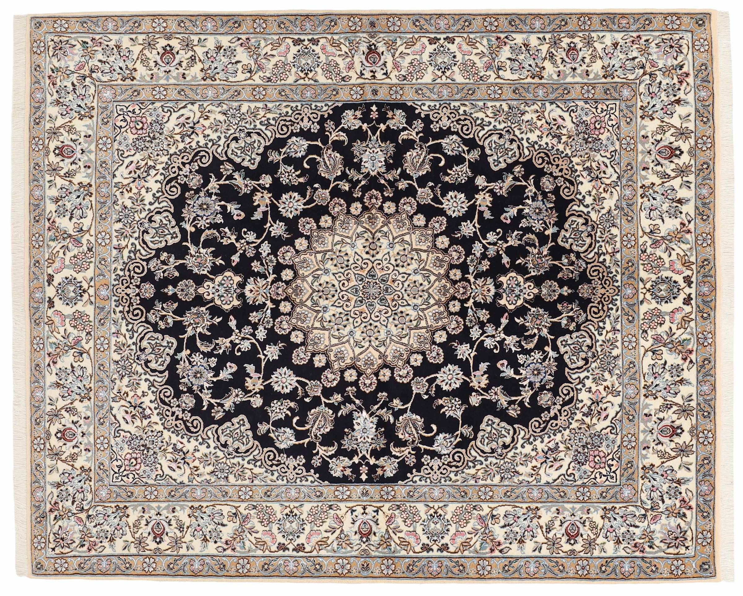 Tæppe-nr.: 311896009733779 Størrelse: 246x201 cm Tykkelse: ca. 10 mm Knuder: 360 000 - 400 000 / m² Forarbejdelse: Knyttet i hånden Luv: Uld med silke Kæde: Bomuld Oprindelse: Persien / Iran Alder: Ny Vægt: ca. 17 kg Antal på lager: Unik - Kun 1 tilbage på lager