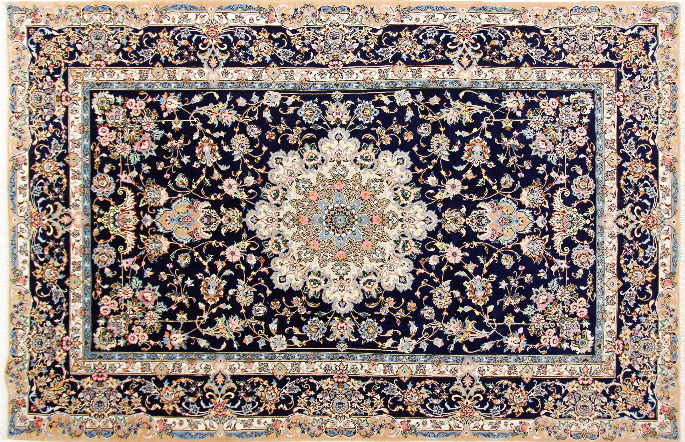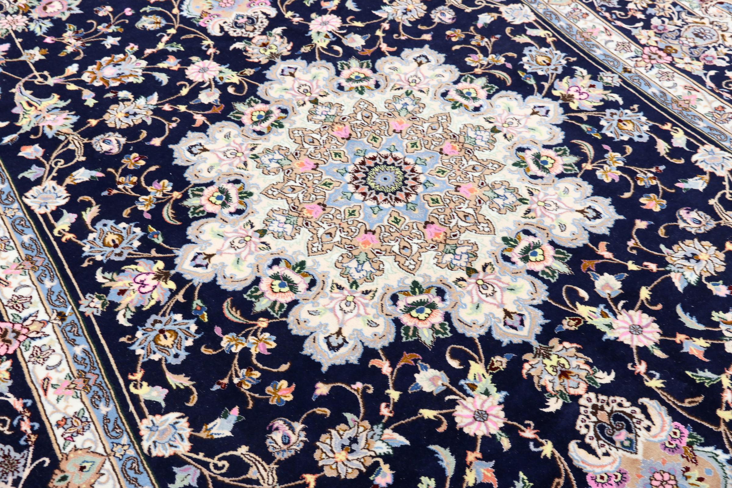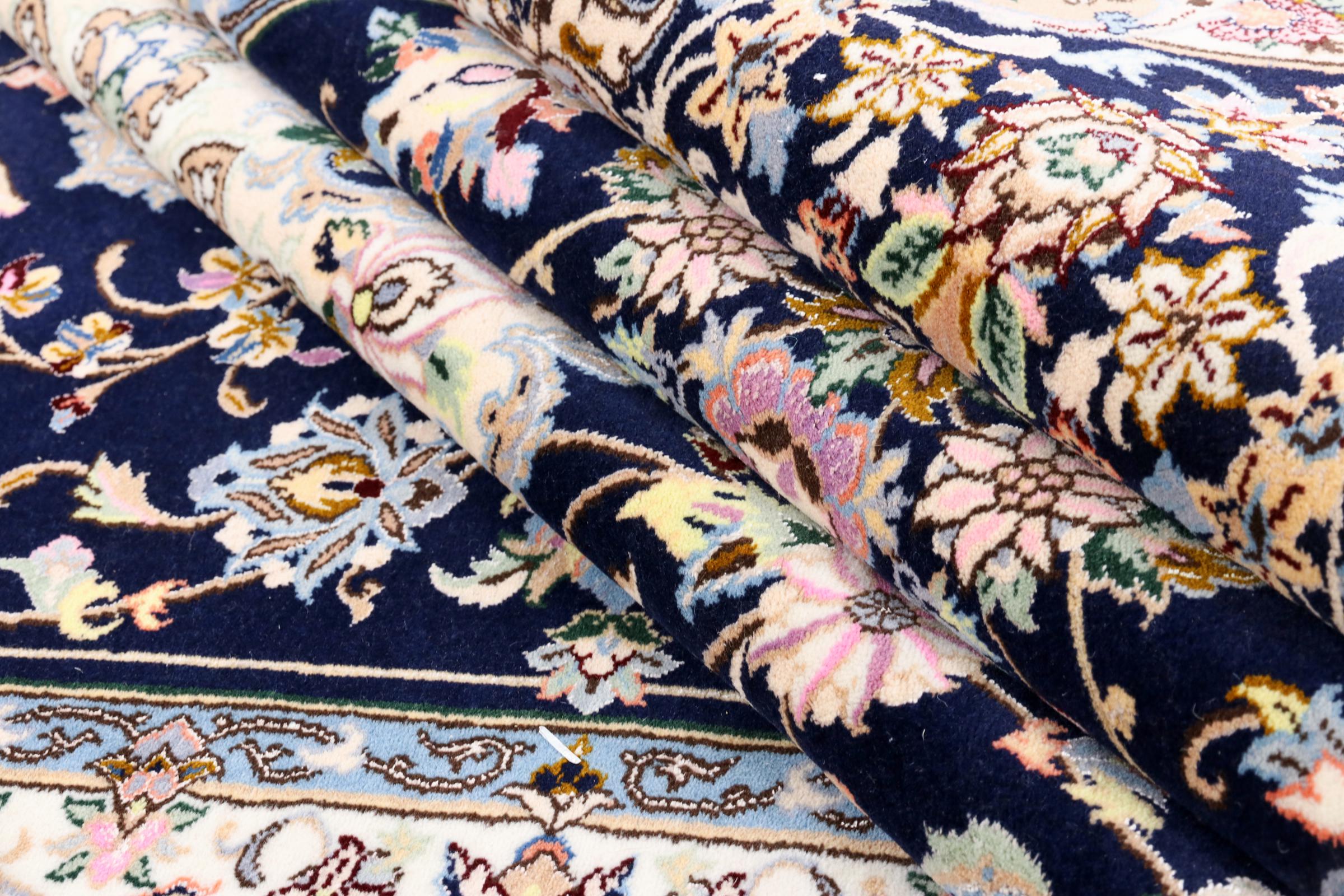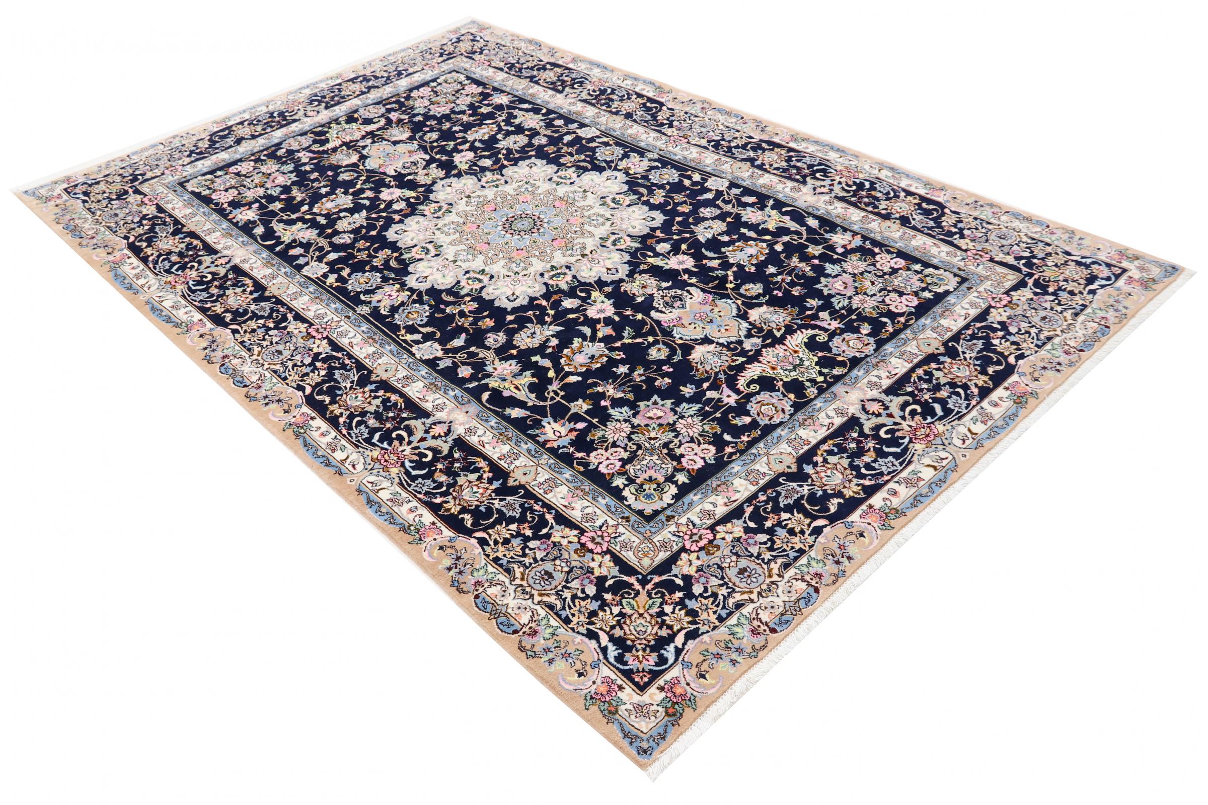 Tæppe-nr.: 1391680014441 Størrelse: 310x205 cm Tykkelse: ca. 10 mm Knuder: 360 000 - 400 000 / m² Forarbejdelse: Knyttet i hånden Luv: Uld med silke Kæde: Bomuld Oprindelse: Persien / Iran Alder: Ny Vægt: ca. 22 kg Antal på lager: Unik - Kun 1 tilbage på lager