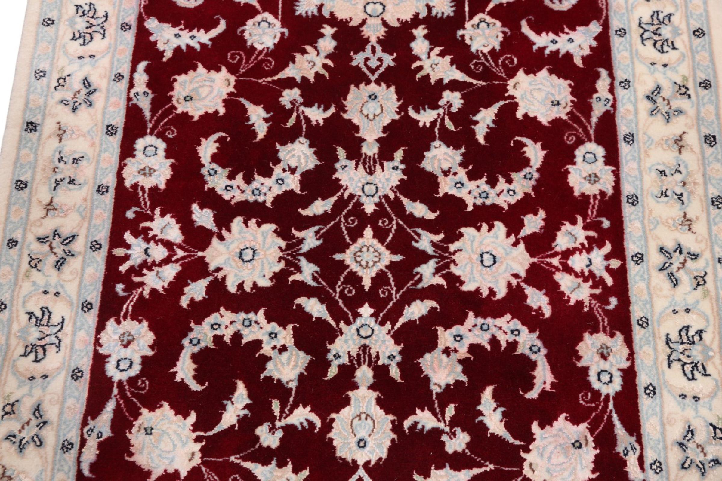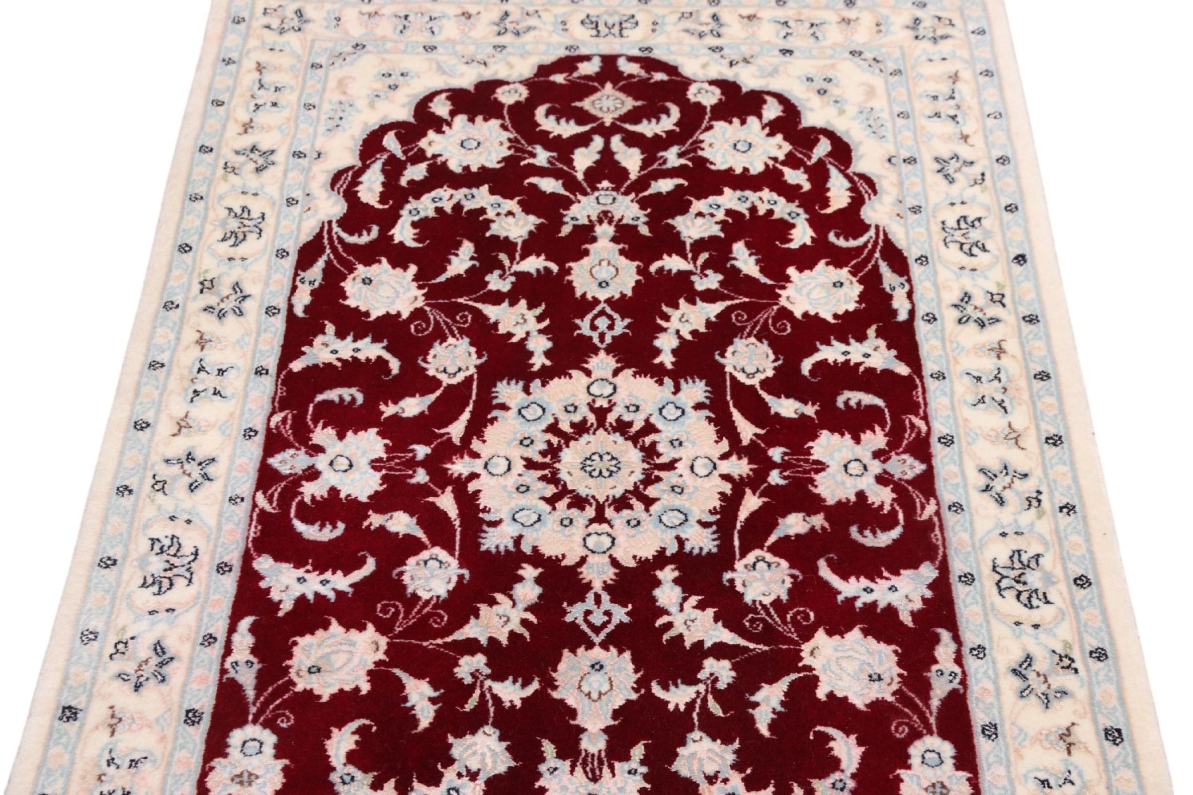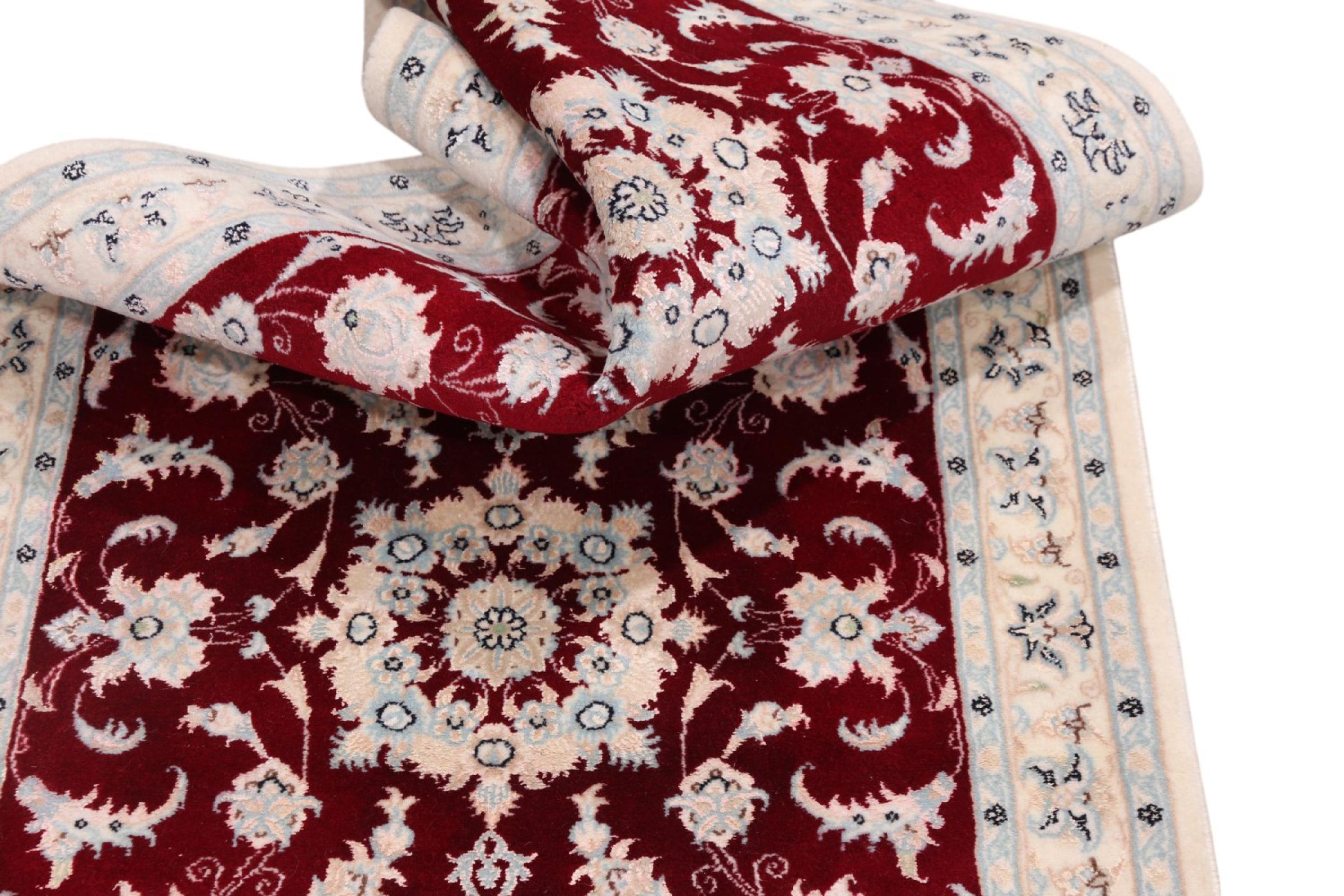 Dette Nain-tæppe er klassificeret 9La. Den fremragende kvalitet, det smukke orientalske design med sine buede mønstre glæder enhver køber. Dette persiske tæppe blev håndknyttet af højkvalitets uld og natursilke i byen Nain, som ligger i den vestlige udkant af Dasht-e-Kavir-ørkenen. 9La Nain er væsentligt finere end en 12La og viser allerede smukke detaljer.