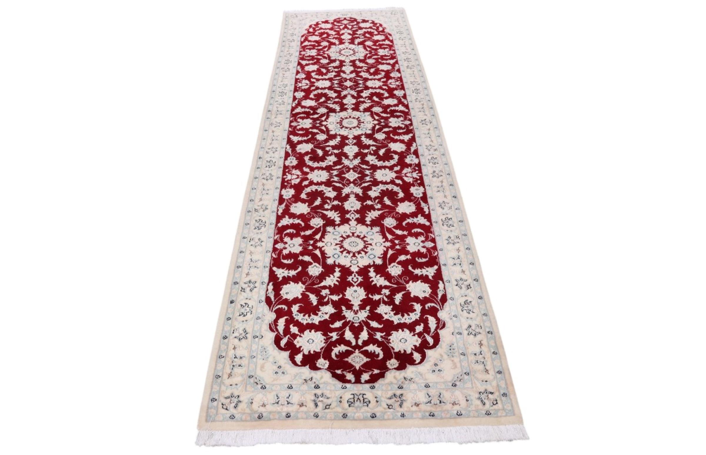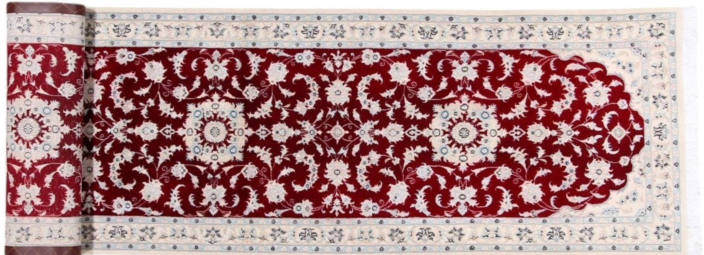 Tæppe-nr.: 30716006116841 Størrelse: 311x78 cm Tykkelse: ca. 8 mm Knuder: 450 000 - 500 000 / m² Forarbejdelse: Knyttet i hånden Luv: Uld med silke Kæde: Bomuld Oprindelse: Persien / Iran Alder: Ny Vægt: ca. 8 kg Antal på lager: Unik - Kun 1 tilbage på lager