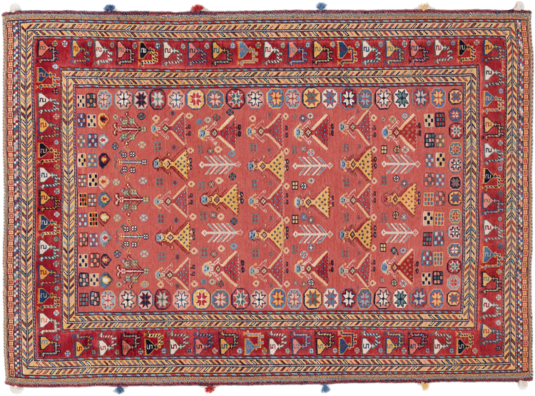 Dette tæppe kommer fra Iran (tidligere Persien) og er sandsynligvis det højeste ry blandt alle håndknyttede tæpper som persisk tæppe. Ingen region ser tilbage på en sammenlignelig lang tradition inden for vævning af tæpper end Iran. Sådan kommer de fineste og mest detaljerede tæpper her. Den persiske knudees robusthed, holdbarhed og kvalitet er uovertruffen i dag. Persiske tæpper er normalt opkaldt efter din oprindelsesregion. Så både et Nain, et Ghom og et Isfahan-tæppe kommer fra byen med samme navn i Iran.