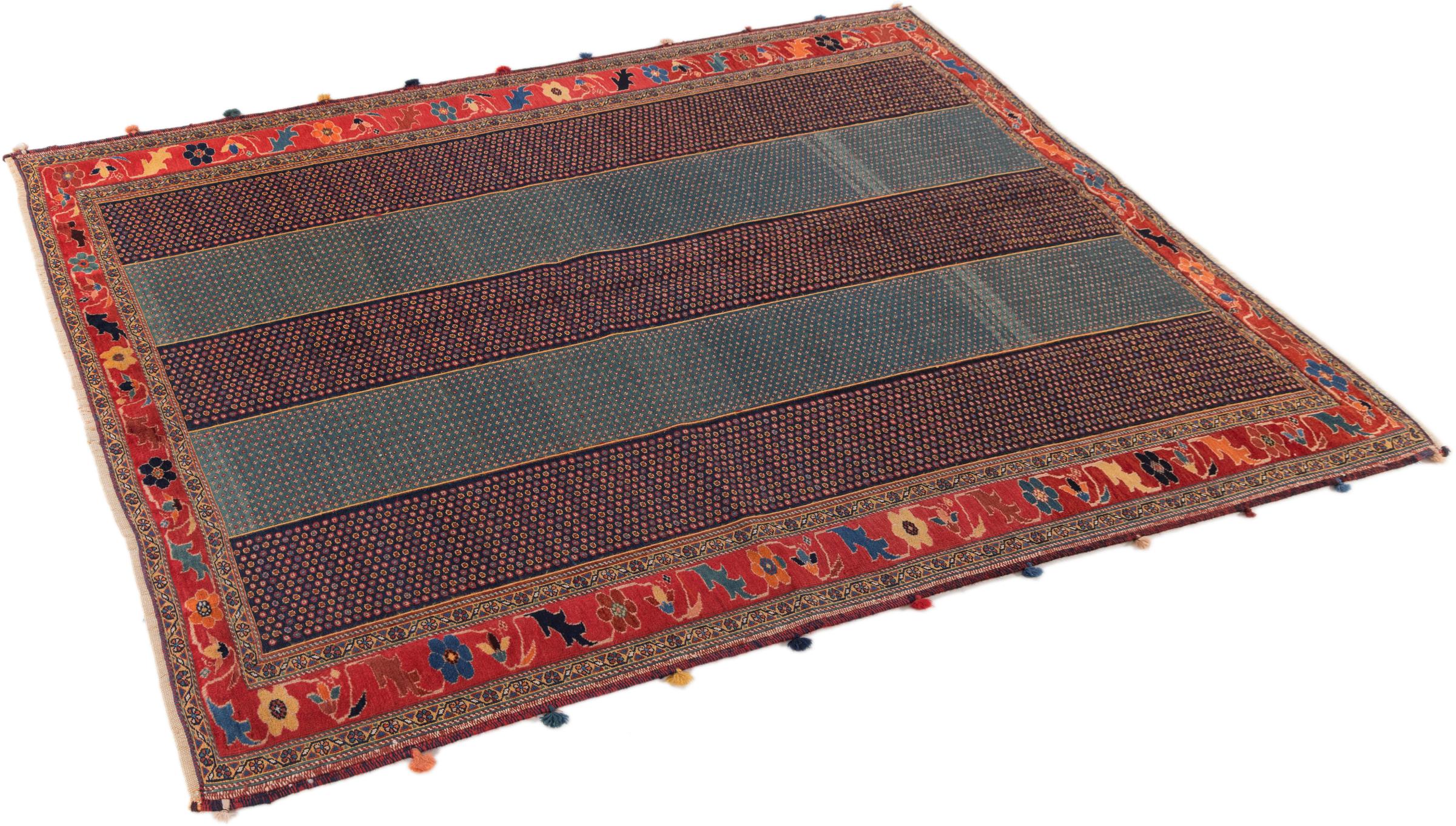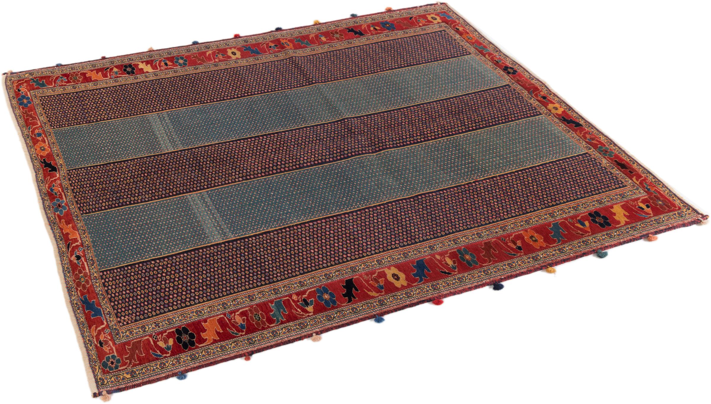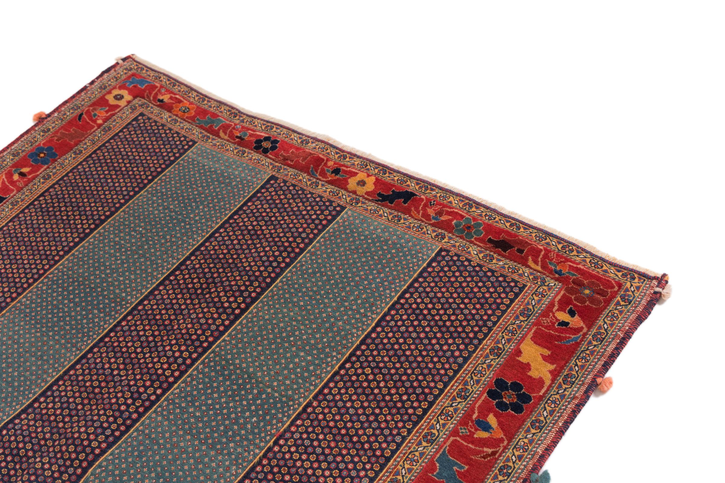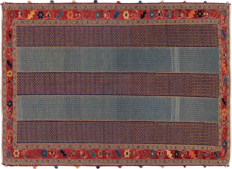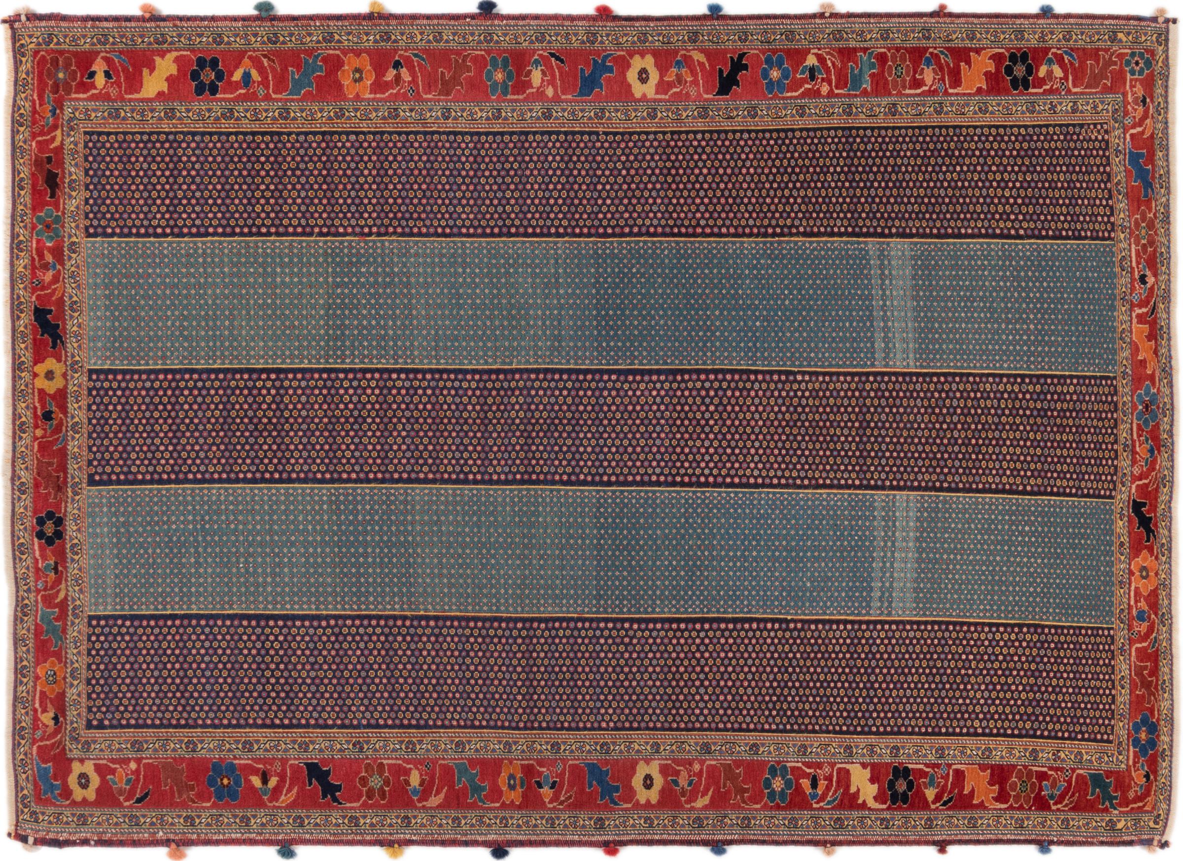 Denne håndknyttede og vævet Nimbaft er et glimrende eksempel på evnen og kombinationen af to meget forskellige fremstillingsteknikker af orientalske tæpper.