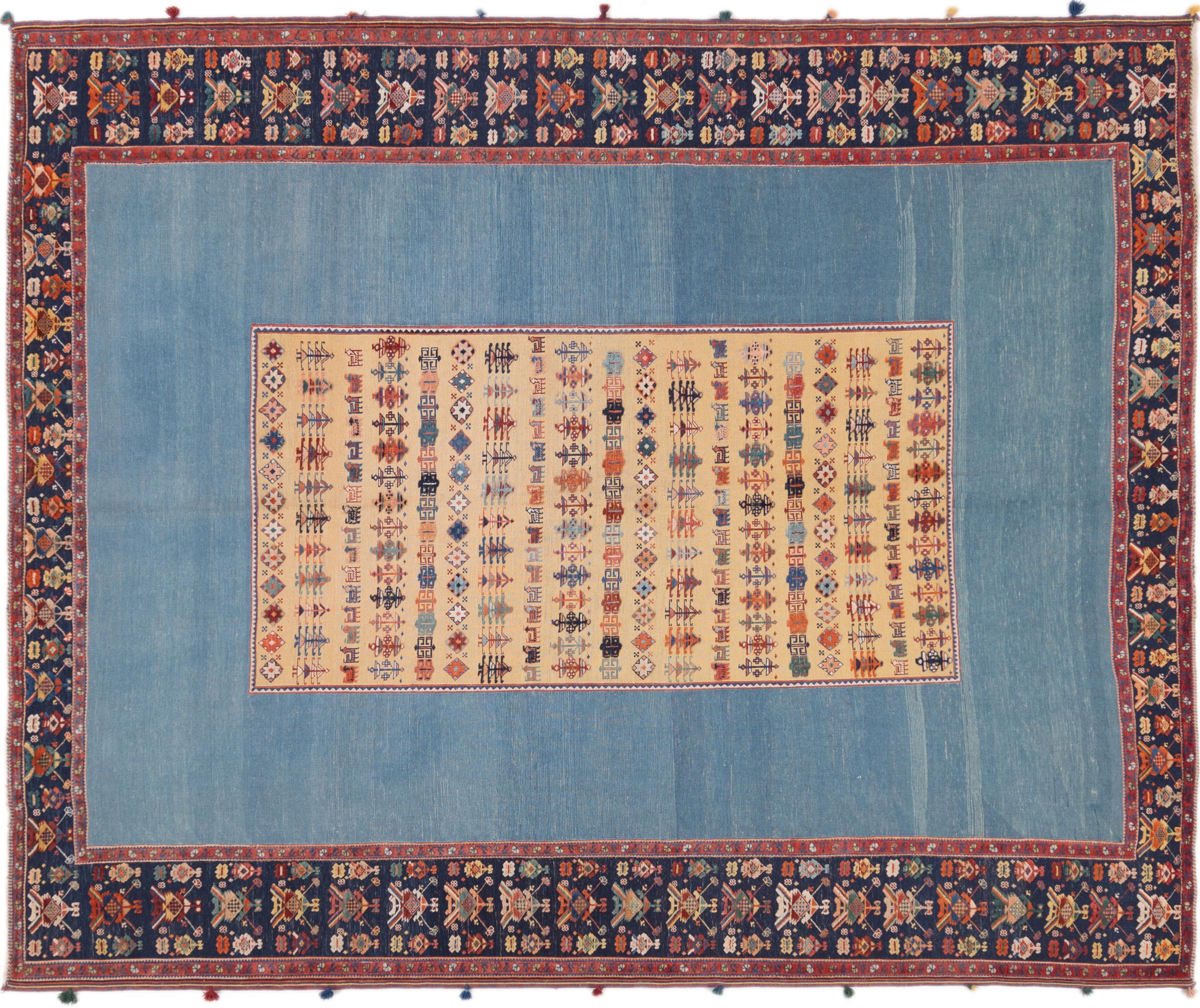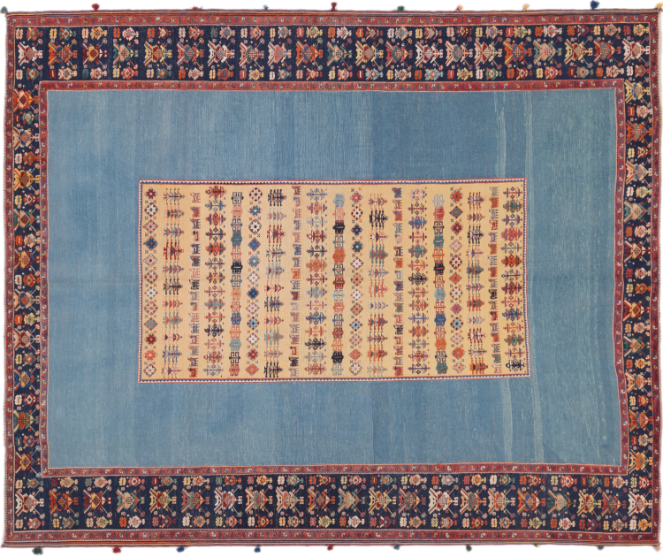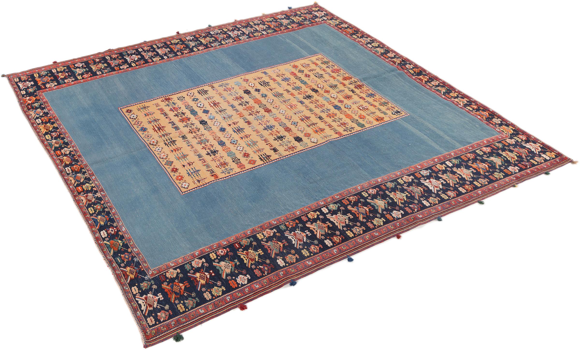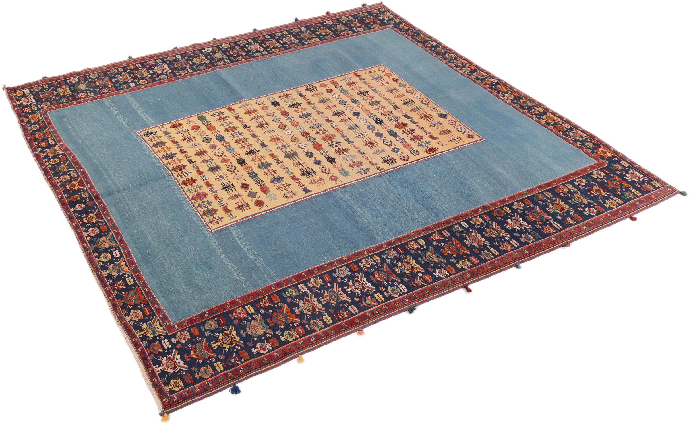 Denne håndknyttede og vævet Nimbaft er et glimrende eksempel på evnen og kombinationen af to meget forskellige fremstillingsteknikker af orientalske tæpper.