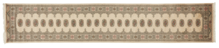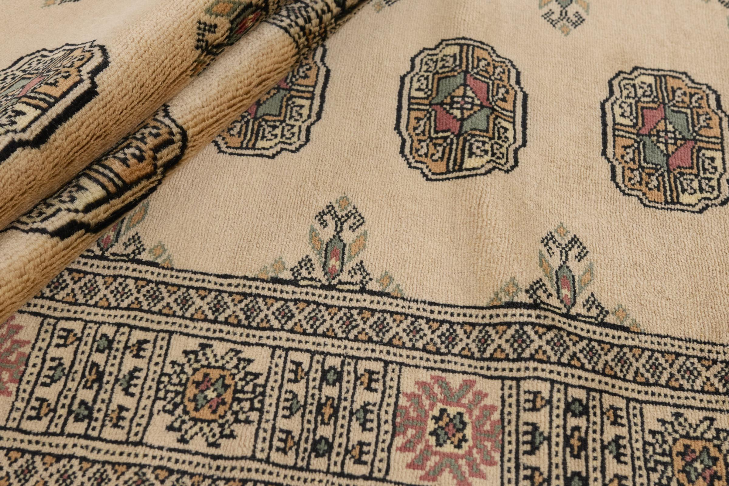 Dette håndknyttede tæppe fra Pakistan har meget typiske træk. De runde ornamenter gentages på gulvet og skaber den type tæppe. 2Ply og 3Ply er forskelle i tæppets knudetæthed. En 3-lags er generelt tættere vævet og derfor mere kompleks at fremstille og noget mere robust. Disse smukke tæpper er populære på grund af deres fascinerende farver og rolige design.