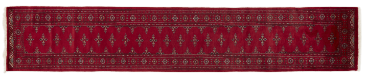 Tæppe-nr.: 31186500462670 Størrelse: 422x79 cm Tykkelse: ca. 8 mm Knuder: 270 000 - 300 000 / m² Forarbejdelse: Knyttet i hånden Luv: Håndspunden uld Kæde: Bomuld Oprindelse: Pakistan Alder: Ny Vægt: ca. 10 kg Antal på lager: Unik - Kun 1 tilbage på lager