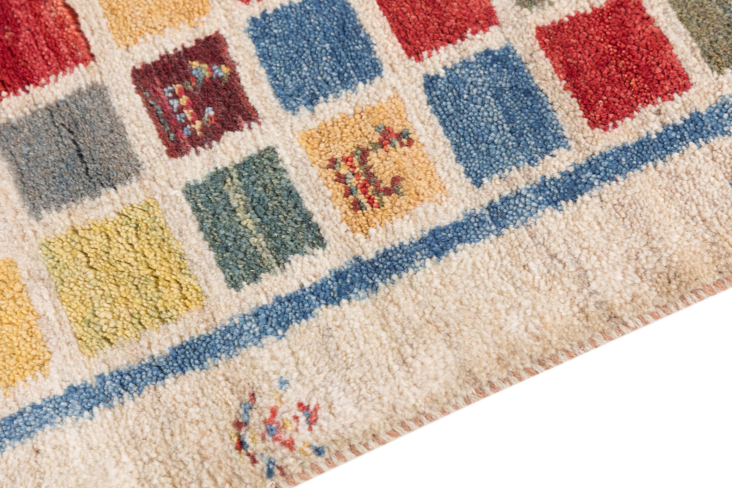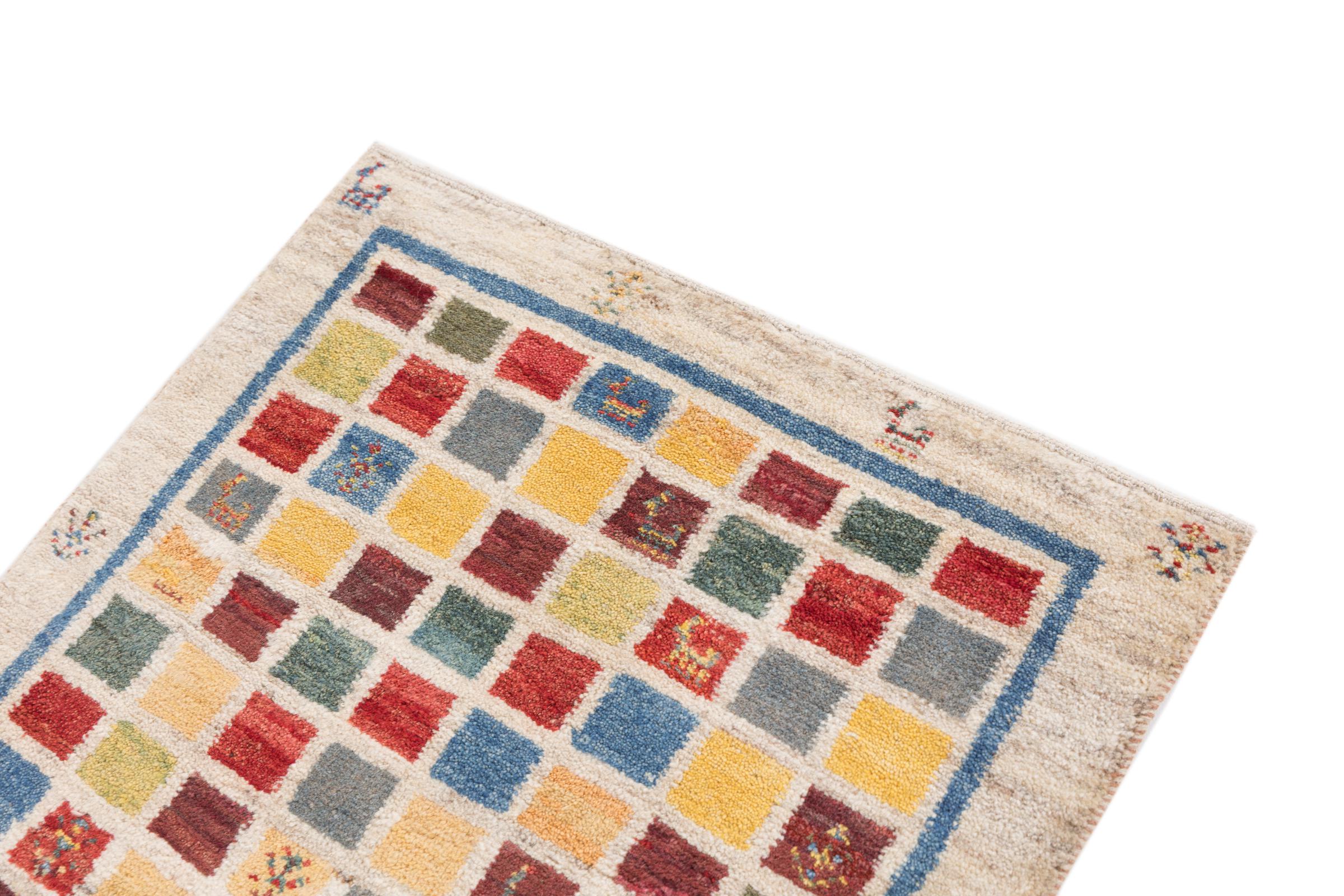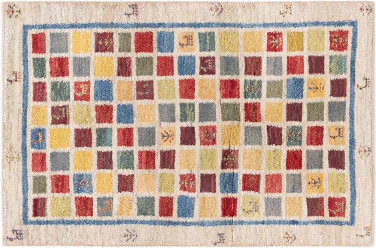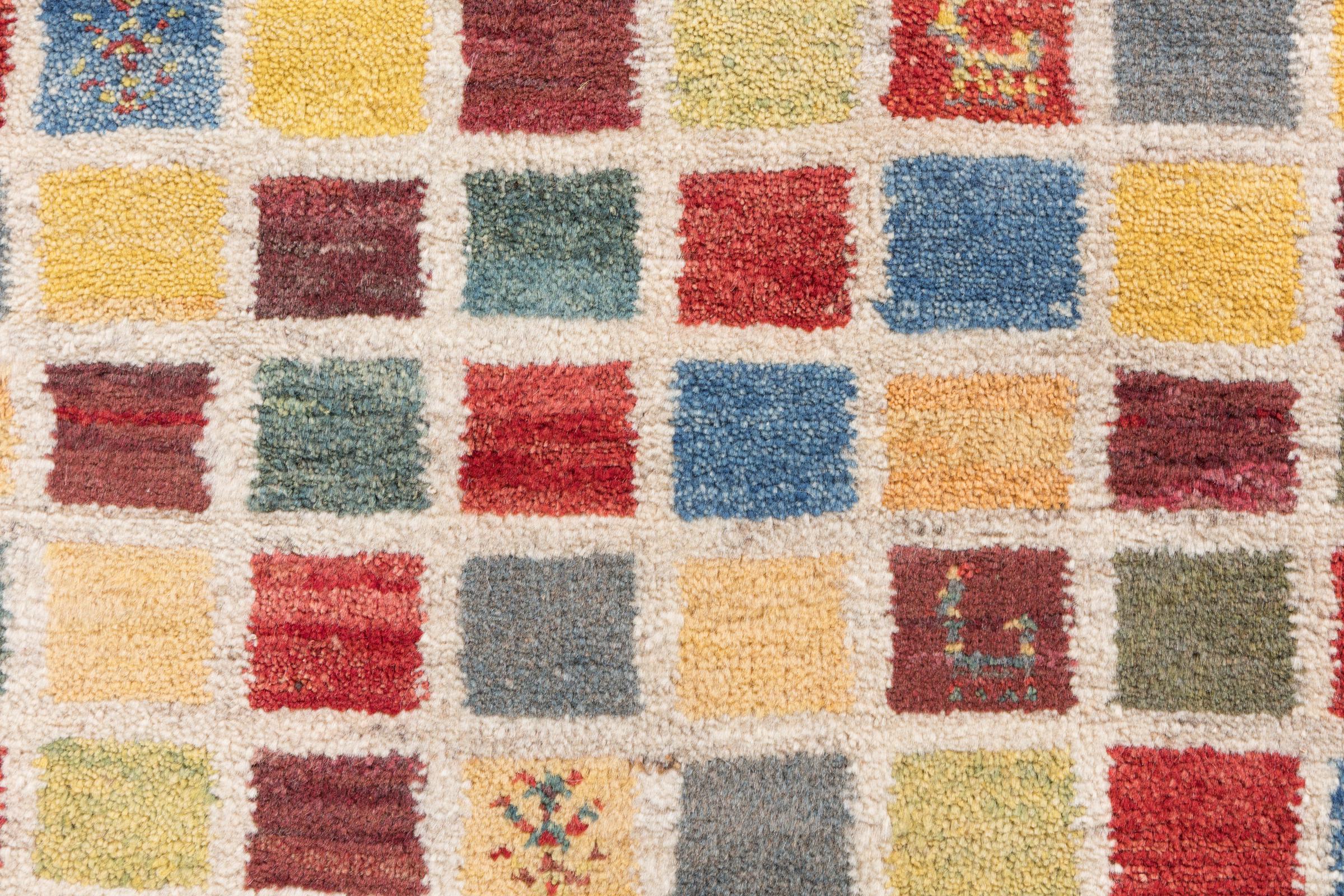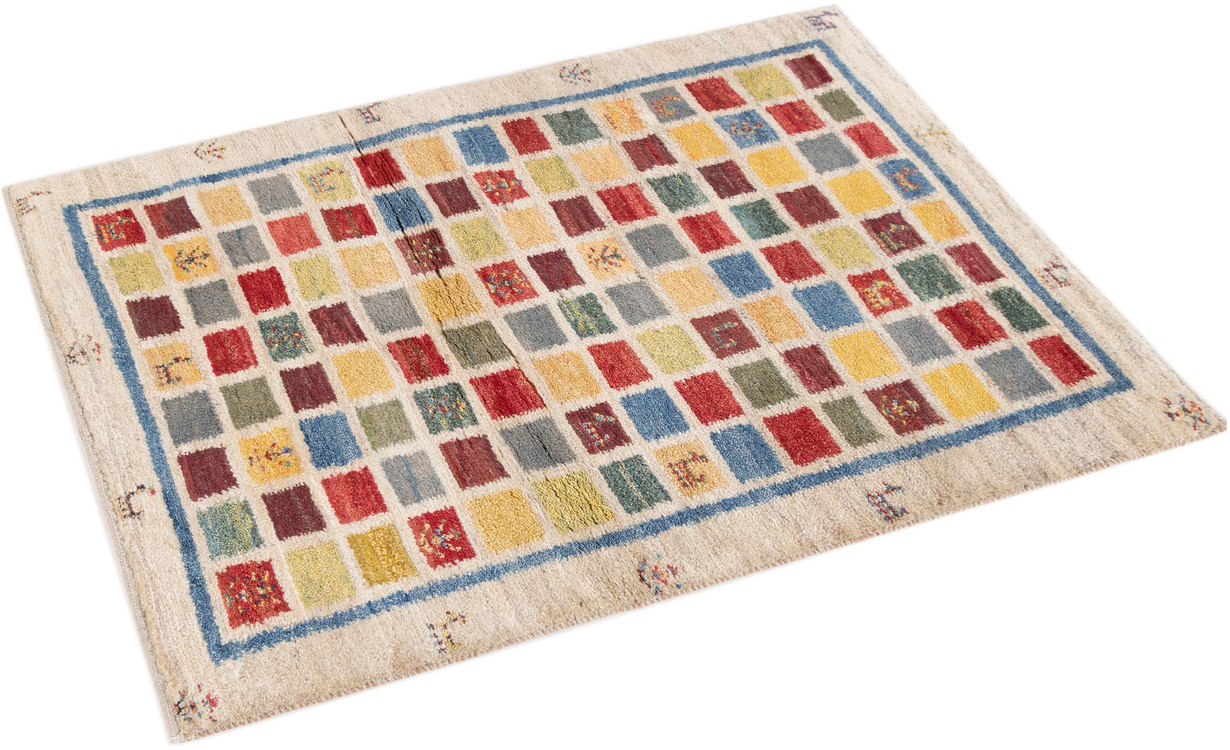 Denne håndknyttede persiske Gabbeh imponerer straks med sin høje kvalitet og meget robuste luv. Den blev håndknyttet af Ghashghai-nomader i Fars-provinsen i det sydlige Persien af ​​den bedste lokale fåreuld. Naturlige plantefarver bruges til at farve ulden. Dette gør den til en meget værdifuld tilføjelse til børneværelset. Denne persiske Gabbeh repræsenterer den højeste klasse af Gabbeh-tæpper.