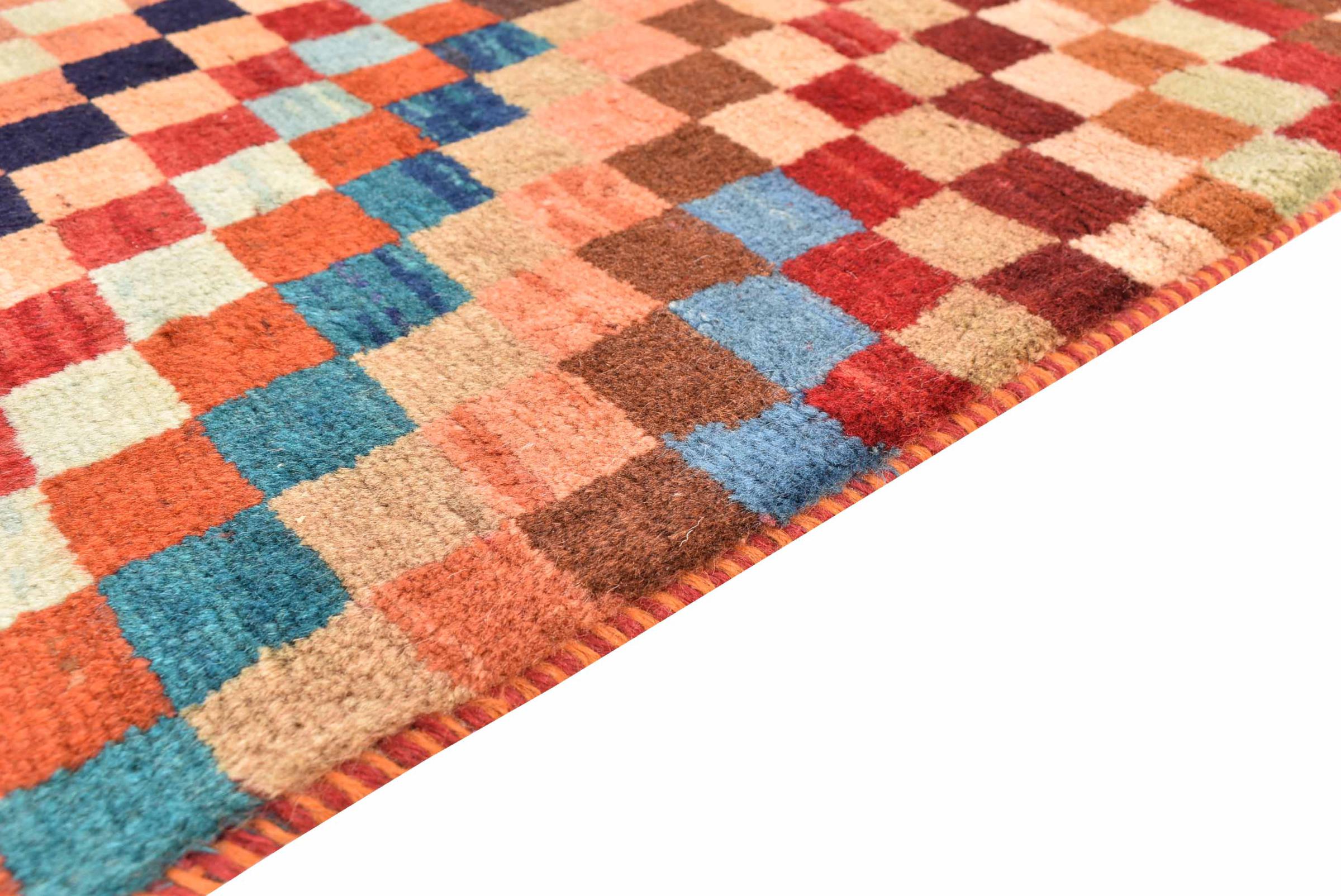 Denne håndknyttede persiske Gabbeh imponerer straks med sin høje kvalitet og meget robuste luv. Den blev håndknyttet af Ghashghai-nomader i Fars-provinsen i det sydlige Persien af den bedste lokale fåreuld. Naturlige plantefarver bruges til at farve ulden. Dette gør den til en meget værdifuld tilføjelse til børneværelset. Denne persiske Gabbeh repræsenterer den højeste klasse af Gabbeh-tæpper.
