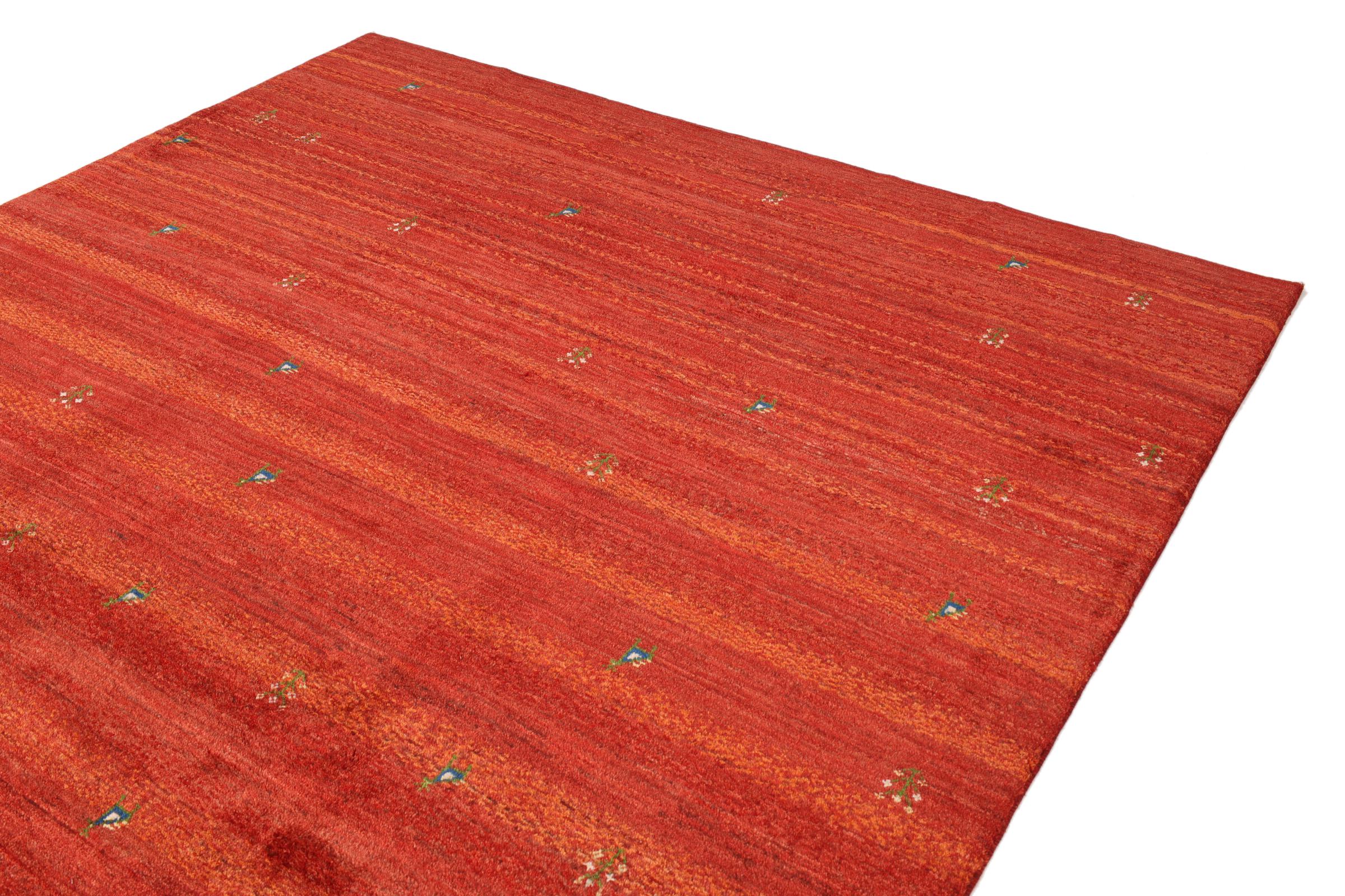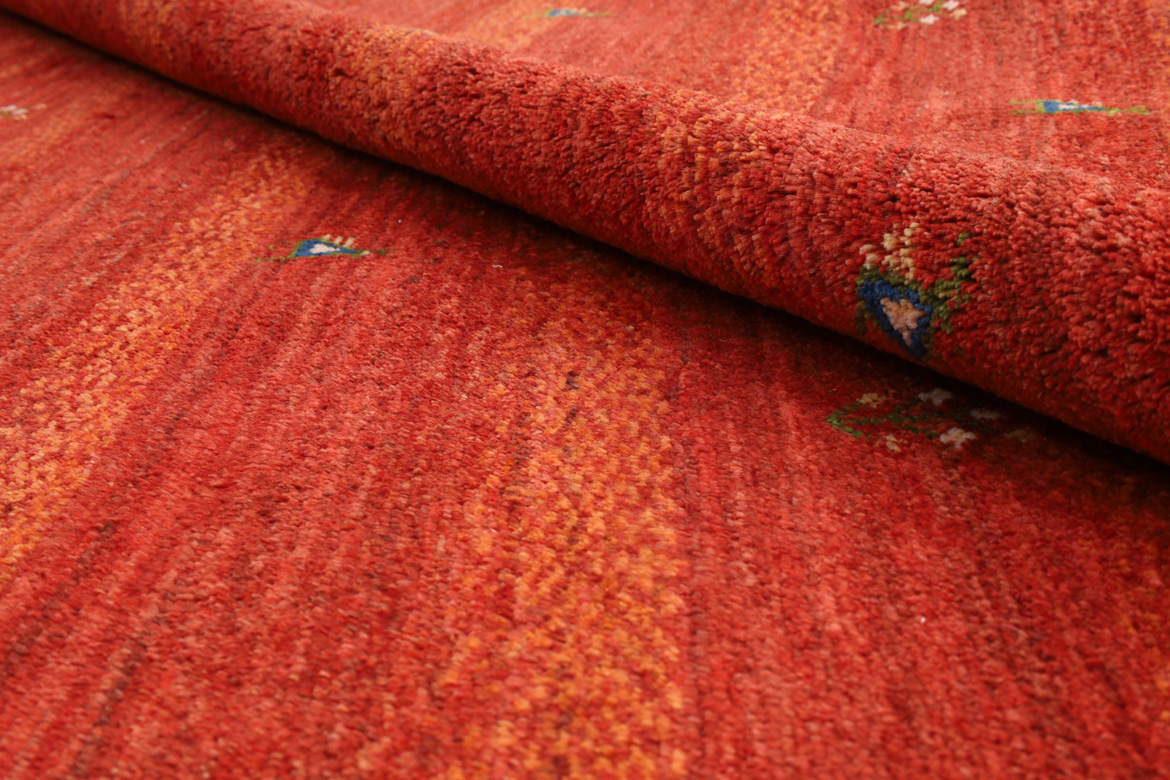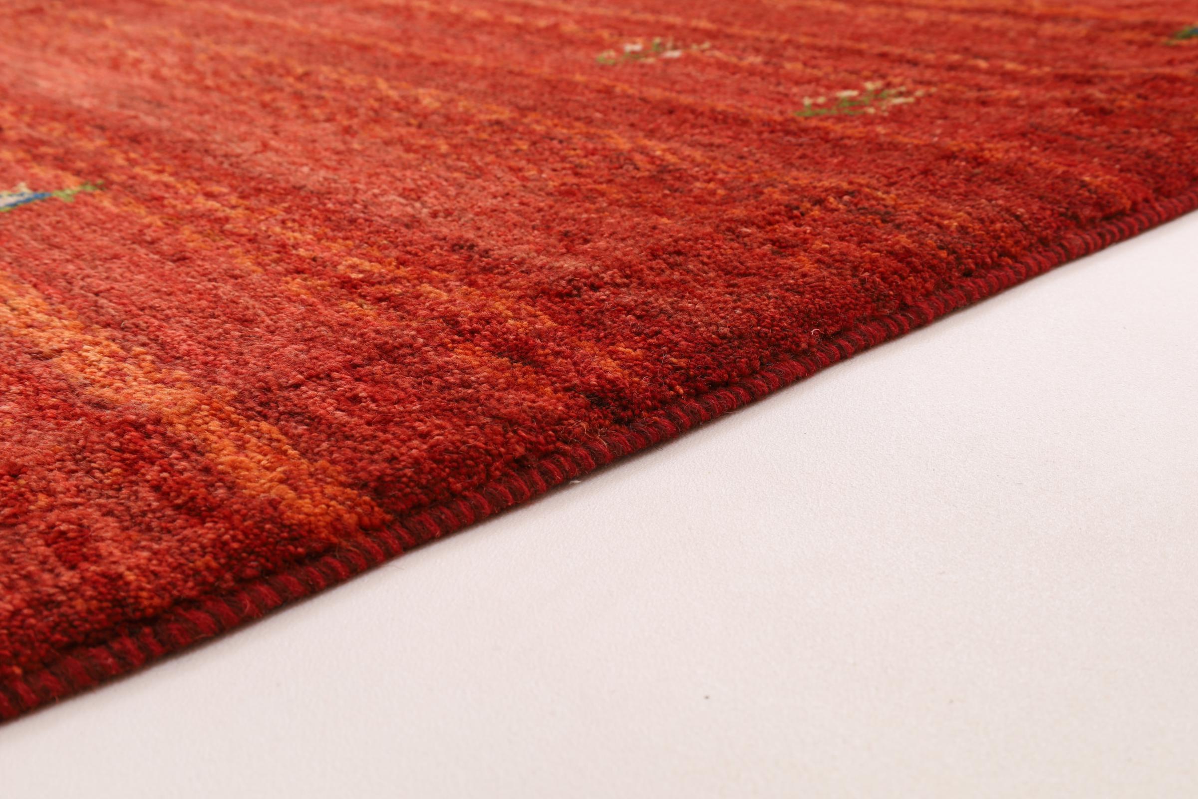 Dette smukke tæppe er en persisk Gabbeh og er en af ​​de højeste kvalitet Gabbeh tæpper. Tæpper er knyttet af nomader eller semi-nomader i Iran ved hjælp af traditionelt håndværk. De enkle motiver og mønstre er for det meste inspireret af nomadernes umiddelbare omgivelser. F.eks. Kan kameler, træer eller buske findes på traditionelle tæpper. Persiske Gabbeh-tæpper er lavet af uld fra lokale fårbesætninger. Ulden er derfor for det meste spundet for hånd. Hver af disse orientalske tæpper udgør en unik karakter af århundreder gammel kultur.