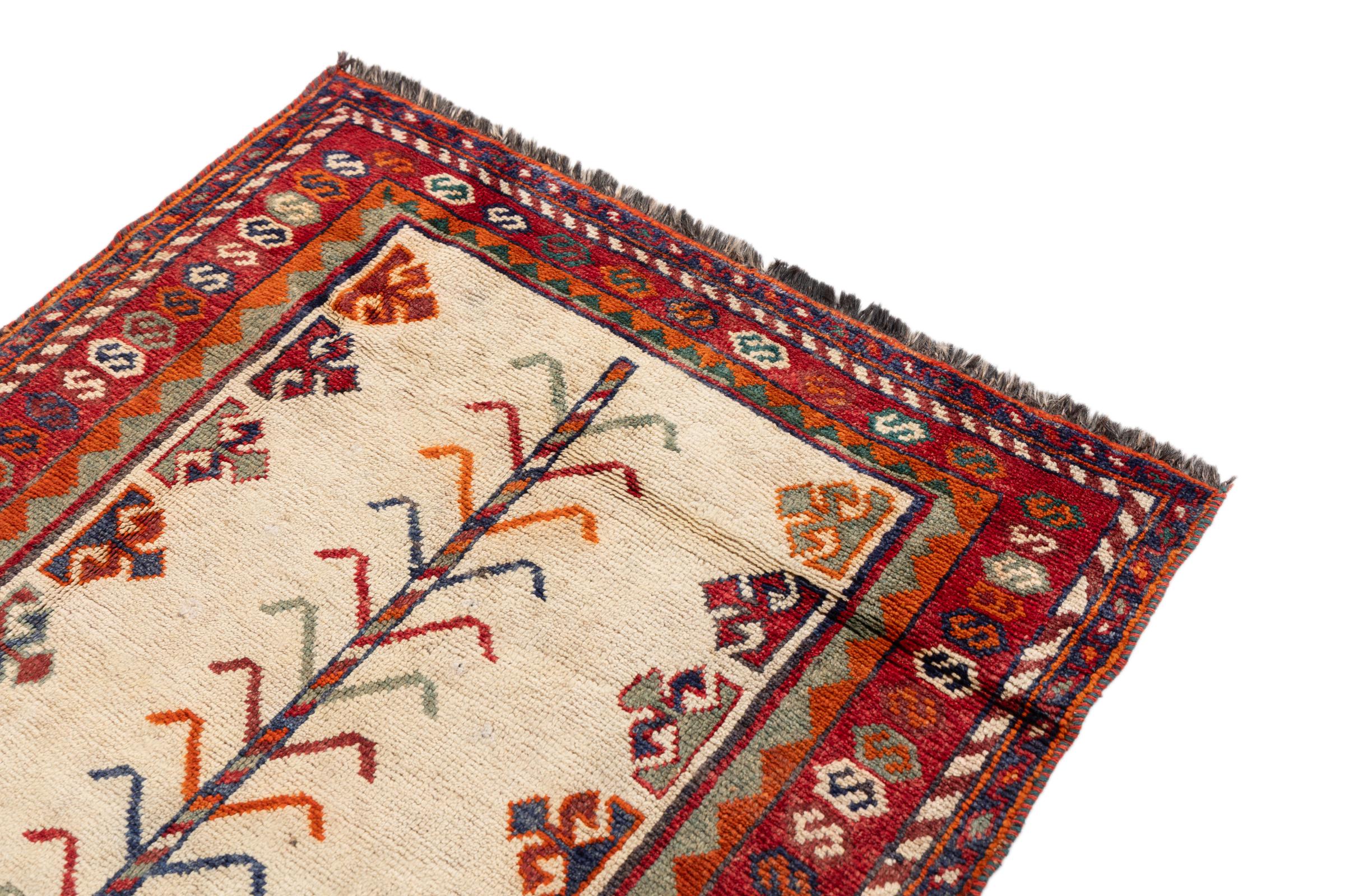 Denne håndknyttede persiske Gabbeh imponerer straks med sin høje kvalitet og meget robuste luv. Den blev håndknyttet af Ghashghai-nomader i Fars-provinsen i det sydlige Persien af ​​den bedste lokale fåreuld. Naturlige plantefarver bruges til at farve ulden. Dette gør den til en meget værdifuld tilføjelse til børneværelset. Denne persiske Gabbeh repræsenterer den højeste klasse af Gabbeh-tæpper.