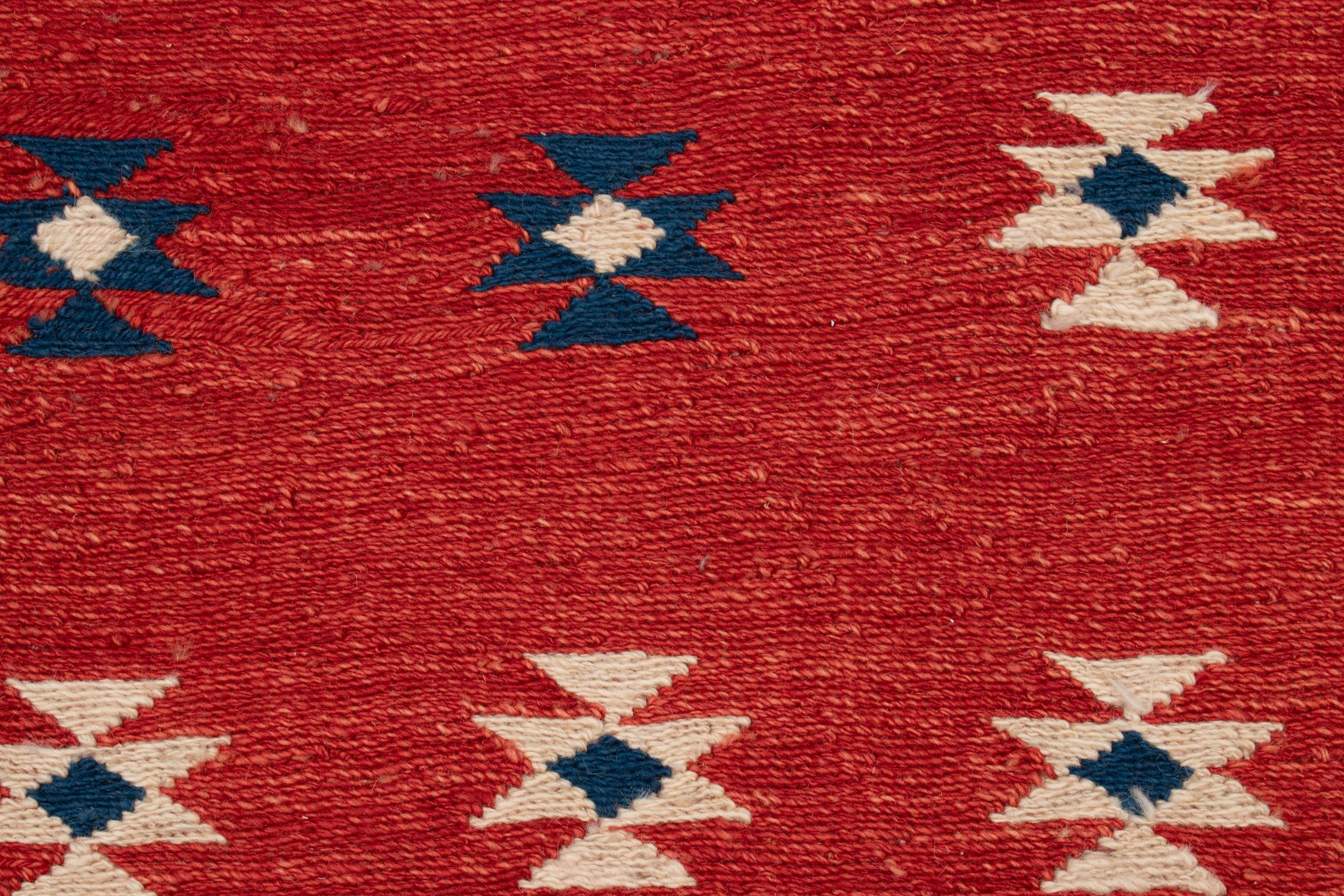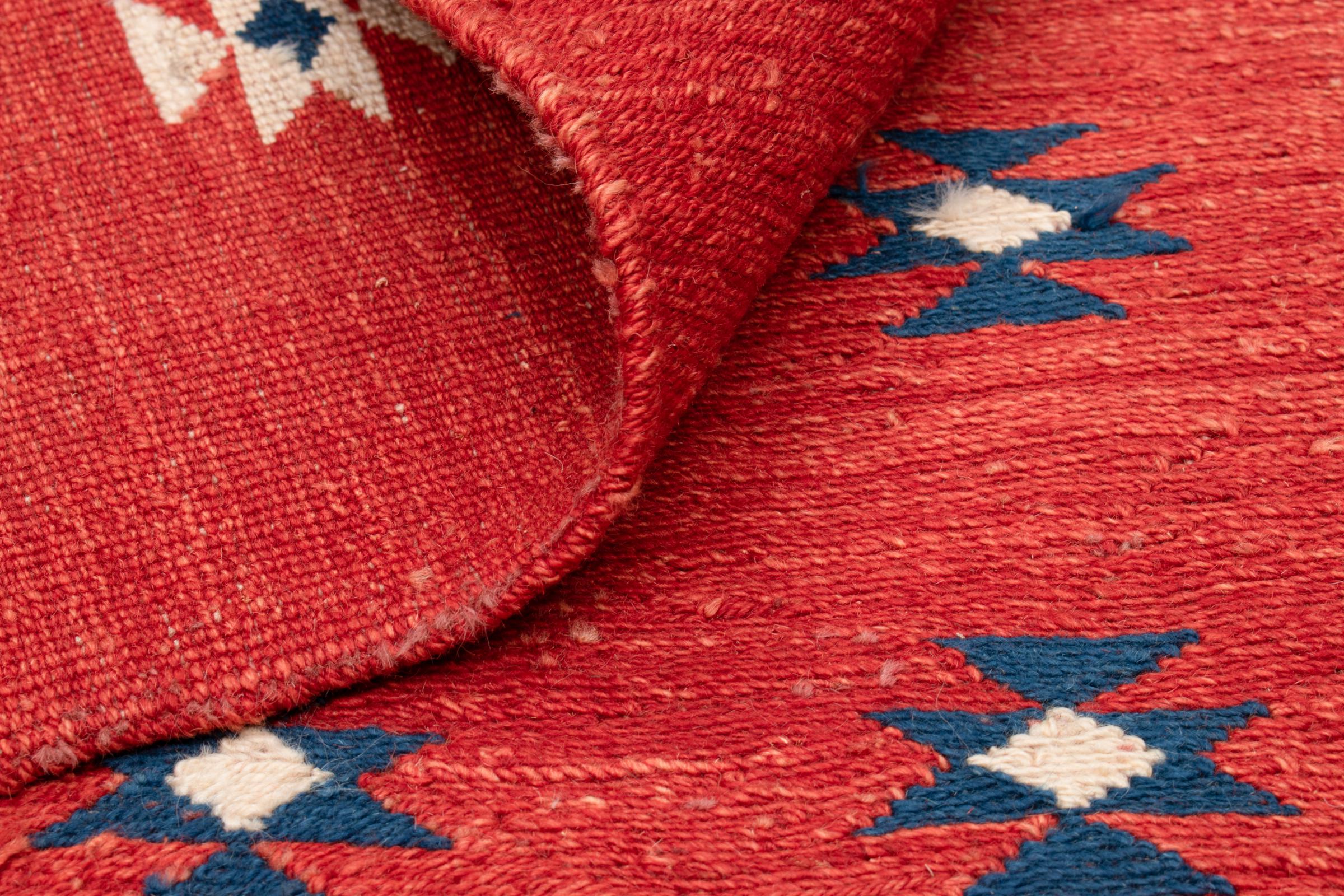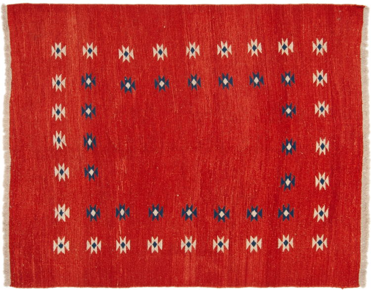 Dette tæppe fremstilles for hånd på væven som en flad væv. Flatweaves er tæpper, der ikke har nogen bunker. Som navnet antyder er disse tæpper vævet og ikke knudede. Dette resulterer i et fladt tæppe med en struktureret overflade. Flade væv er ikke så bløde og for det meste tyndere end knyttede tæpper. På samme tid er de betydeligt mindre komplekse at fremstille og kan normalt designes fra begge sider (for og bag). Deres mønstre er normalt geometriske, hvilket skyldes stoffet.