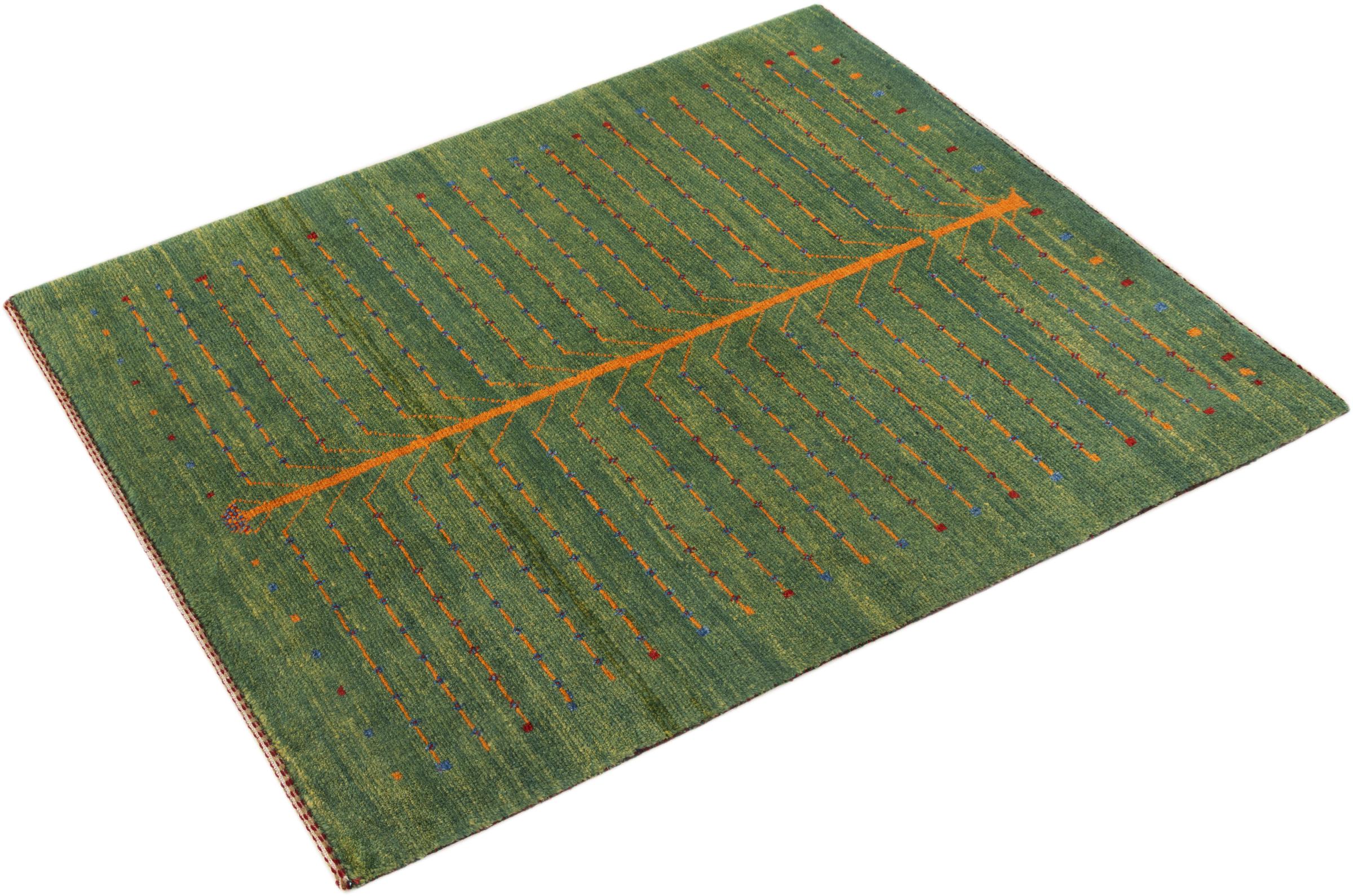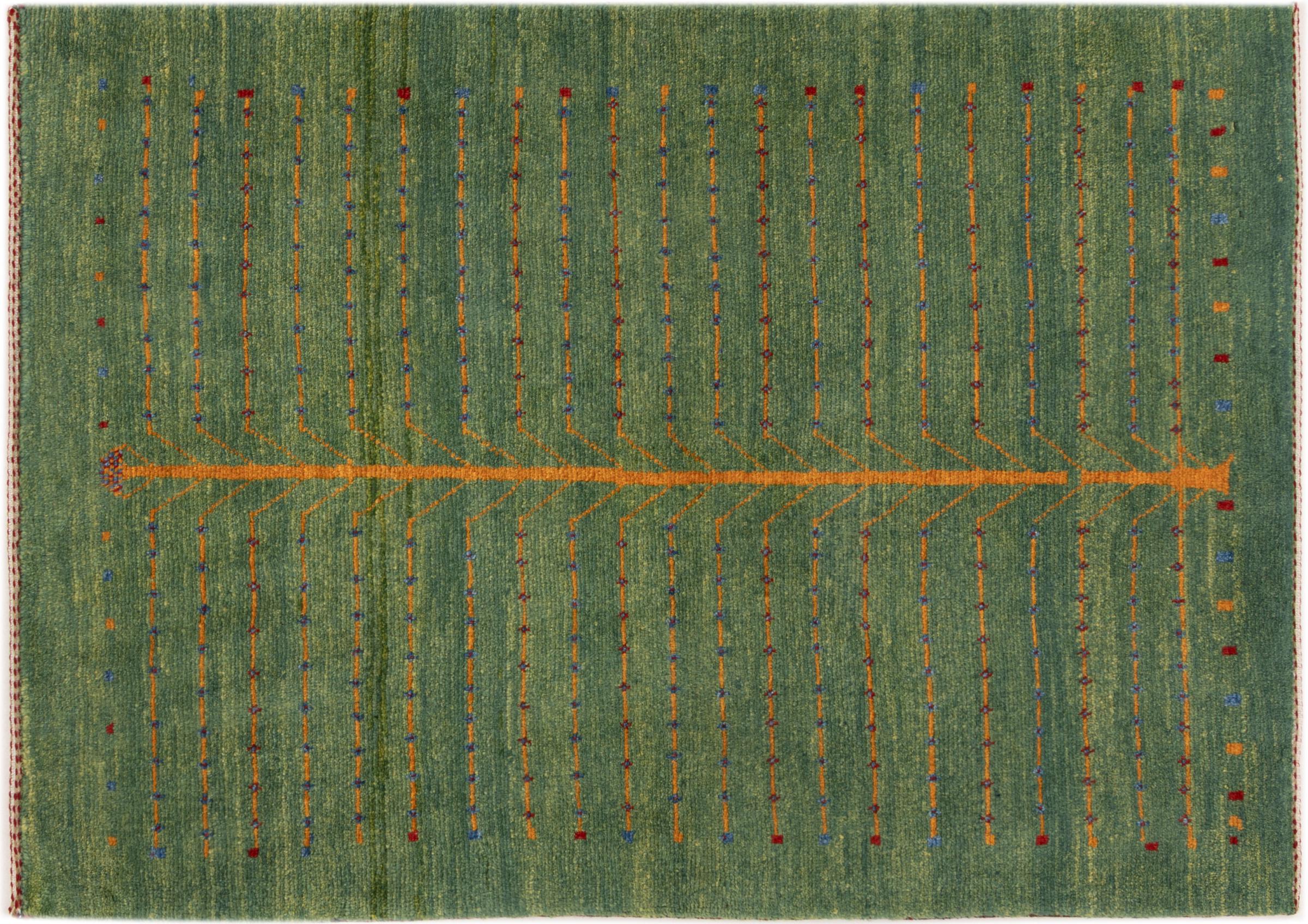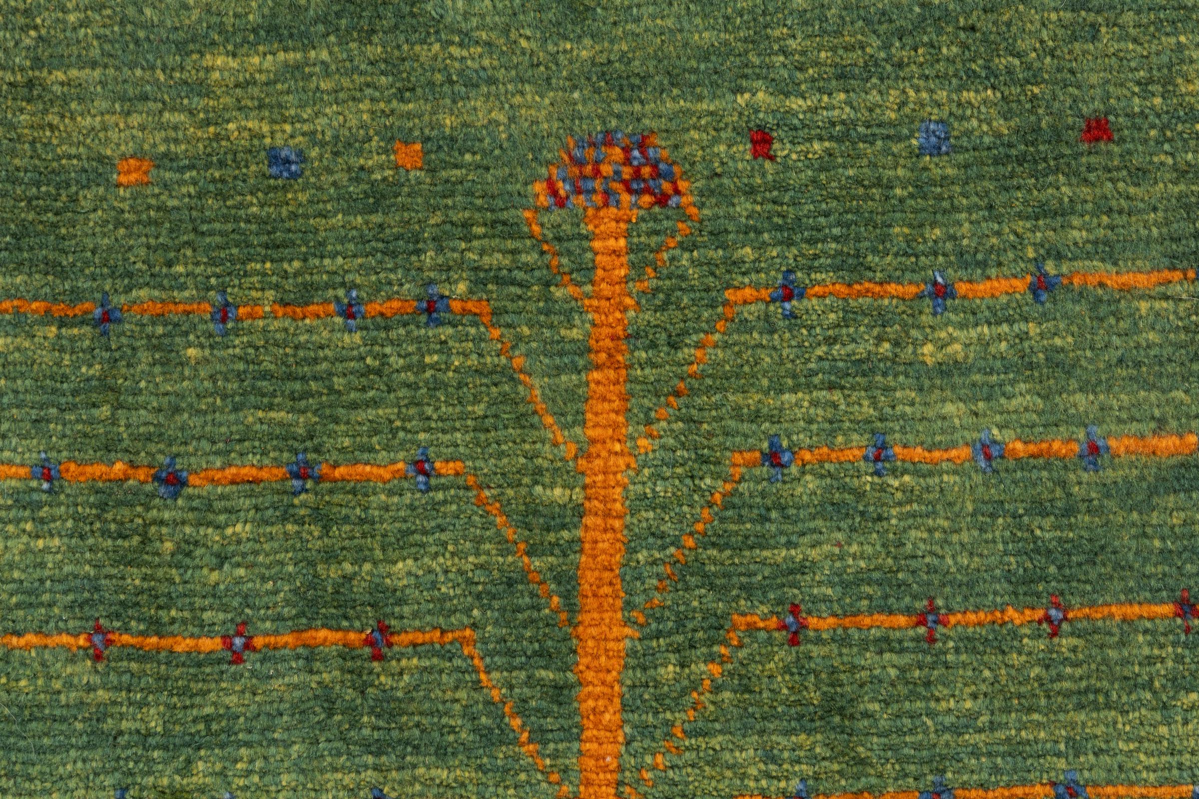 Dette smukke tæppe er en persisk Gabbeh og er en af ​​de højeste kvalitet Gabbeh tæpper. Tæpper er knyttet af nomader eller semi-nomader i Iran ved hjælp af traditionelt håndværk. De enkle motiver og mønstre er for det meste inspireret af nomadernes umiddelbare omgivelser. F.eks. Kan kameler, træer eller buske findes på traditionelle tæpper. Persiske Gabbeh-tæpper er lavet af uld fra lokale fårbesætninger. Ulden er derfor for det meste spundet for hånd. Hver af disse orientalske tæpper udgør en unik karakter af århundreder gammel kultur.