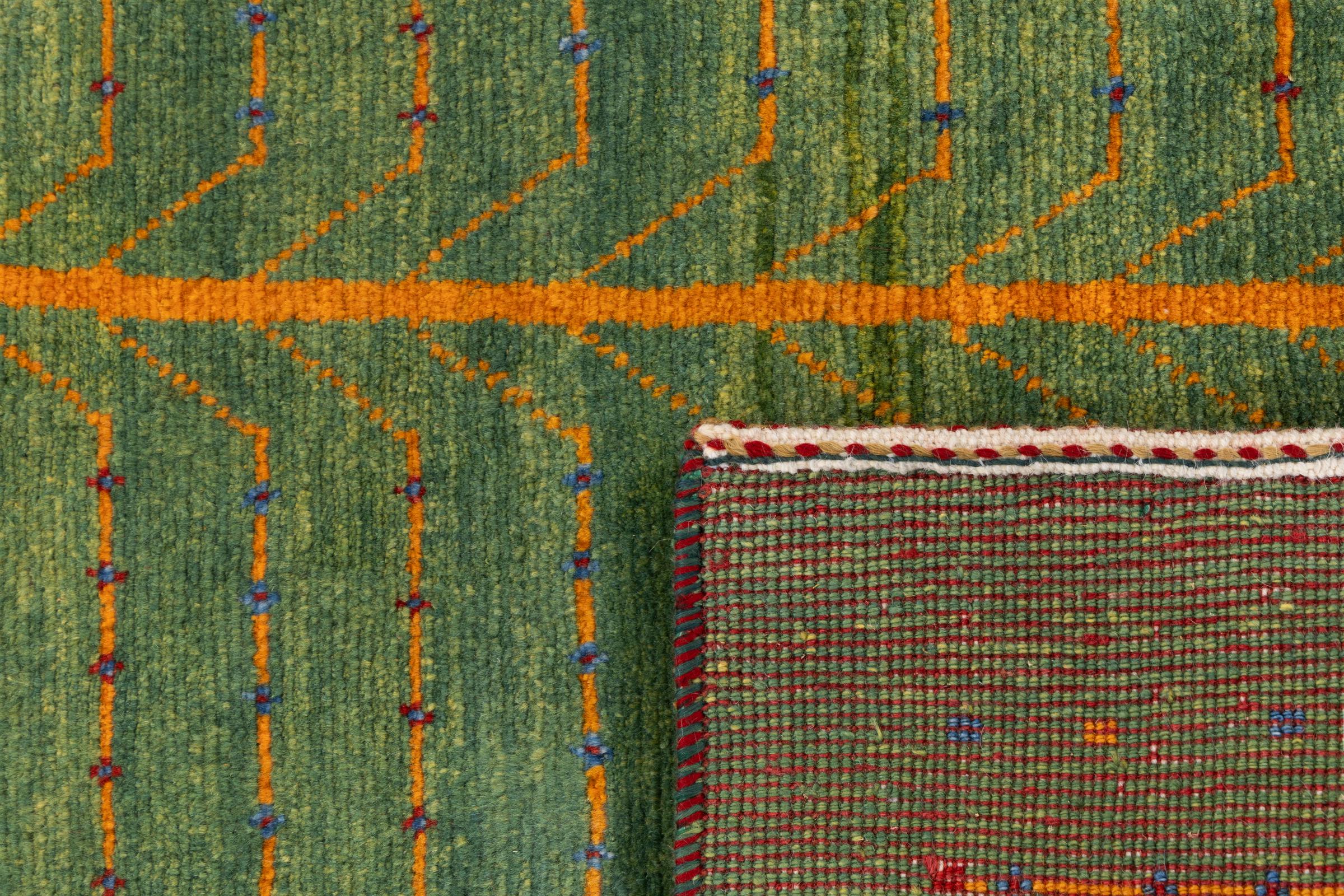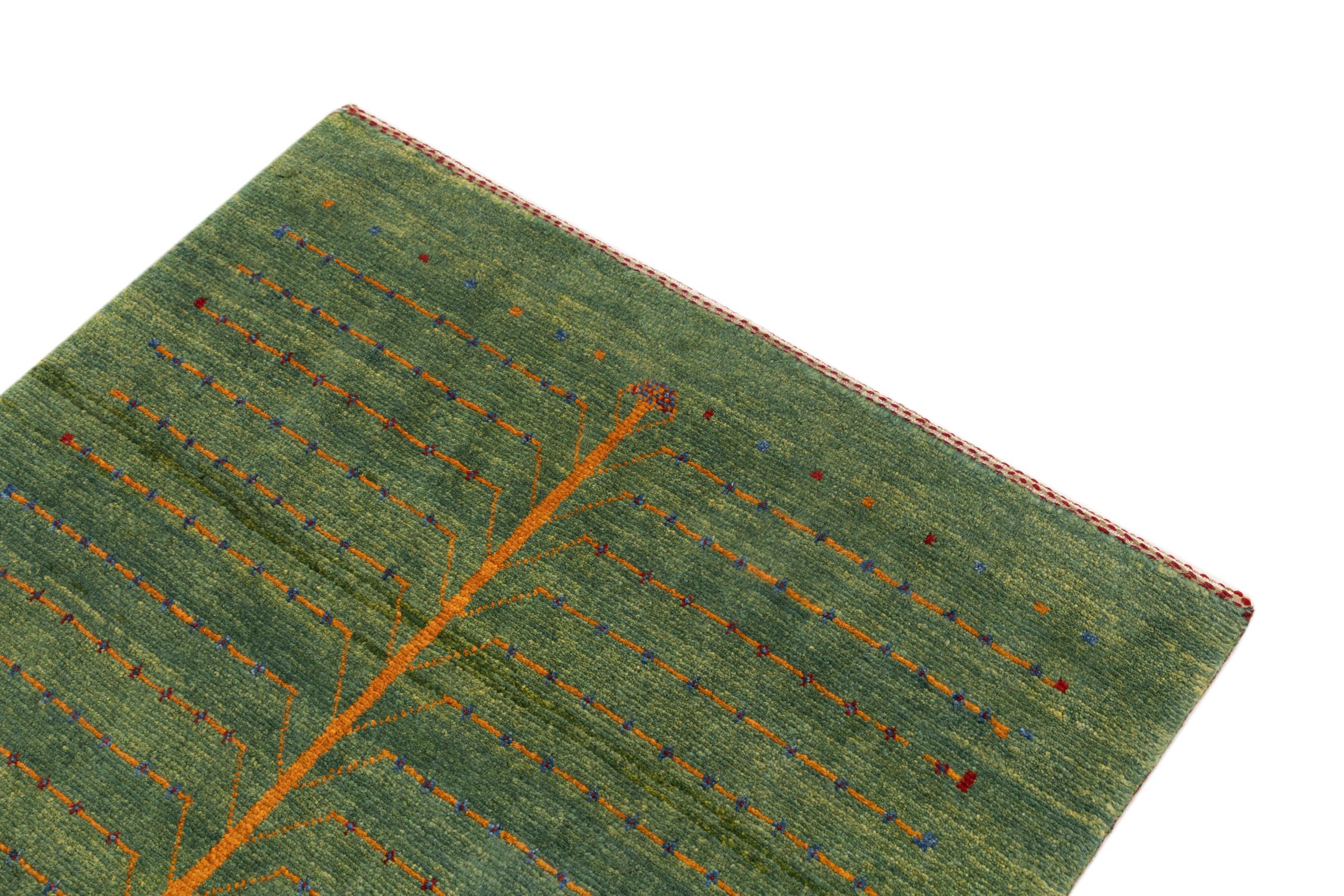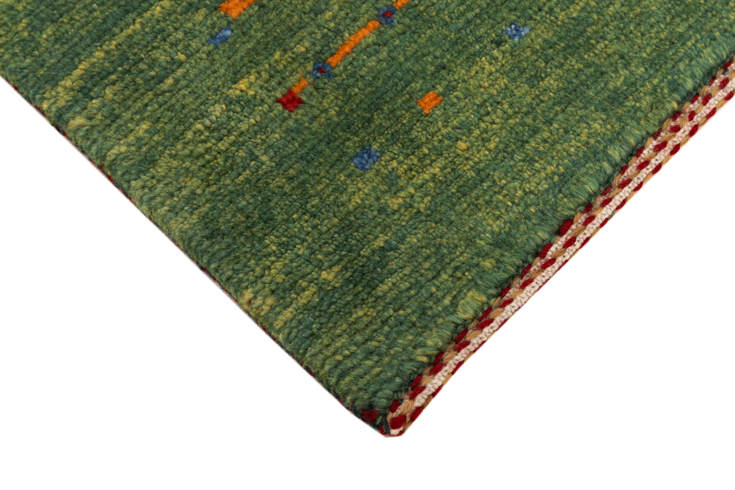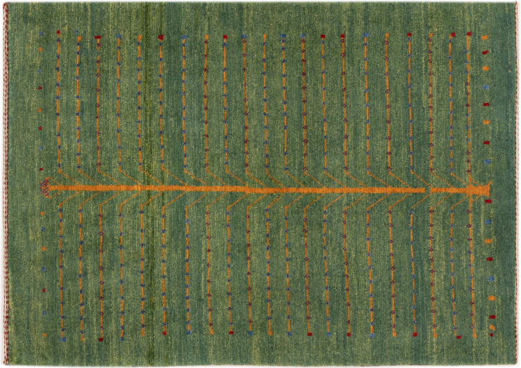 Dette smukke tæppe er en persisk Gabbeh og er en af ​​de højeste kvalitet Gabbeh tæpper. Tæpper er knyttet af nomader eller semi-nomader i Iran ved hjælp af traditionelt håndværk. De enkle motiver og mønstre er for det meste inspireret af nomadernes umiddelbare omgivelser. F.eks. Kan kameler, træer eller buske findes på traditionelle tæpper. Persiske Gabbeh-tæpper er lavet af uld fra lokale fårbesætninger. Ulden er derfor for det meste spundet for hånd. Hver af disse orientalske tæpper udgør en unik karakter af århundreder gammel kultur.
