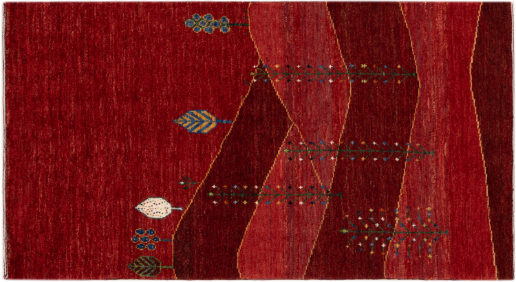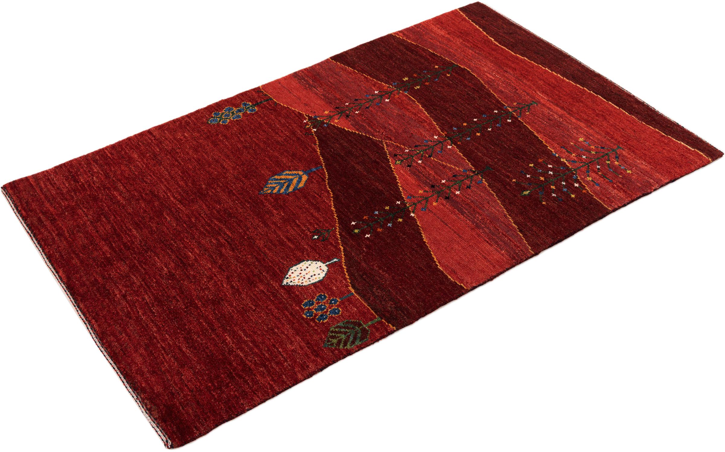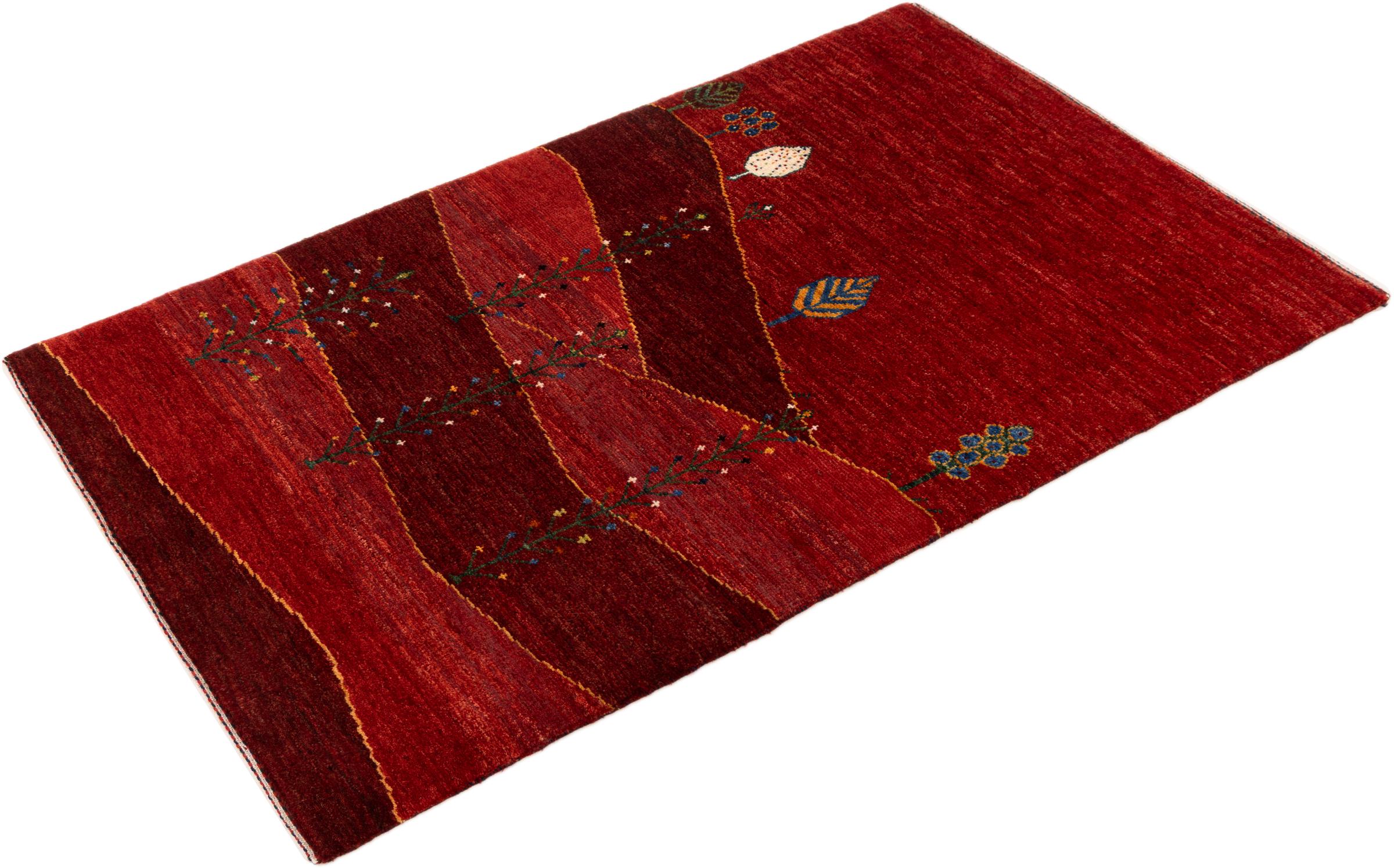 Dette smukke tæppe er en persisk Gabbeh og er en af ​​de højeste kvalitet Gabbeh tæpper. Tæpper er knyttet af nomader eller semi-nomader i Iran ved hjælp af traditionelt håndværk. De enkle motiver og mønstre er for det meste inspireret af nomadernes umiddelbare omgivelser. F.eks. Kan kameler, træer eller buske findes på traditionelle tæpper. Persiske Gabbeh-tæpper er lavet af uld fra lokale fårbesætninger. Ulden er derfor for det meste spundet for hånd. Hver af disse orientalske tæpper udgør en unik karakter af århundreder gammel kultur.
