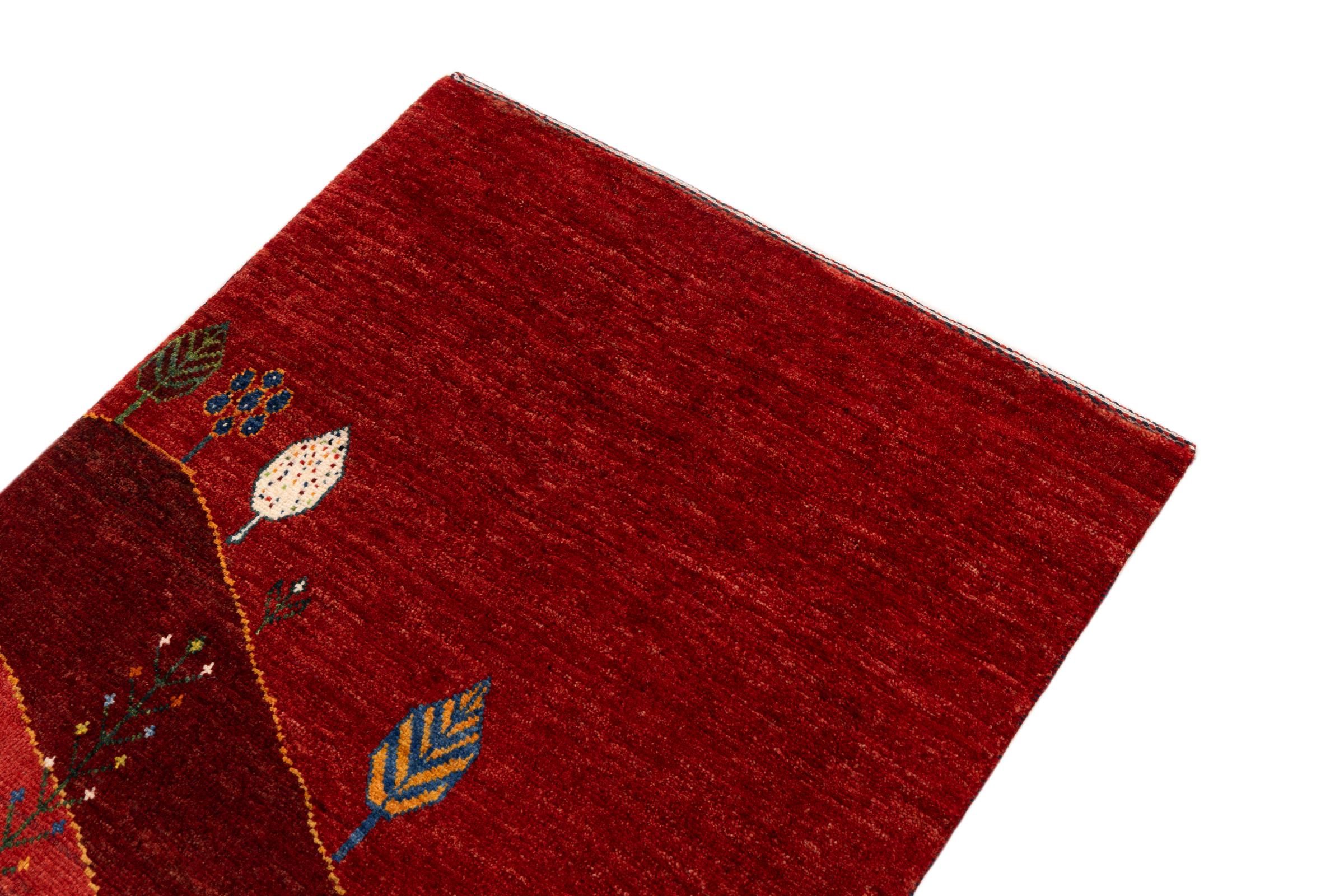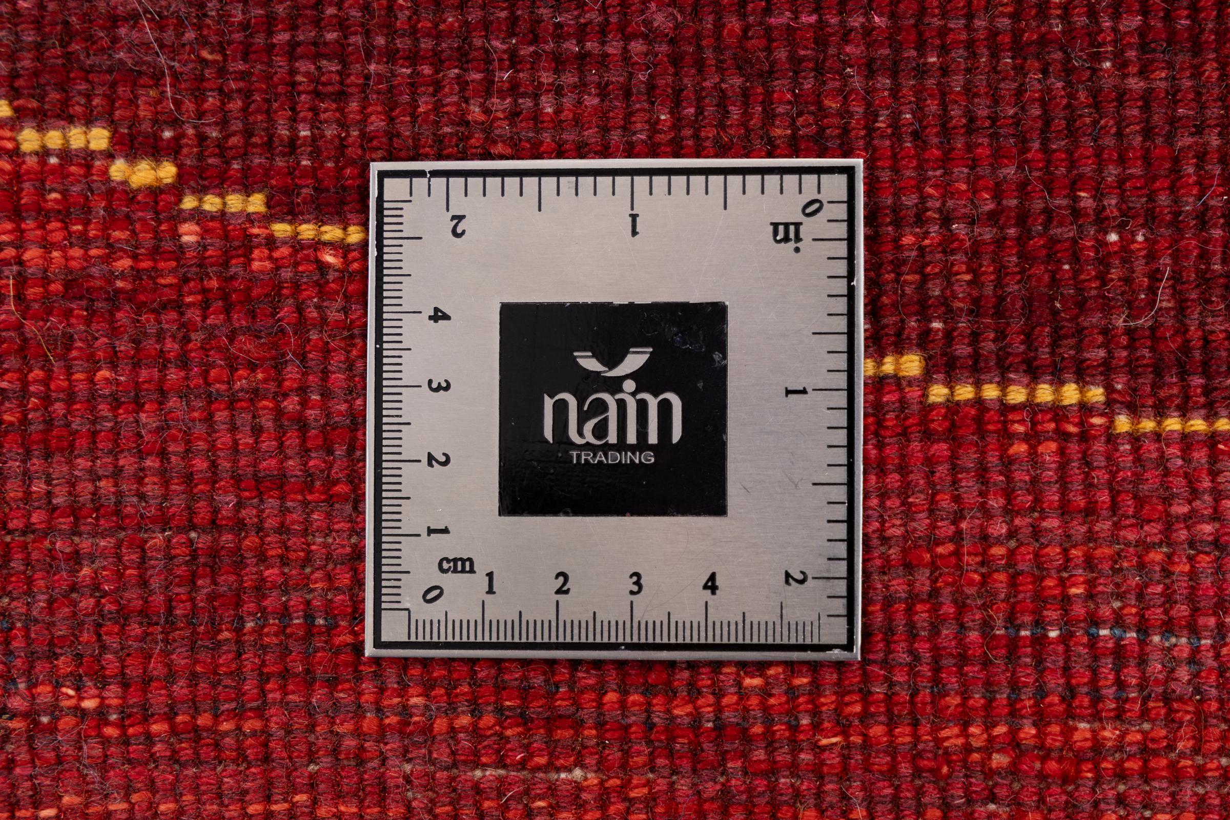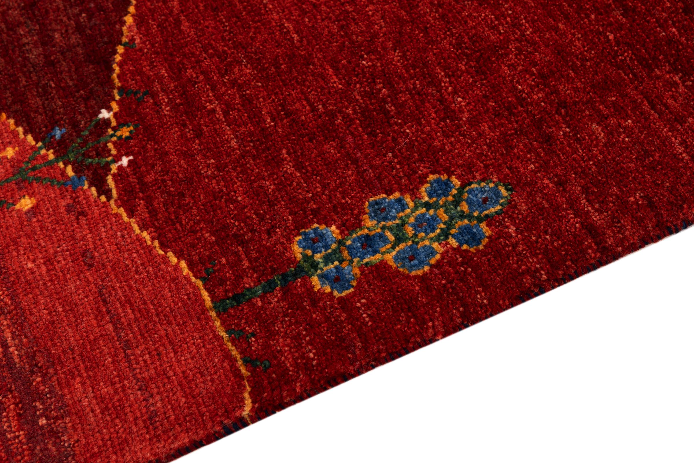 Dette smukke tæppe er en persisk Gabbeh og er en af ​​de højeste kvalitet Gabbeh tæpper. Tæpper er knyttet af nomader eller semi-nomader i Iran ved hjælp af traditionelt håndværk. De enkle motiver og mønstre er for det meste inspireret af nomadernes umiddelbare omgivelser. F.eks. Kan kameler, træer eller buske findes på traditionelle tæpper. Persiske Gabbeh-tæpper er lavet af uld fra lokale fårbesætninger. Ulden er derfor for det meste spundet for hånd. Hver af disse orientalske tæpper udgør en unik karakter af århundreder gammel kultur.