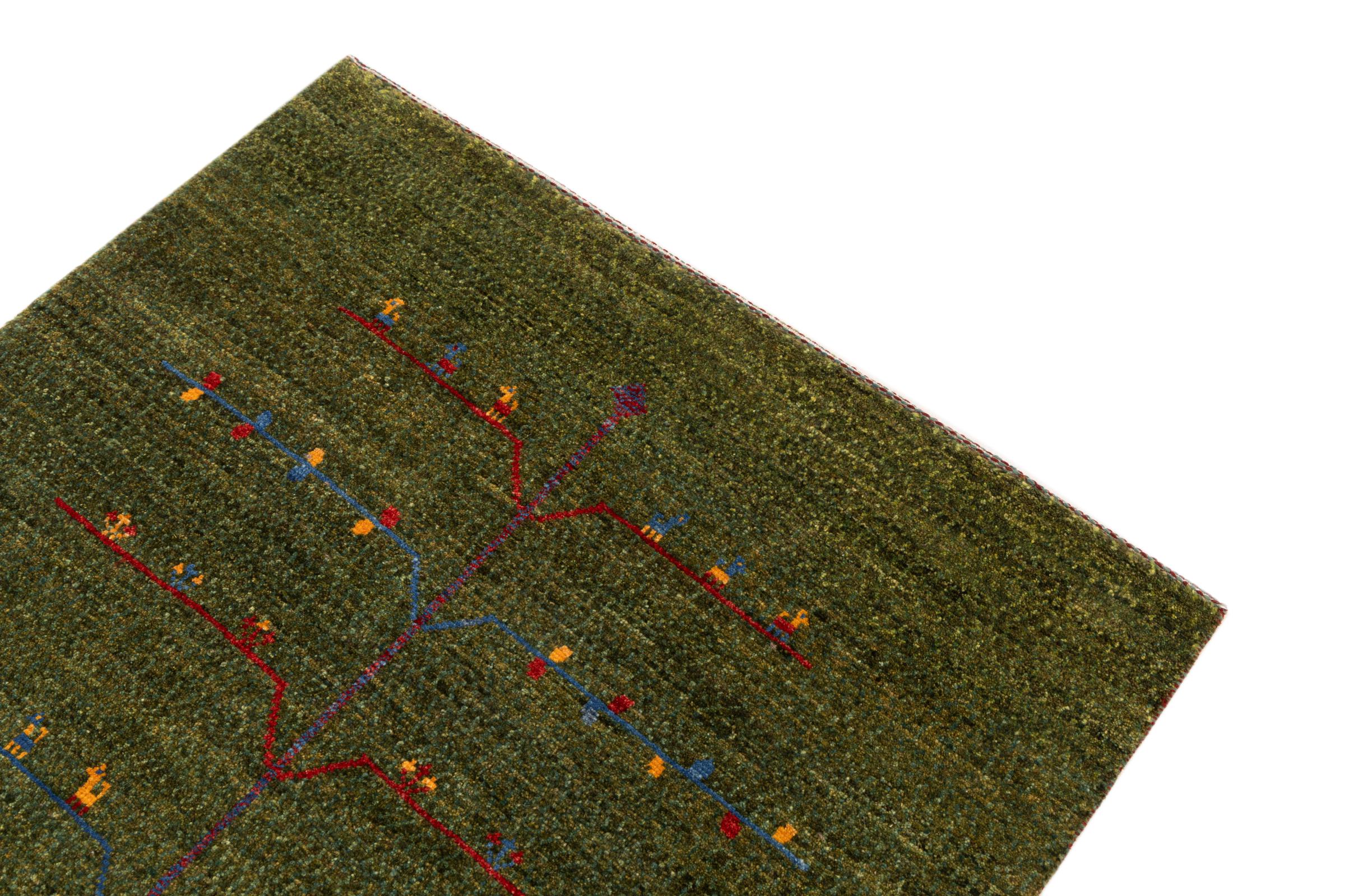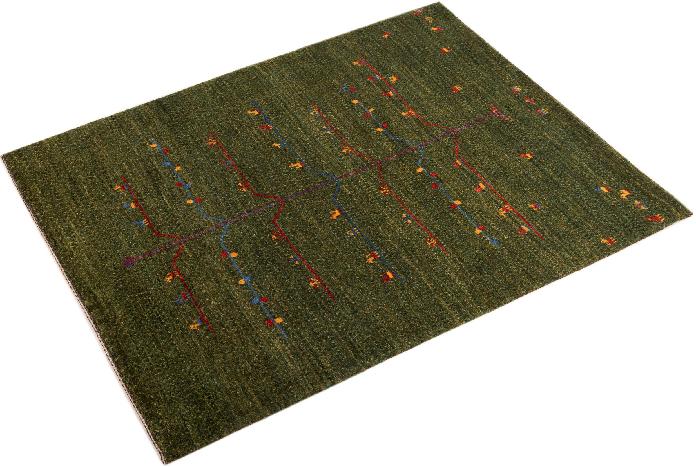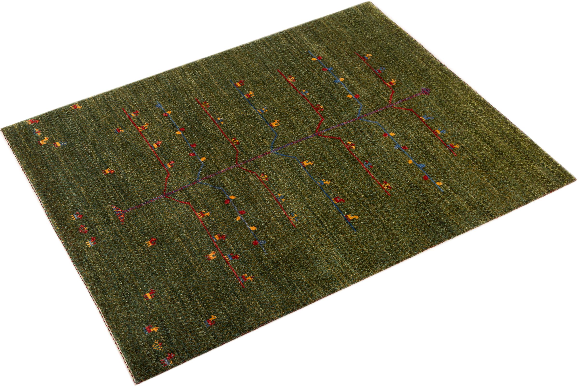 Dette smukke tæppe er en persisk Gabbeh og er en af ​​de højeste kvalitet Gabbeh tæpper. Tæpper er knyttet af nomader eller semi-nomader i Iran ved hjælp af traditionelt håndværk. De enkle motiver og mønstre er for det meste inspireret af nomadernes umiddelbare omgivelser. F.eks. Kan kameler, træer eller buske findes på traditionelle tæpper. Persiske Gabbeh-tæpper er lavet af uld fra lokale fårbesætninger. Ulden er derfor for det meste spundet for hånd. Hver af disse orientalske tæpper udgør en unik karakter af århundreder gammel kultur.