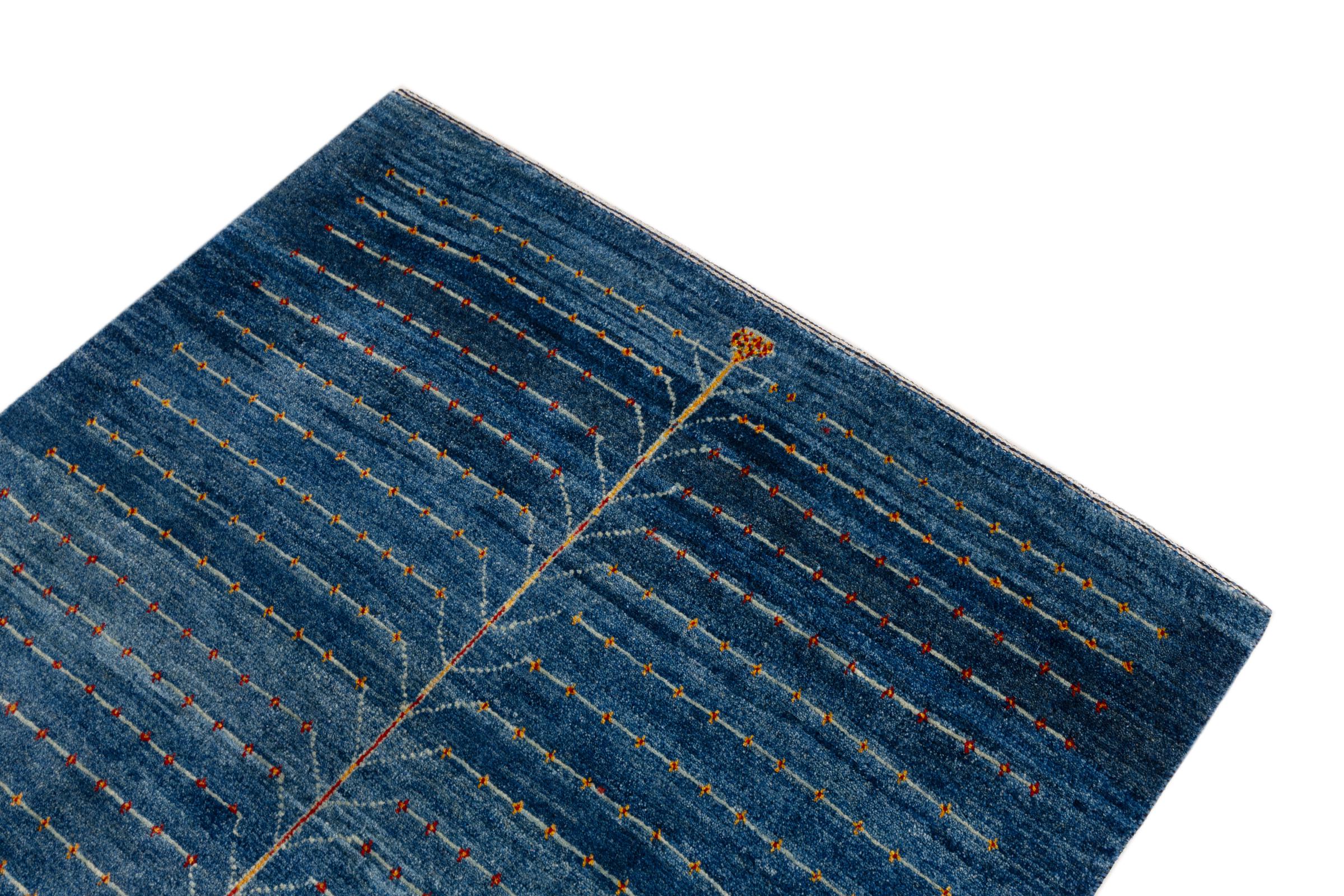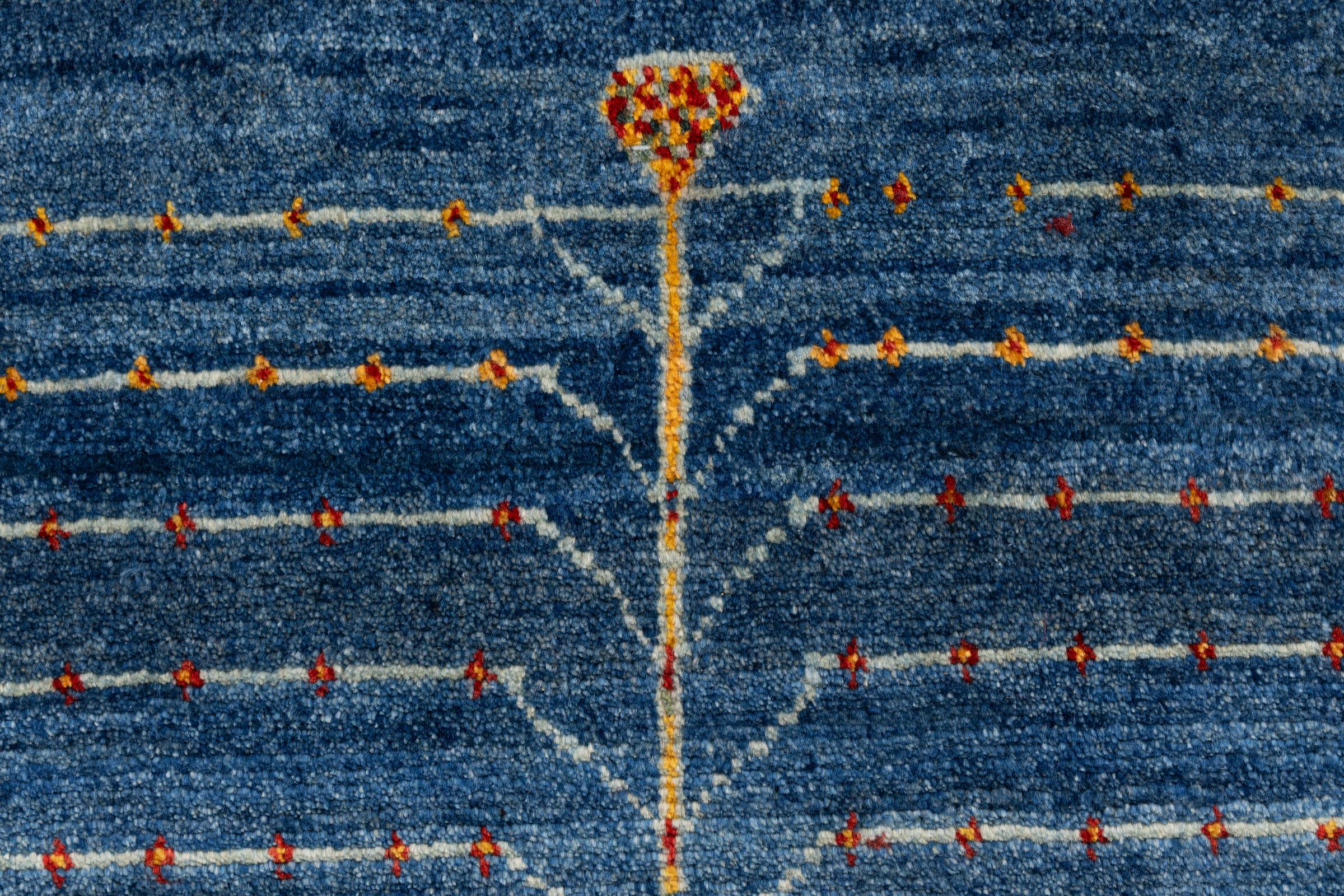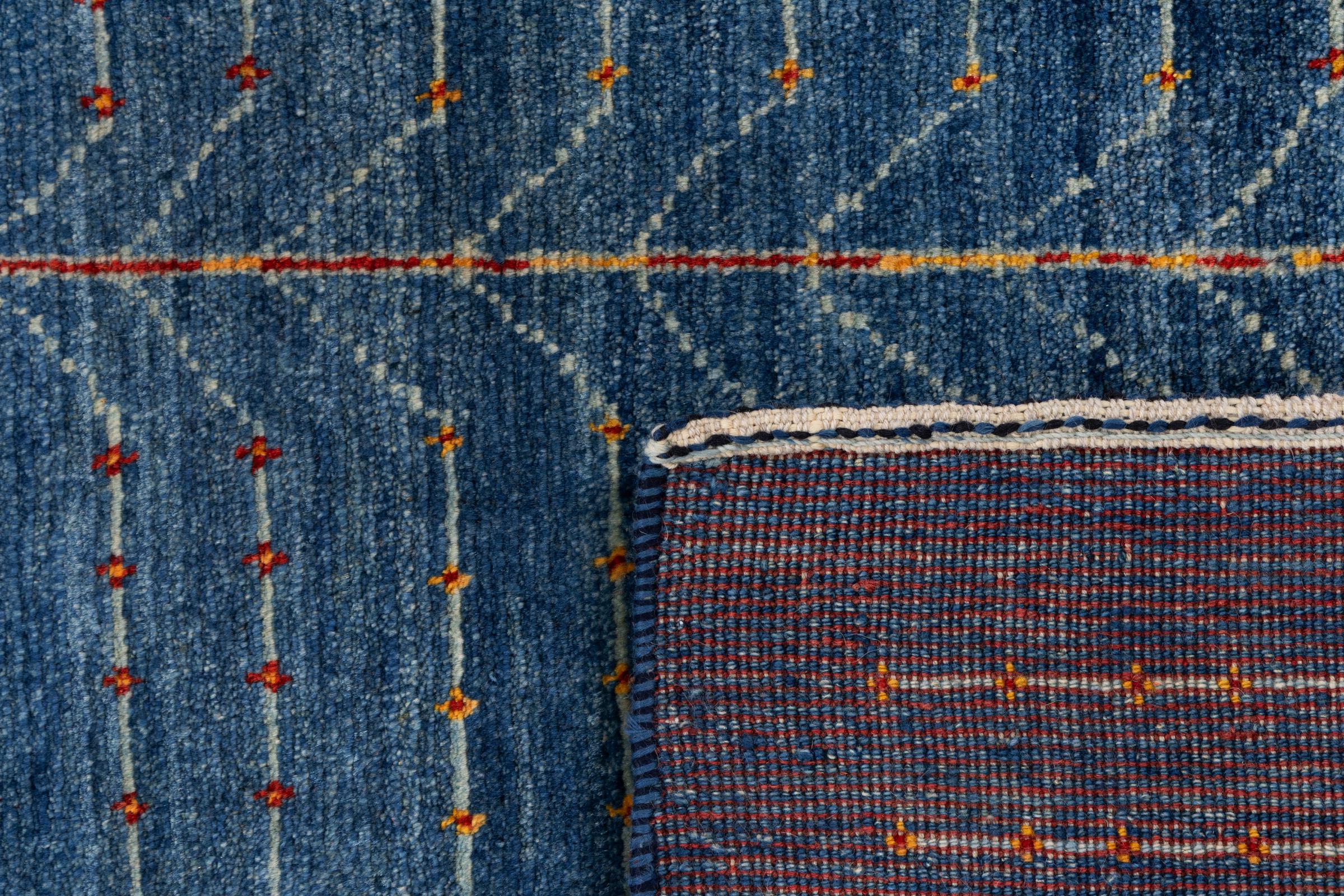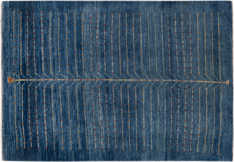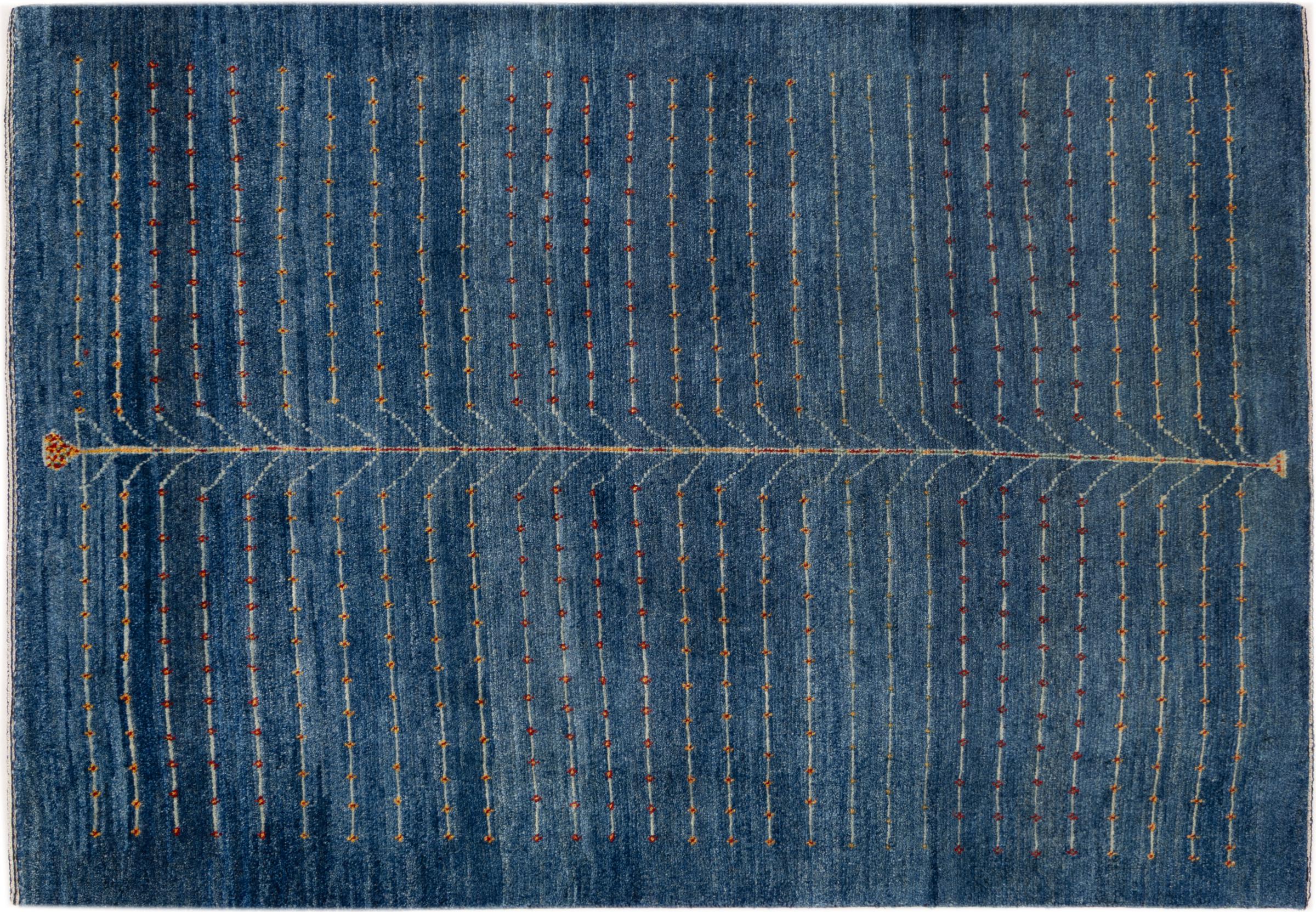 Dette smukke tæppe er en persisk Gabbeh og er en af ​​de højeste kvalitet Gabbeh tæpper. Tæpper er knyttet af nomader eller semi-nomader i Iran ved hjælp af traditionelt håndværk. De enkle motiver og mønstre er for det meste inspireret af nomadernes umiddelbare omgivelser. F.eks. Kan kameler, træer eller buske findes på traditionelle tæpper. Persiske Gabbeh-tæpper er lavet af uld fra lokale fårbesætninger. Ulden er derfor for det meste spundet for hånd. Hver af disse orientalske tæpper udgør en unik karakter af århundreder gammel kultur.