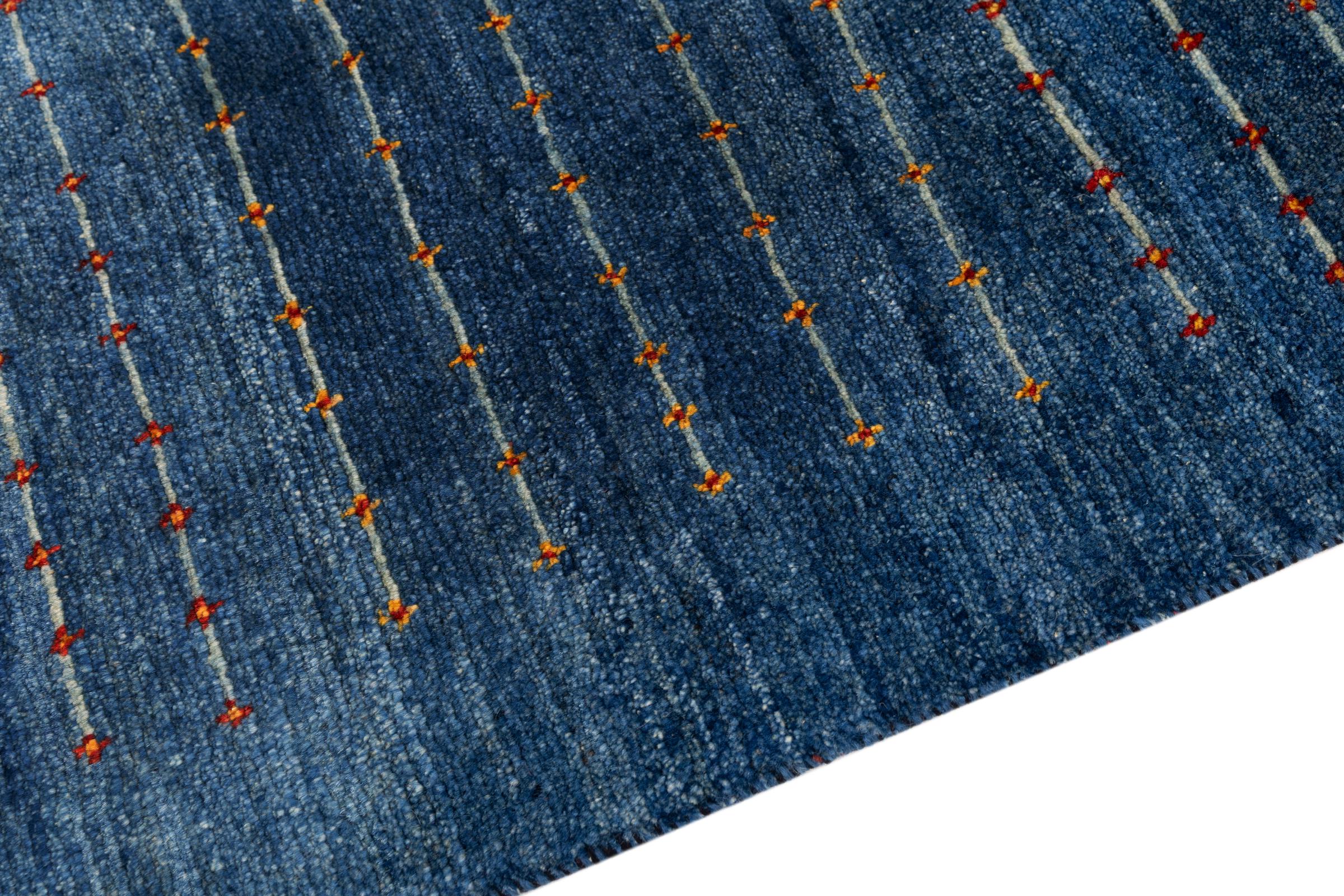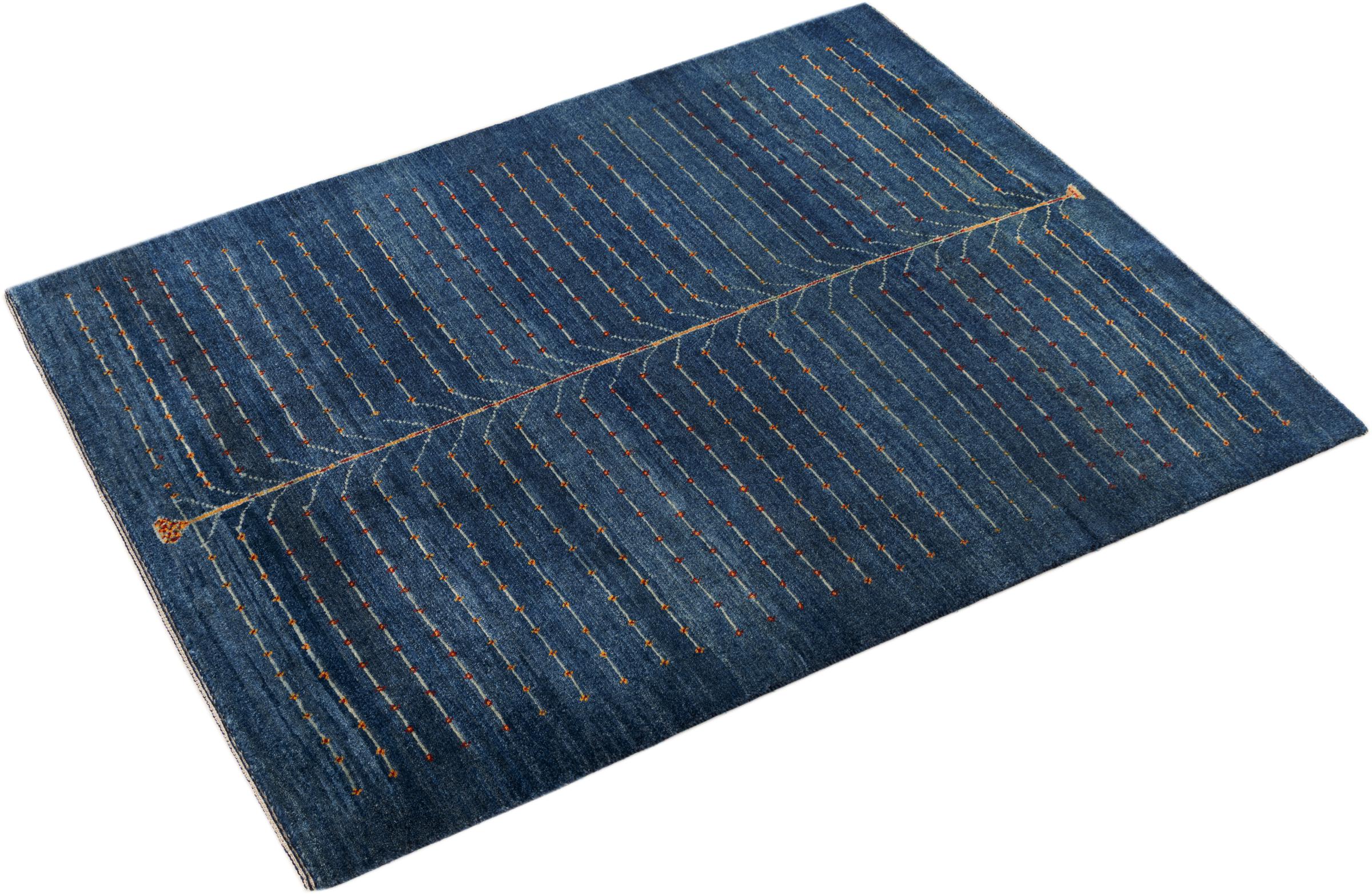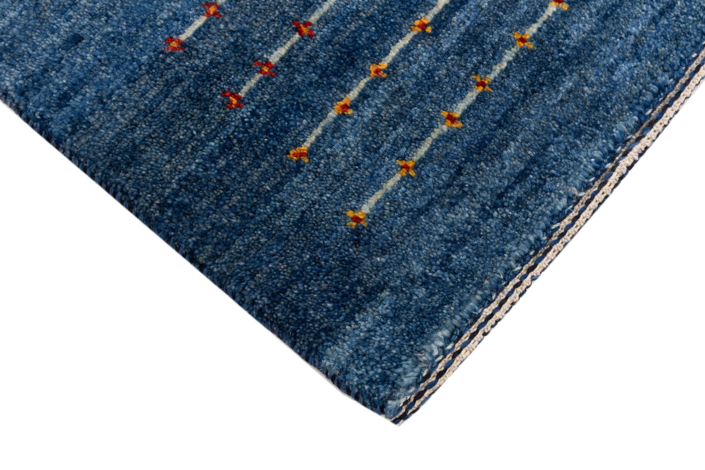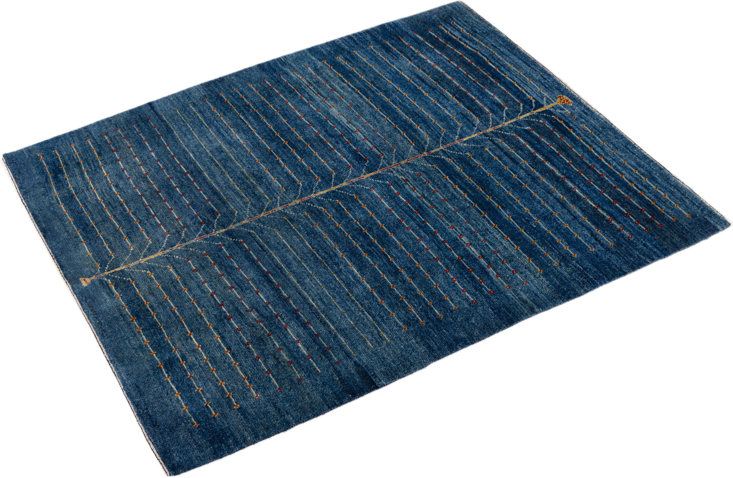 Dette smukke tæppe er en persisk Gabbeh og er en af ​​de højeste kvalitet Gabbeh tæpper. Tæpper er knyttet af nomader eller semi-nomader i Iran ved hjælp af traditionelt håndværk. De enkle motiver og mønstre er for det meste inspireret af nomadernes umiddelbare omgivelser. F.eks. Kan kameler, træer eller buske findes på traditionelle tæpper. Persiske Gabbeh-tæpper er lavet af uld fra lokale fårbesætninger. Ulden er derfor for det meste spundet for hånd. Hver af disse orientalske tæpper udgør en unik karakter af århundreder gammel kultur.
