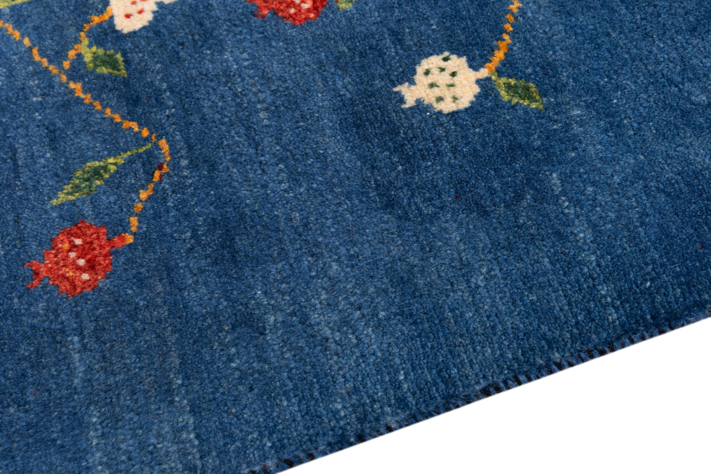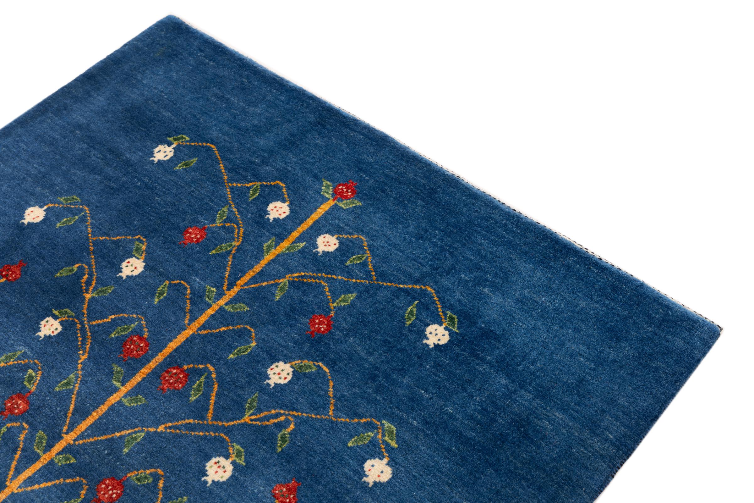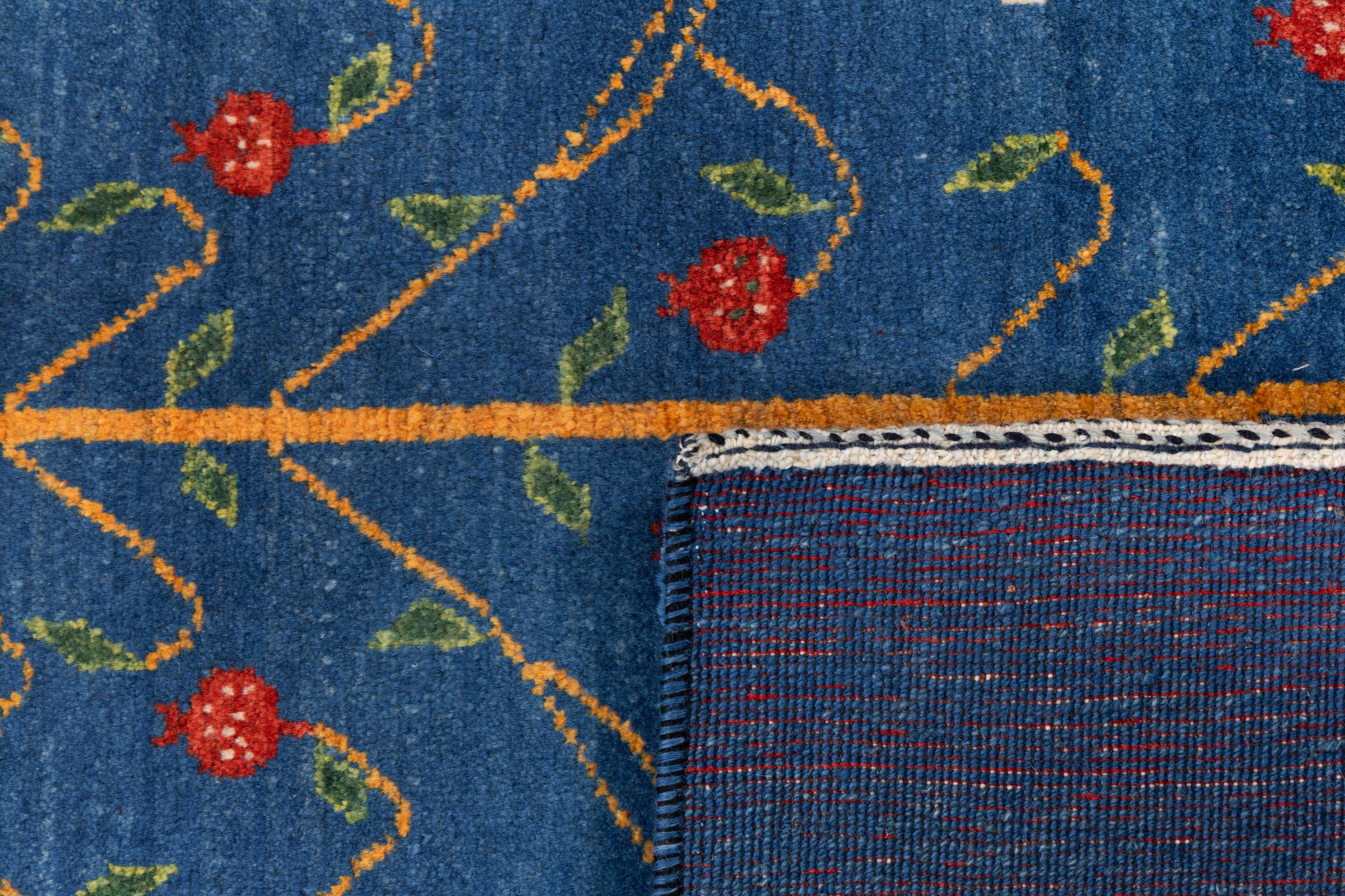 Dette smukke tæppe er en persisk Gabbeh og er en af ​​de højeste kvalitet Gabbeh tæpper. Tæpper er knyttet af nomader eller semi-nomader i Iran ved hjælp af traditionelt håndværk. De enkle motiver og mønstre er for det meste inspireret af nomadernes umiddelbare omgivelser. F.eks. Kan kameler, træer eller buske findes på traditionelle tæpper. Persiske Gabbeh-tæpper er lavet af uld fra lokale fårbesætninger. Ulden er derfor for det meste spundet for hånd. Hver af disse orientalske tæpper udgør en unik karakter af århundreder gammel kultur.
