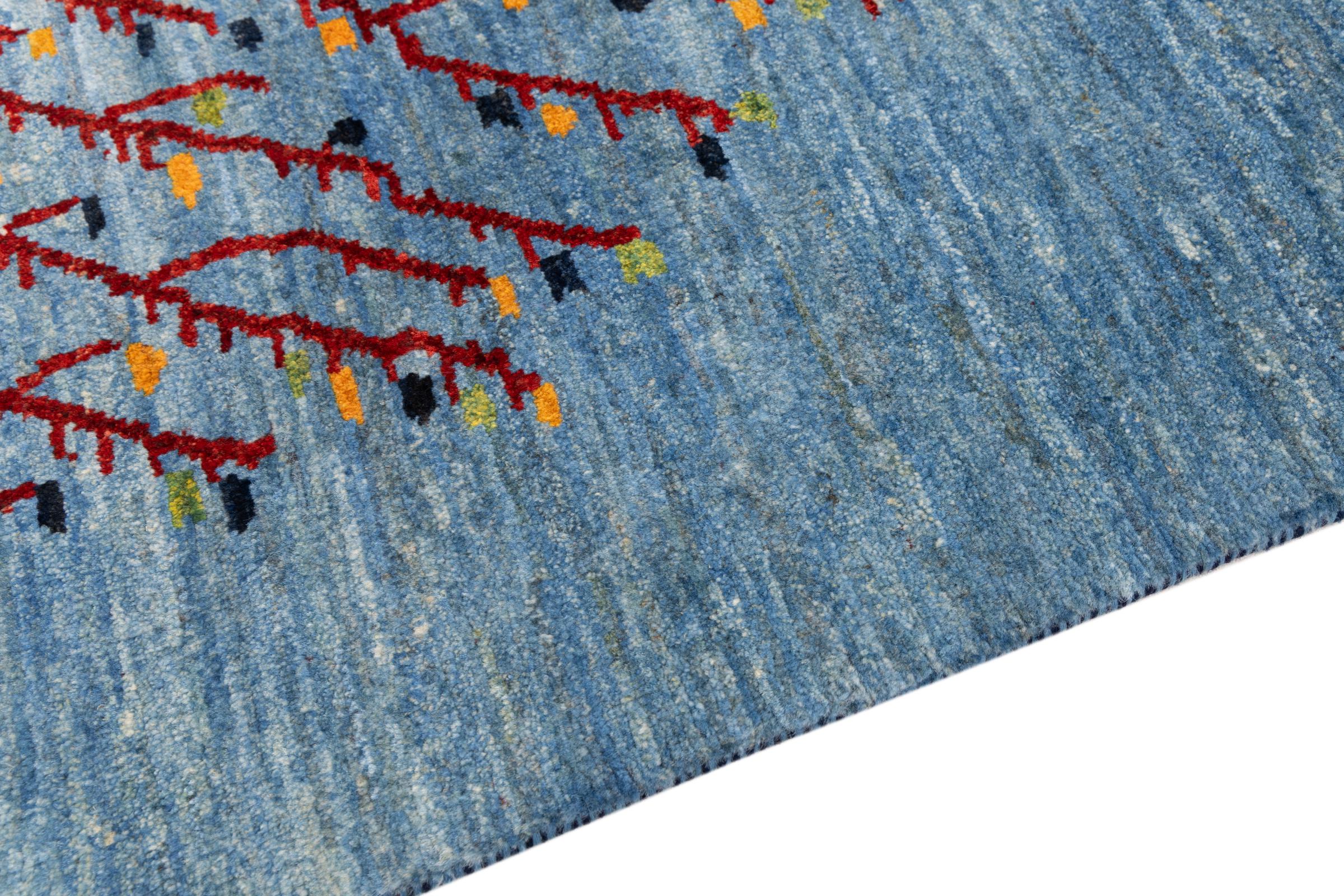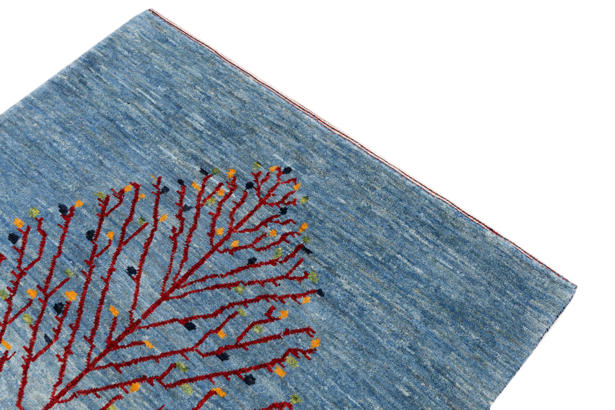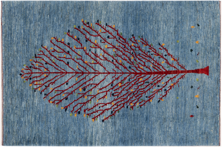 Dette smukke tæppe er en persisk Gabbeh og er en af ​​de højeste kvalitet Gabbeh tæpper. Tæpper er knyttet af nomader eller semi-nomader i Iran ved hjælp af traditionelt håndværk. De enkle motiver og mønstre er for det meste inspireret af nomadernes umiddelbare omgivelser. F.eks. Kan kameler, træer eller buske findes på traditionelle tæpper. Persiske Gabbeh-tæpper er lavet af uld fra lokale fårbesætninger. Ulden er derfor for det meste spundet for hånd. Hver af disse orientalske tæpper udgør en unik karakter af århundreder gammel kultur.