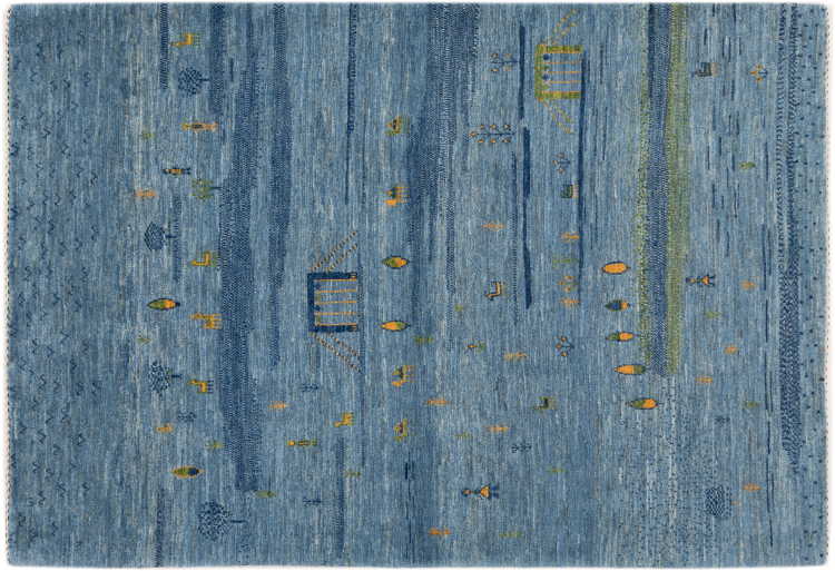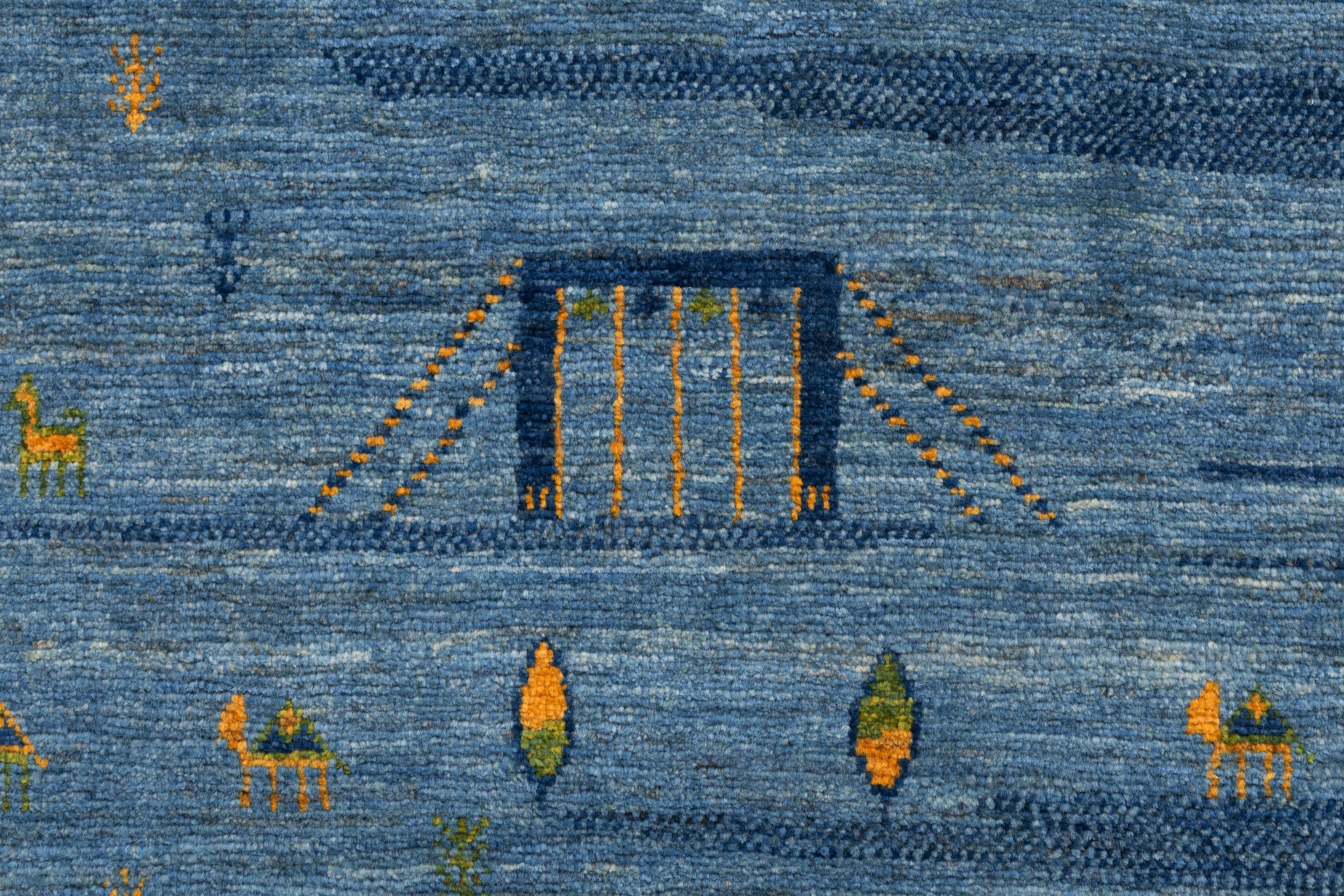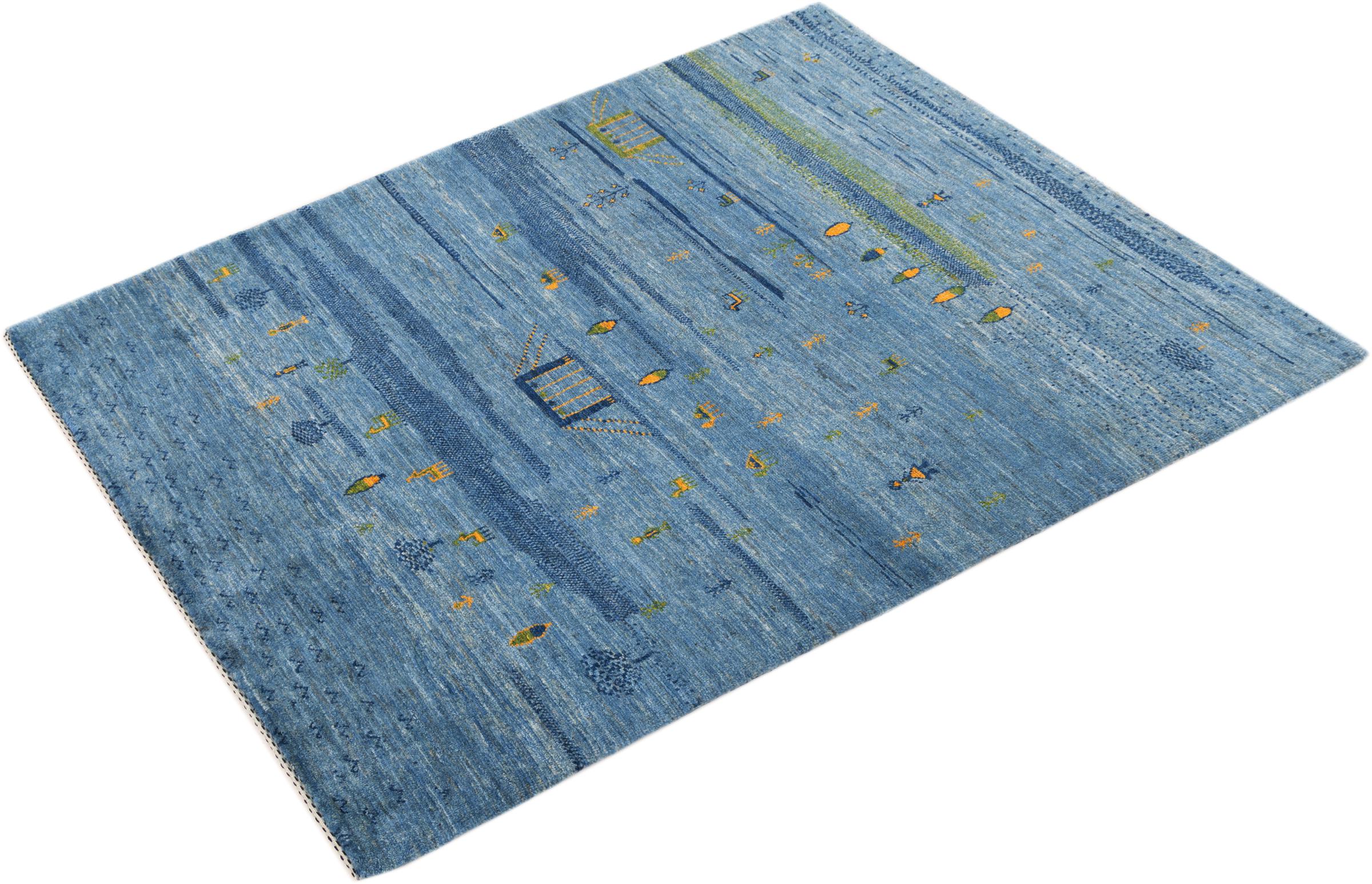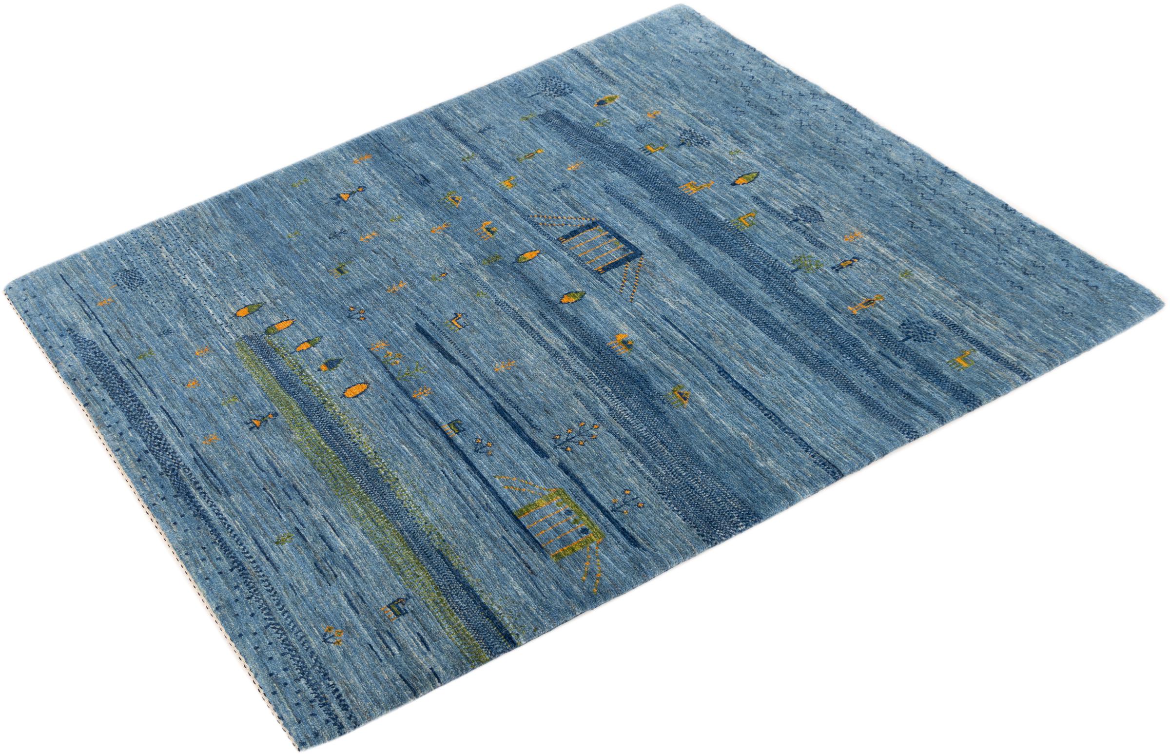 Dette smukke tæppe er en persisk Gabbeh og er en af ​​de højeste kvalitet Gabbeh tæpper. Tæpper er knyttet af nomader eller semi-nomader i Iran ved hjælp af traditionelt håndværk. De enkle motiver og mønstre er for det meste inspireret af nomadernes umiddelbare omgivelser. F.eks. Kan kameler, træer eller buske findes på traditionelle tæpper. Persiske Gabbeh-tæpper er lavet af uld fra lokale fårbesætninger. Ulden er derfor for det meste spundet for hånd. Hver af disse orientalske tæpper udgør en unik karakter af århundreder gammel kultur.