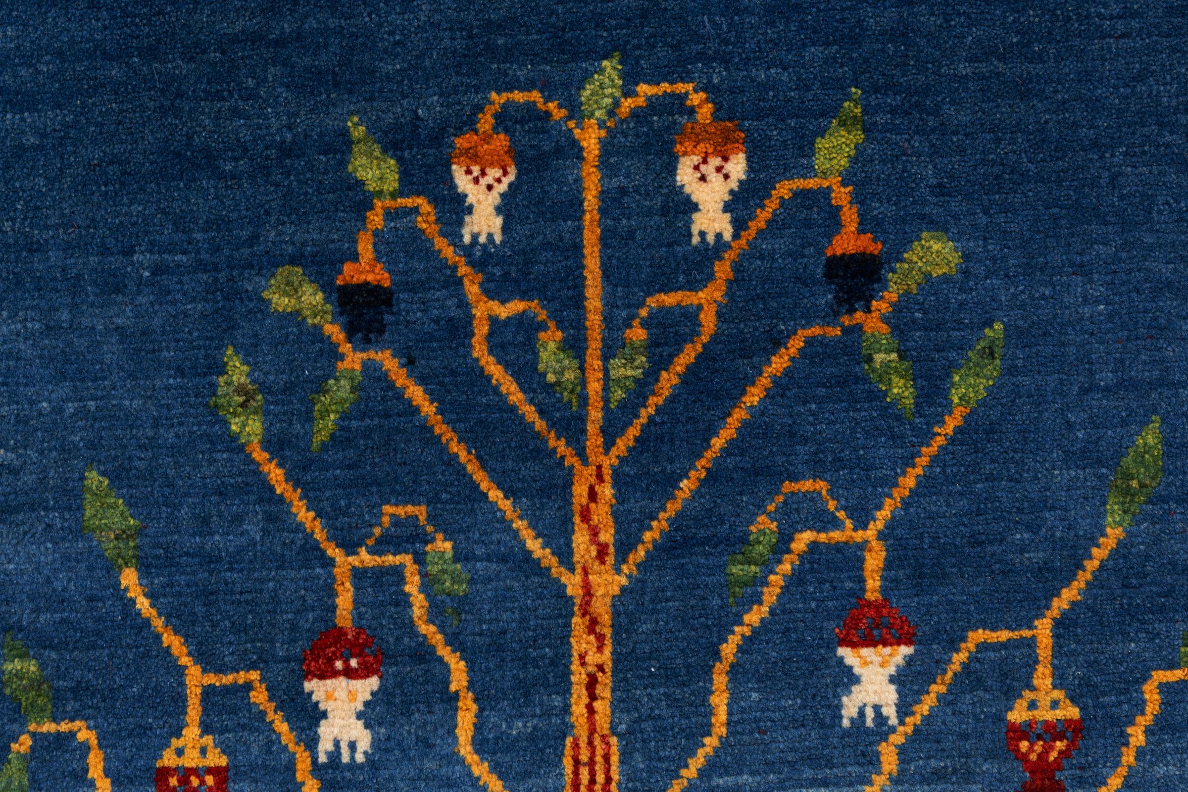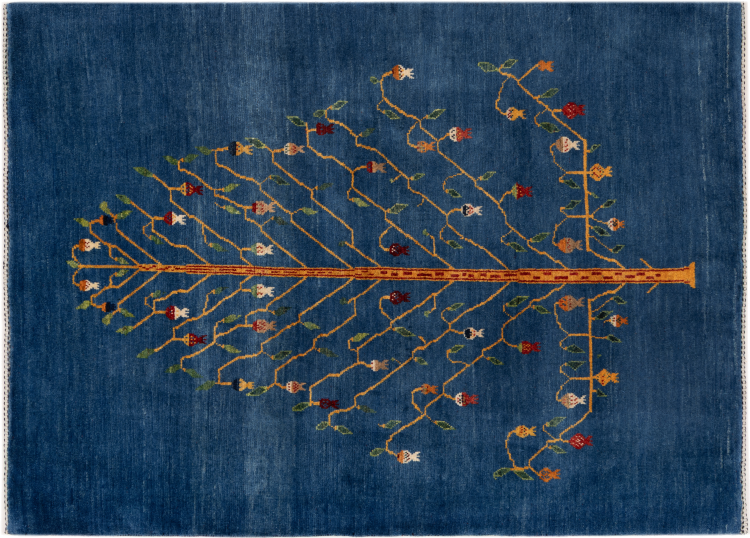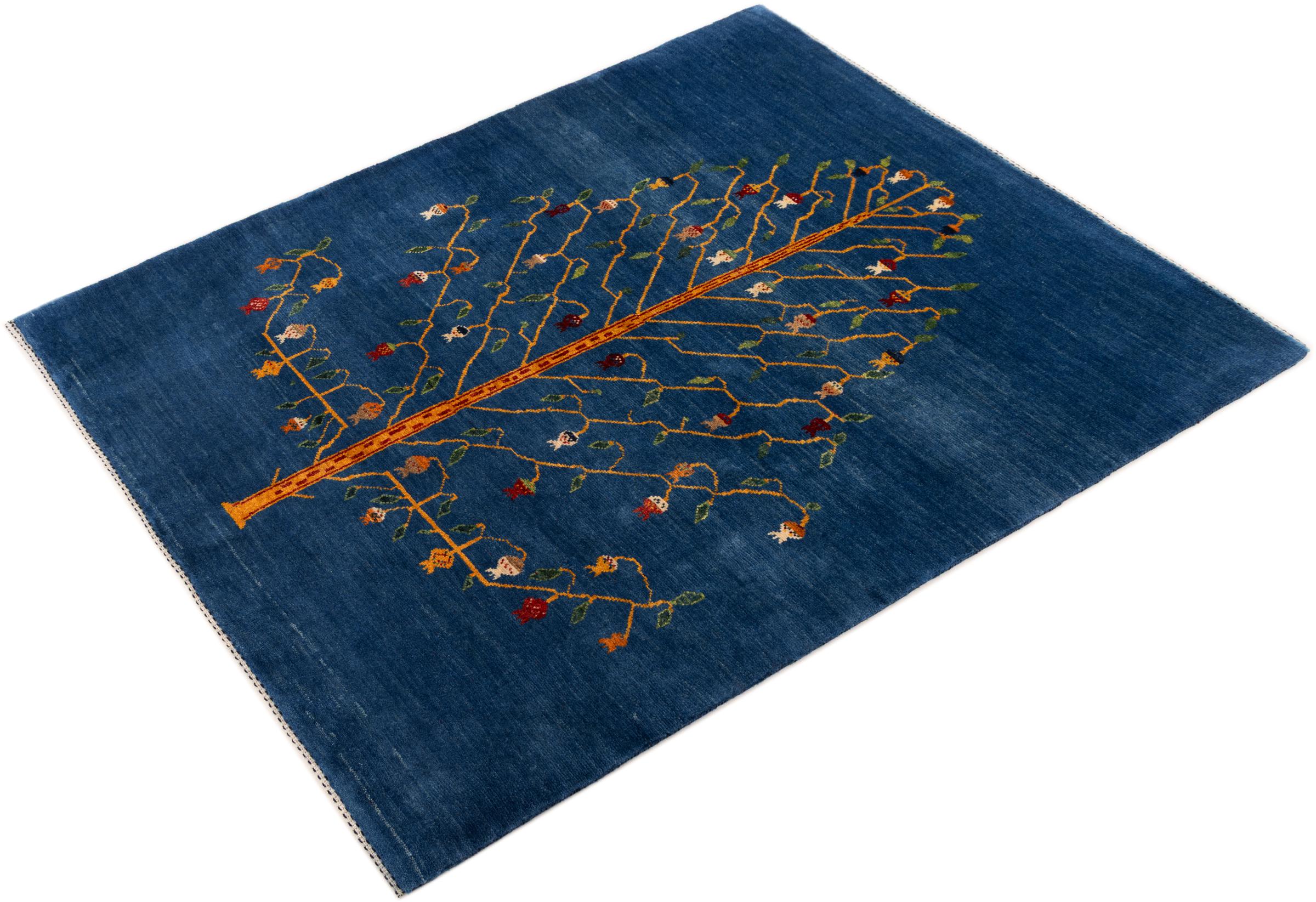 Dette smukke tæppe er en persisk Gabbeh og er en af ​​de højeste kvalitet Gabbeh tæpper. Tæpper er knyttet af nomader eller semi-nomader i Iran ved hjælp af traditionelt håndværk. De enkle motiver og mønstre er for det meste inspireret af nomadernes umiddelbare omgivelser. F.eks. Kan kameler, træer eller buske findes på traditionelle tæpper. Persiske Gabbeh-tæpper er lavet af uld fra lokale fårbesætninger. Ulden er derfor for det meste spundet for hånd. Hver af disse orientalske tæpper udgør en unik karakter af århundreder gammel kultur.