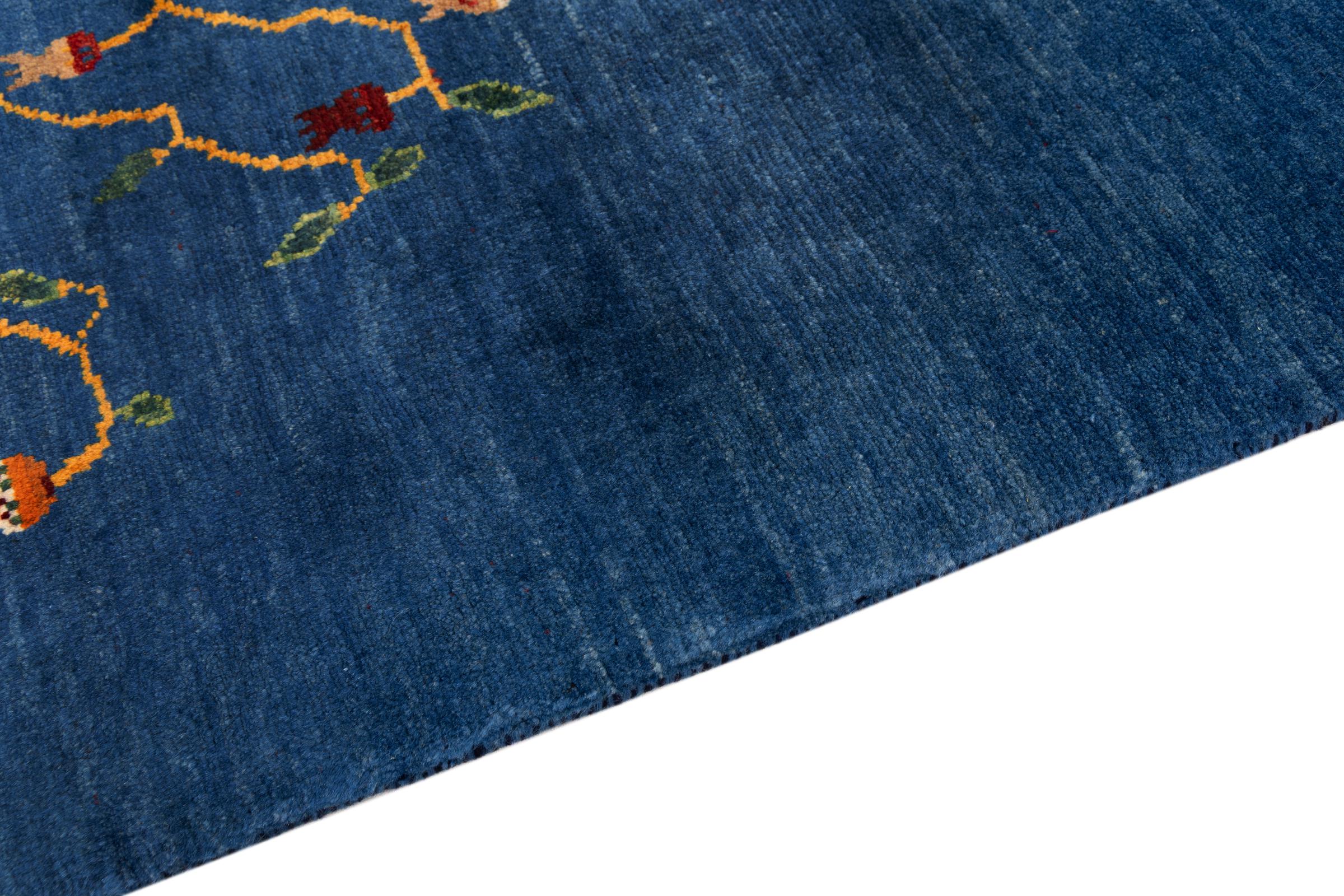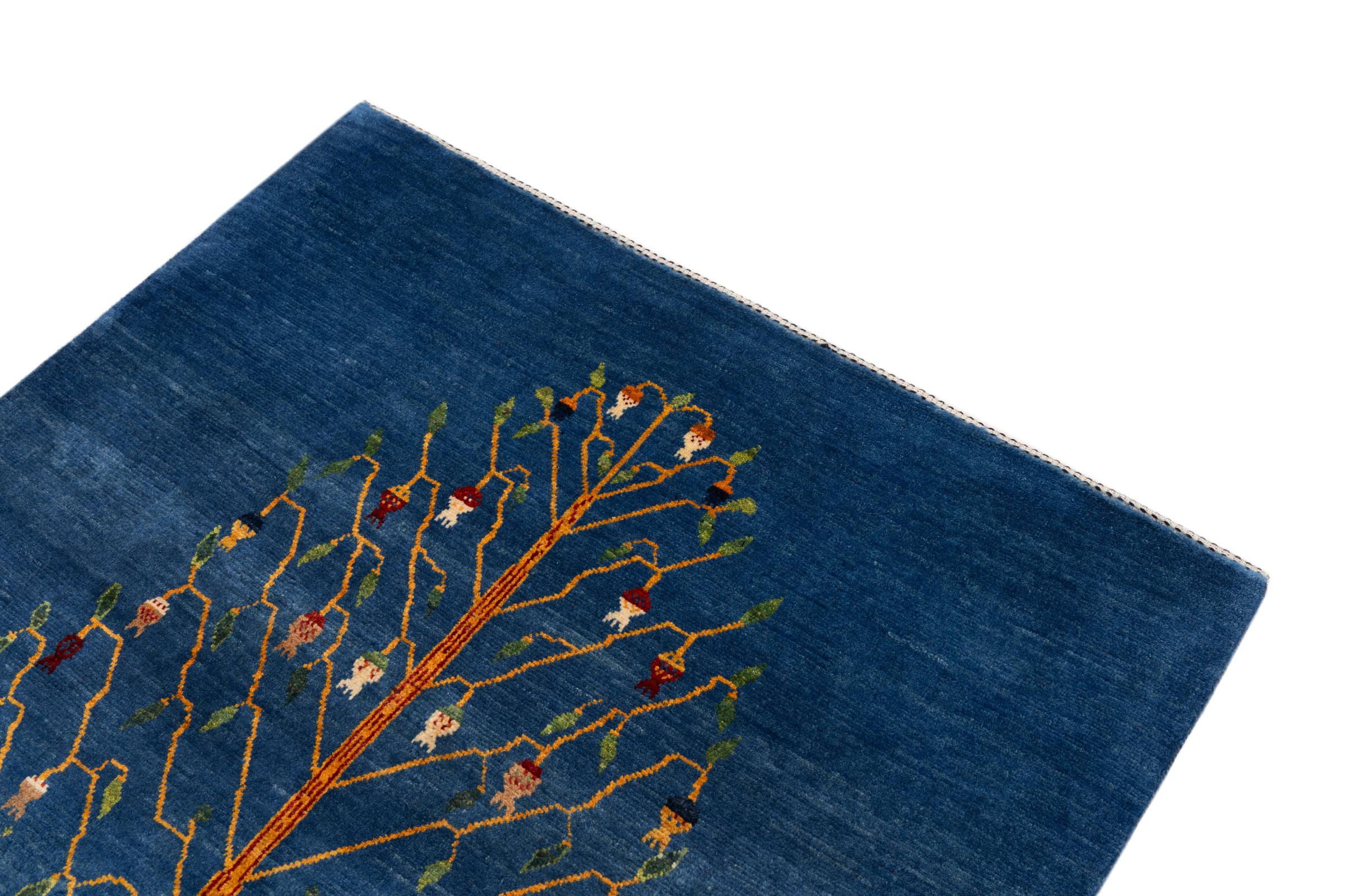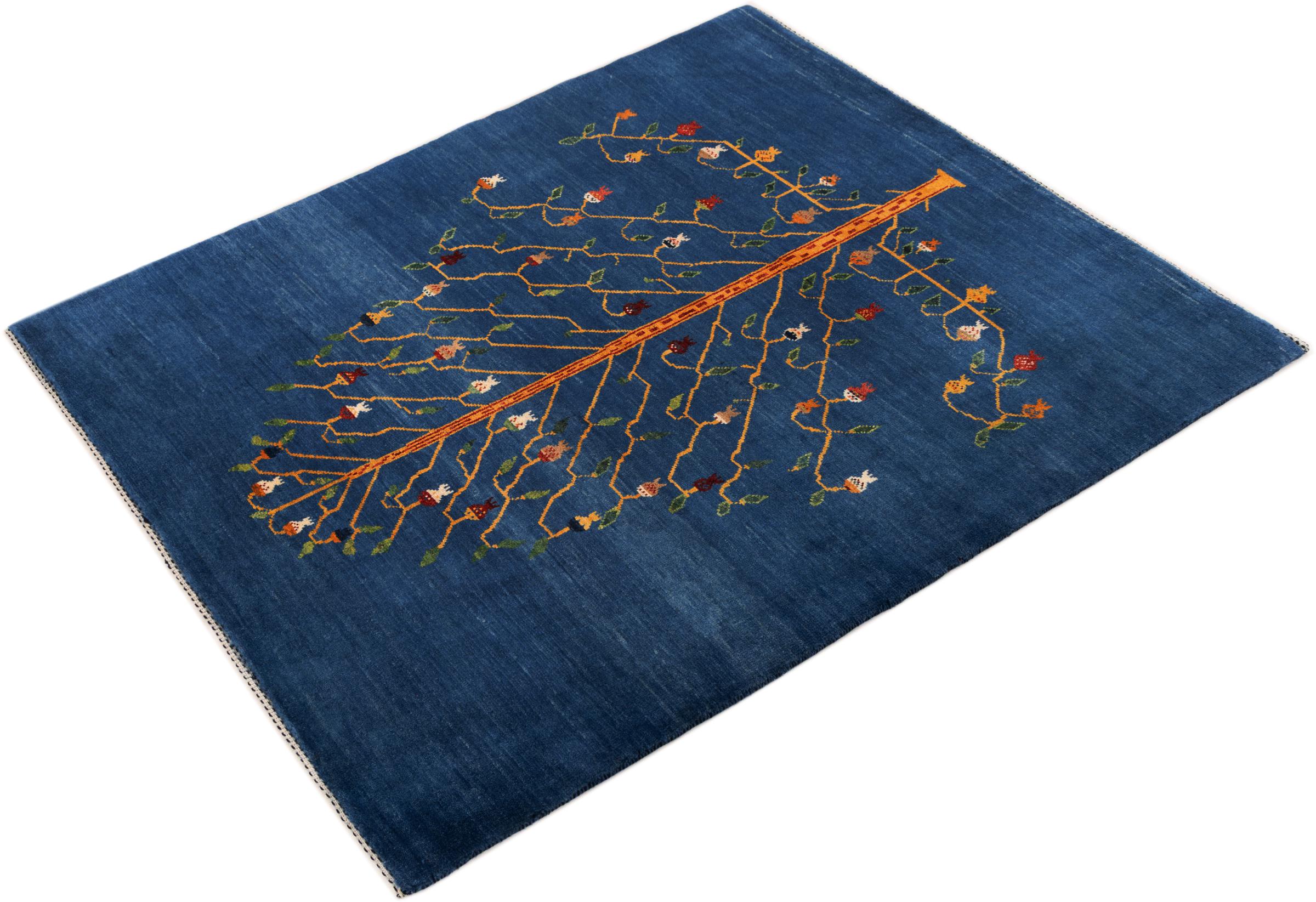 Dette smukke tæppe er en persisk Gabbeh og er en af ​​de højeste kvalitet Gabbeh tæpper. Tæpper er knyttet af nomader eller semi-nomader i Iran ved hjælp af traditionelt håndværk. De enkle motiver og mønstre er for det meste inspireret af nomadernes umiddelbare omgivelser. F.eks. Kan kameler, træer eller buske findes på traditionelle tæpper. Persiske Gabbeh-tæpper er lavet af uld fra lokale fårbesætninger. Ulden er derfor for det meste spundet for hånd. Hver af disse orientalske tæpper udgør en unik karakter af århundreder gammel kultur.