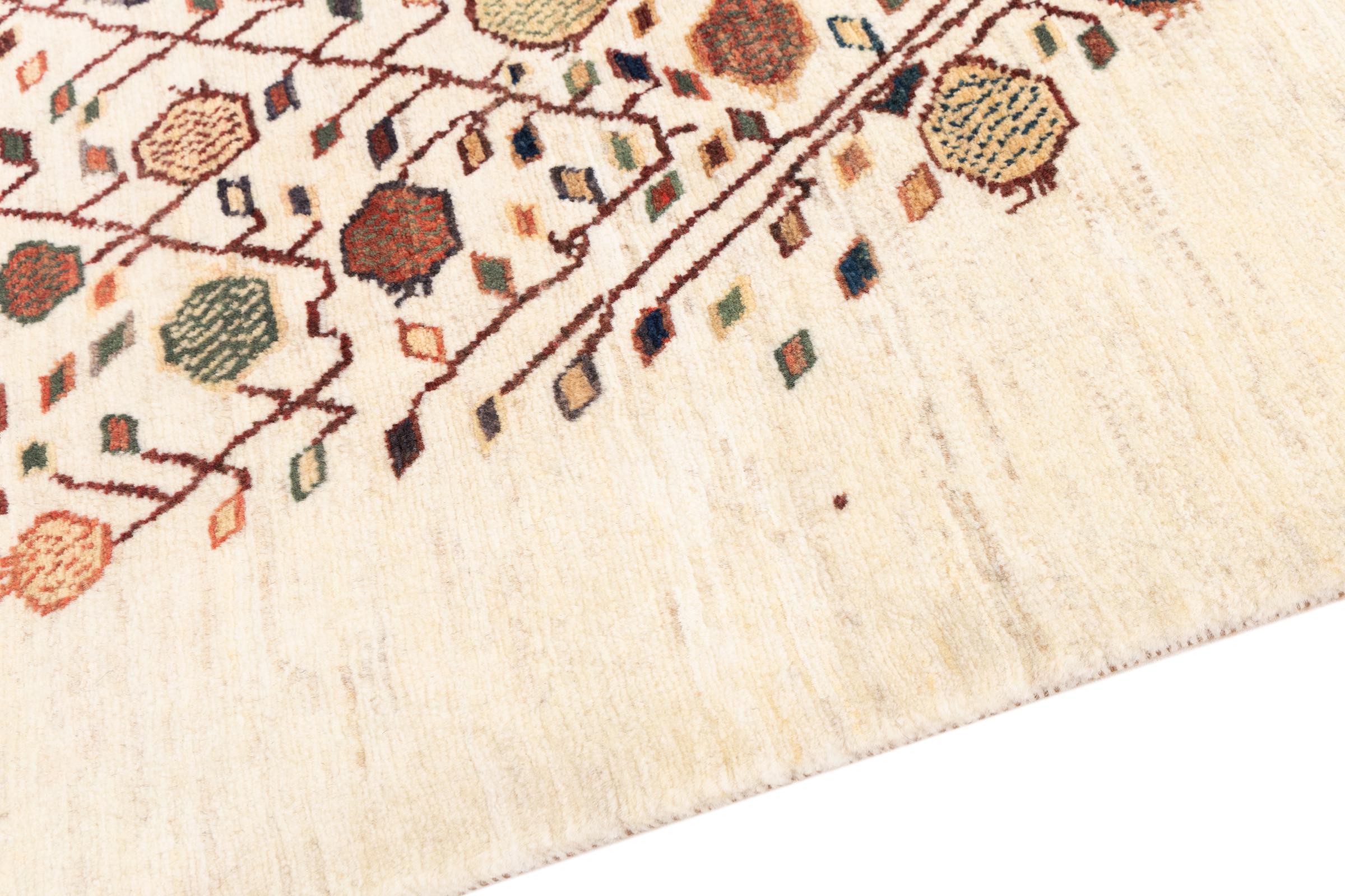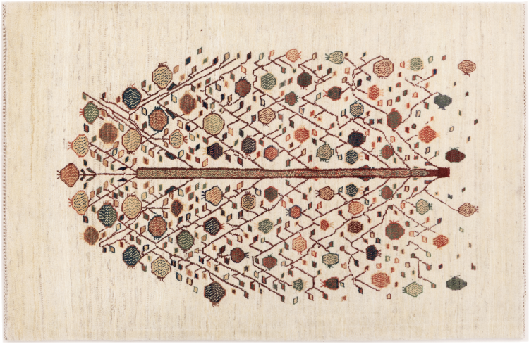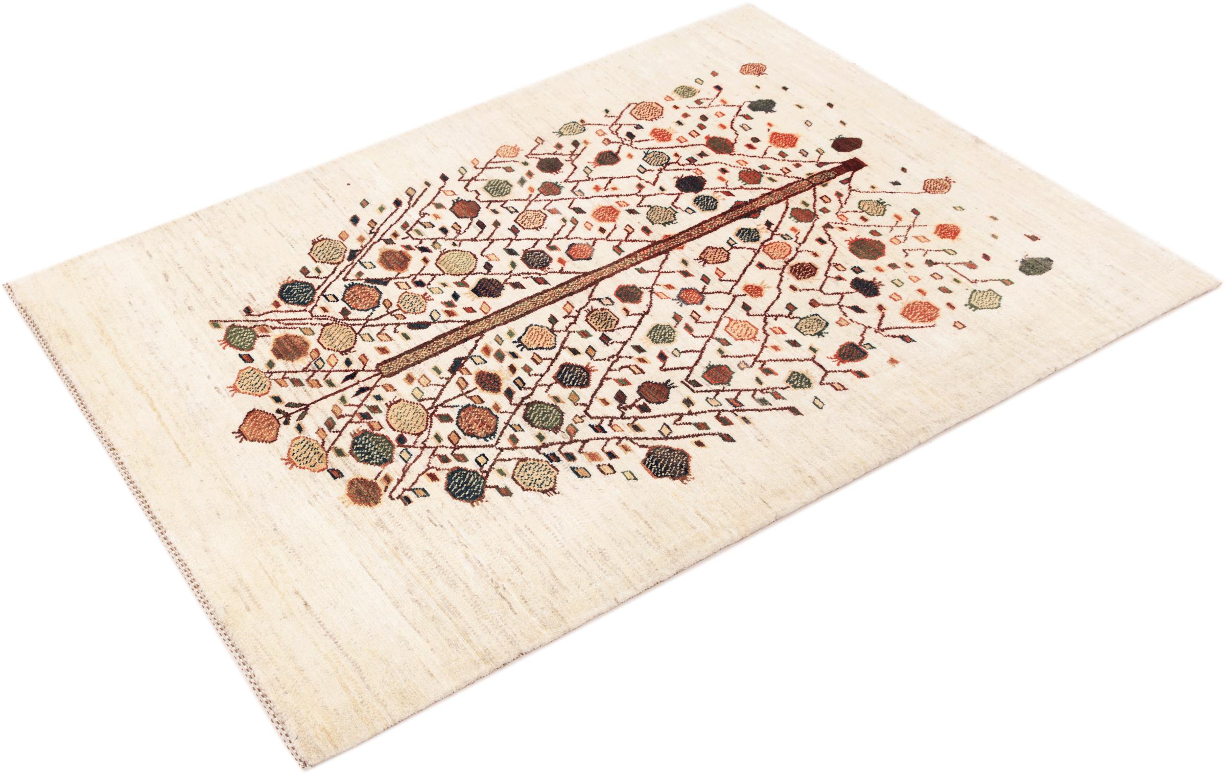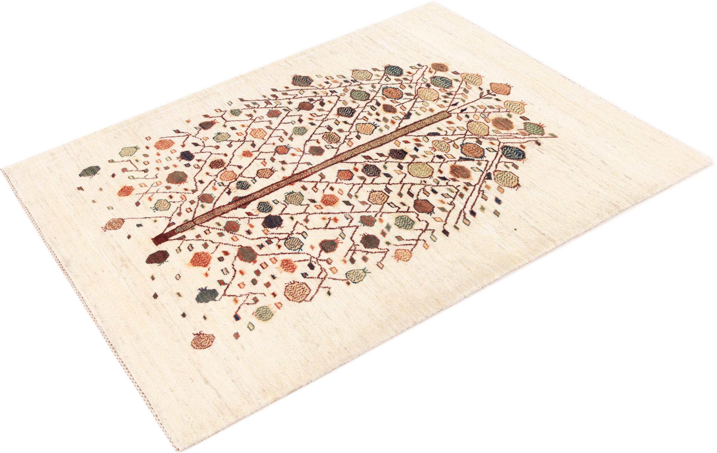 Dette smukke tæppe er en persisk Gabbeh og er en af ​​de højeste kvalitet Gabbeh tæpper. Tæpper er knyttet af nomader eller semi-nomader i Iran ved hjælp af traditionelt håndværk. De enkle motiver og mønstre er for det meste inspireret af nomadernes umiddelbare omgivelser. F.eks. Kan kameler, træer eller buske findes på traditionelle tæpper. Persiske Gabbeh-tæpper er lavet af uld fra lokale fårbesætninger. Ulden er derfor for det meste spundet for hånd. Hver af disse orientalske tæpper udgør en unik karakter af århundreder gammel kultur.